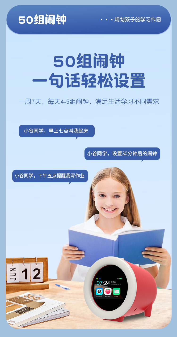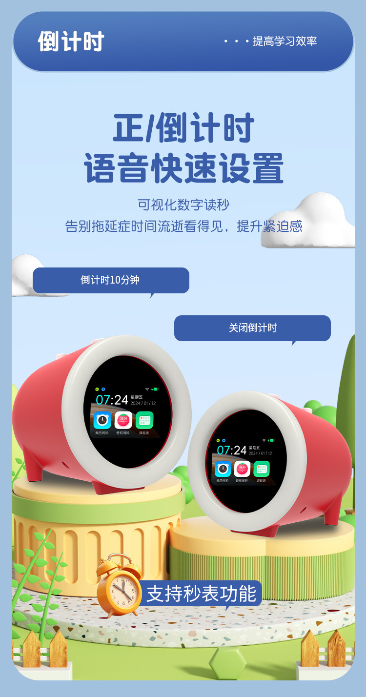 AI智能闹钟时间管理器正倒计时学习课表语音控制充电学生儿童新款