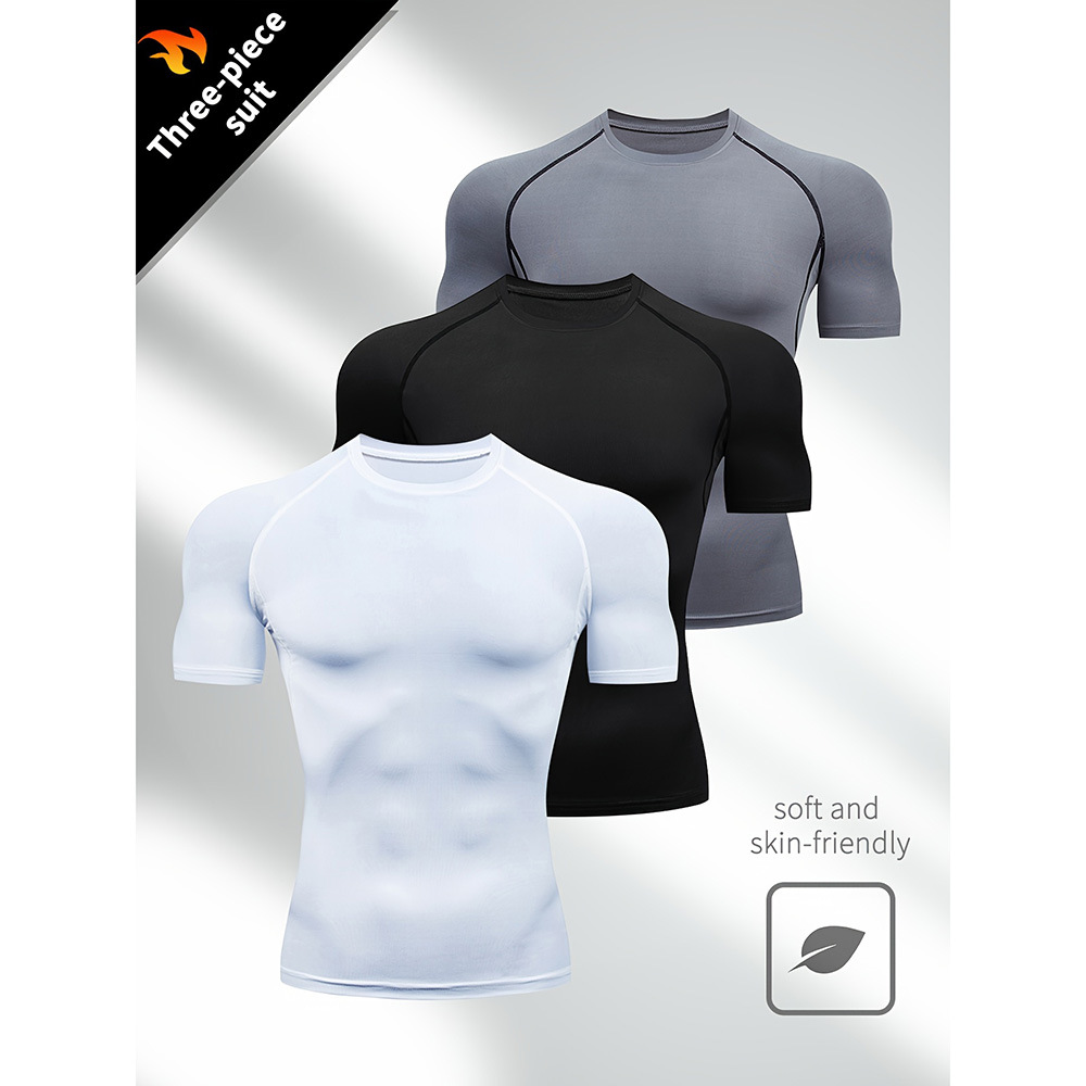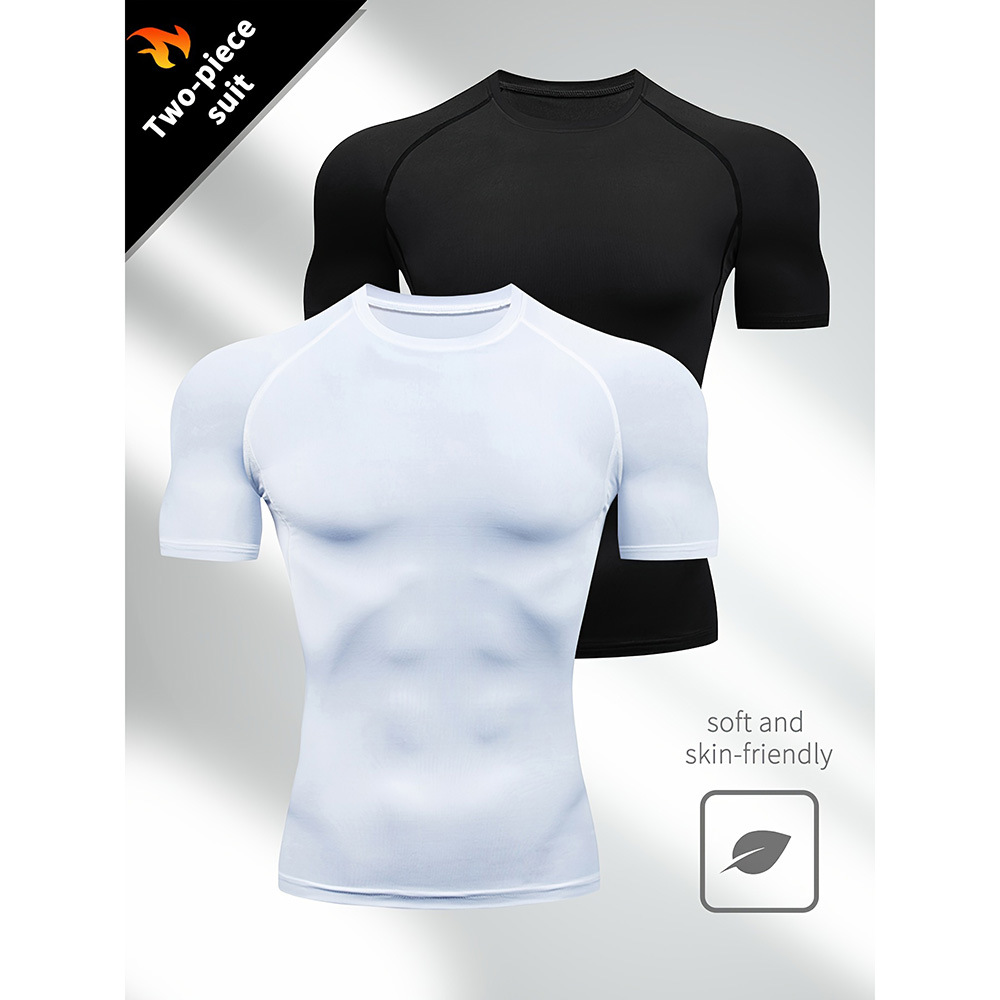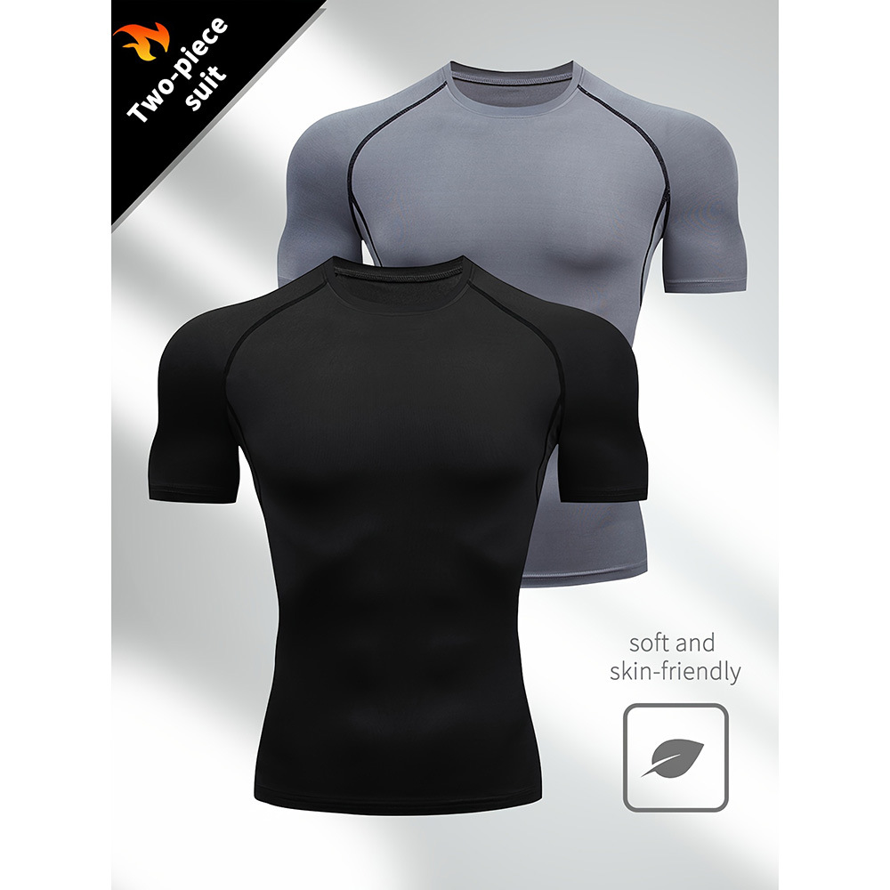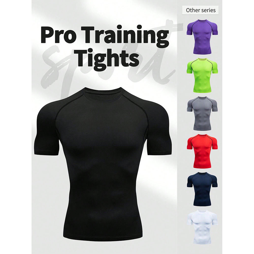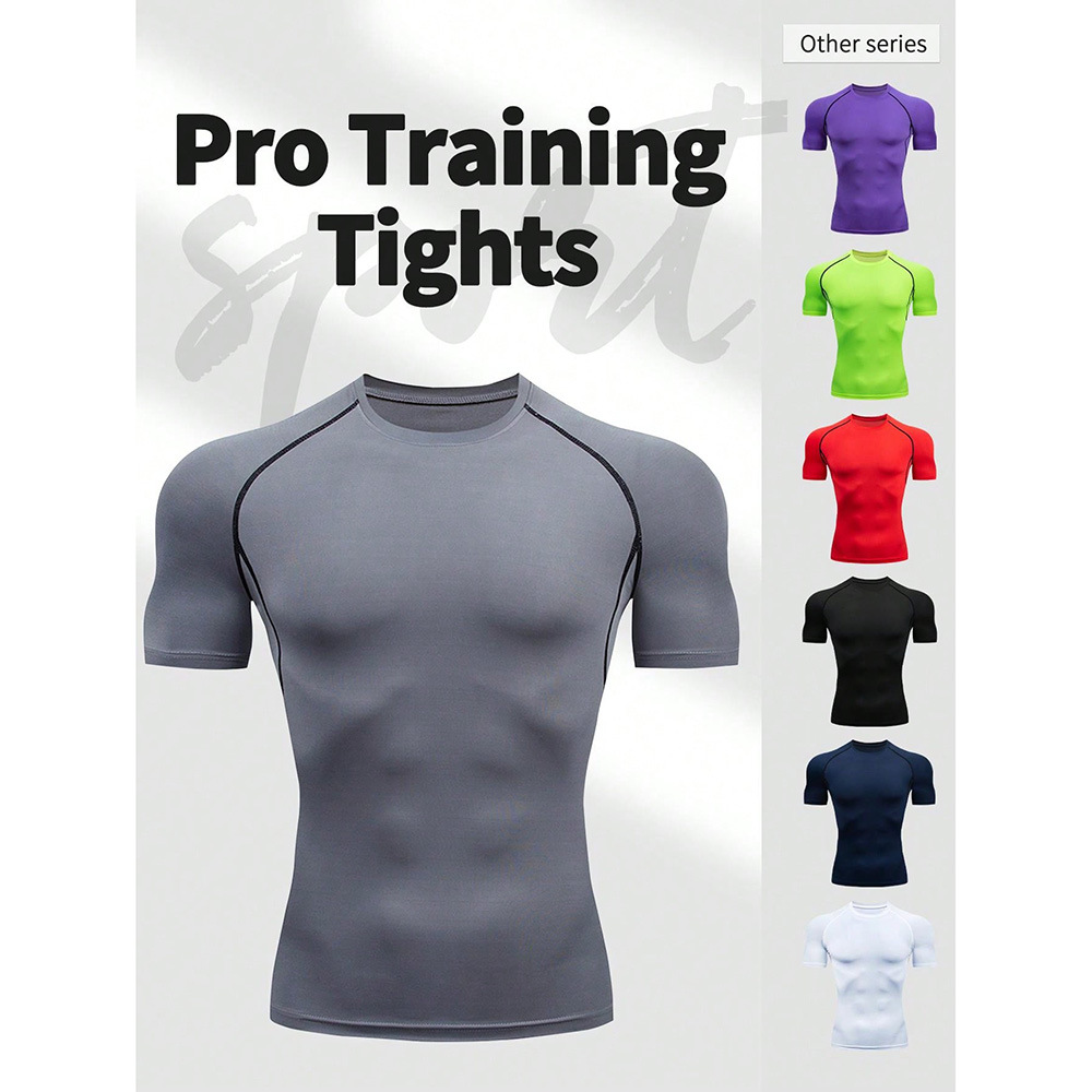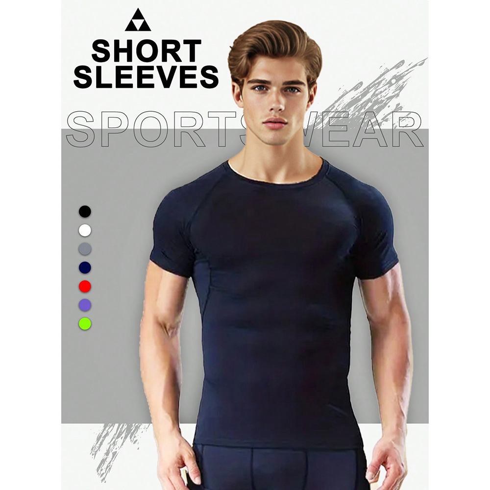 夏季运动健身服紧身短袖T恤男欧码跨境透气速干跑步打底训练上衣