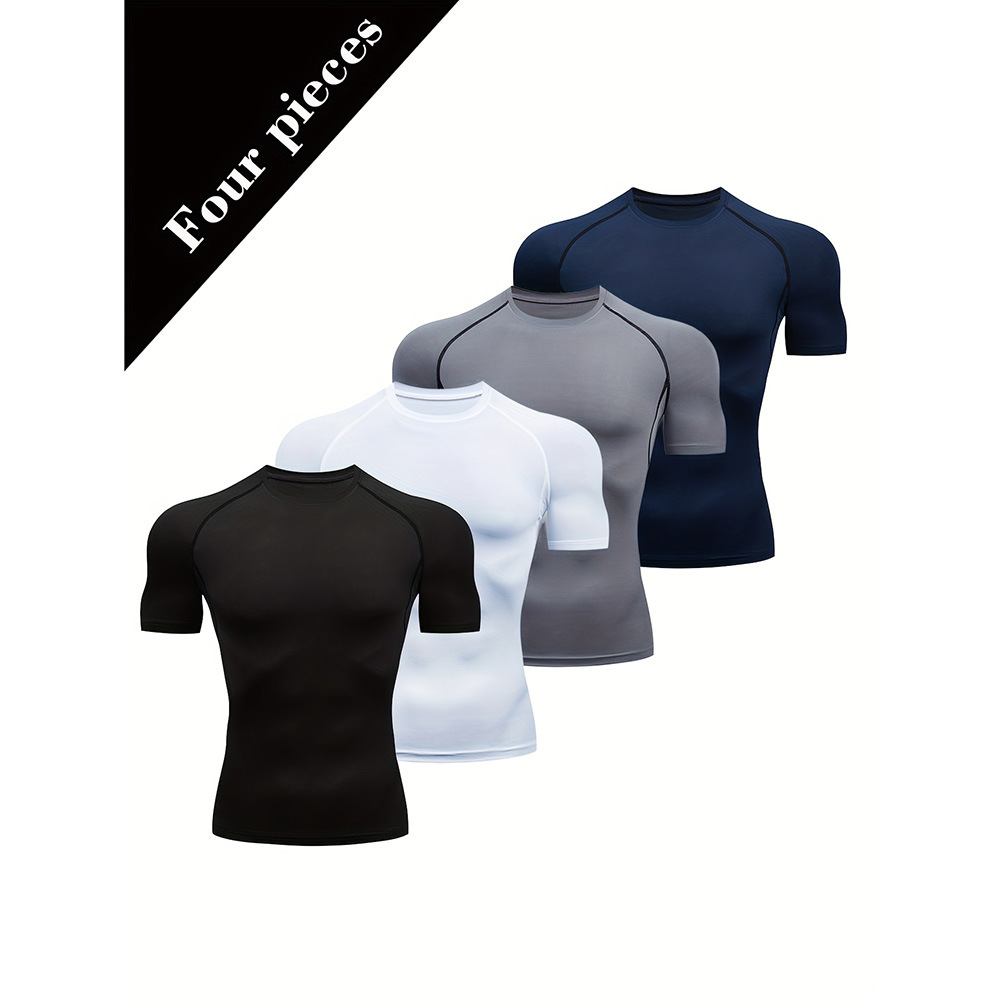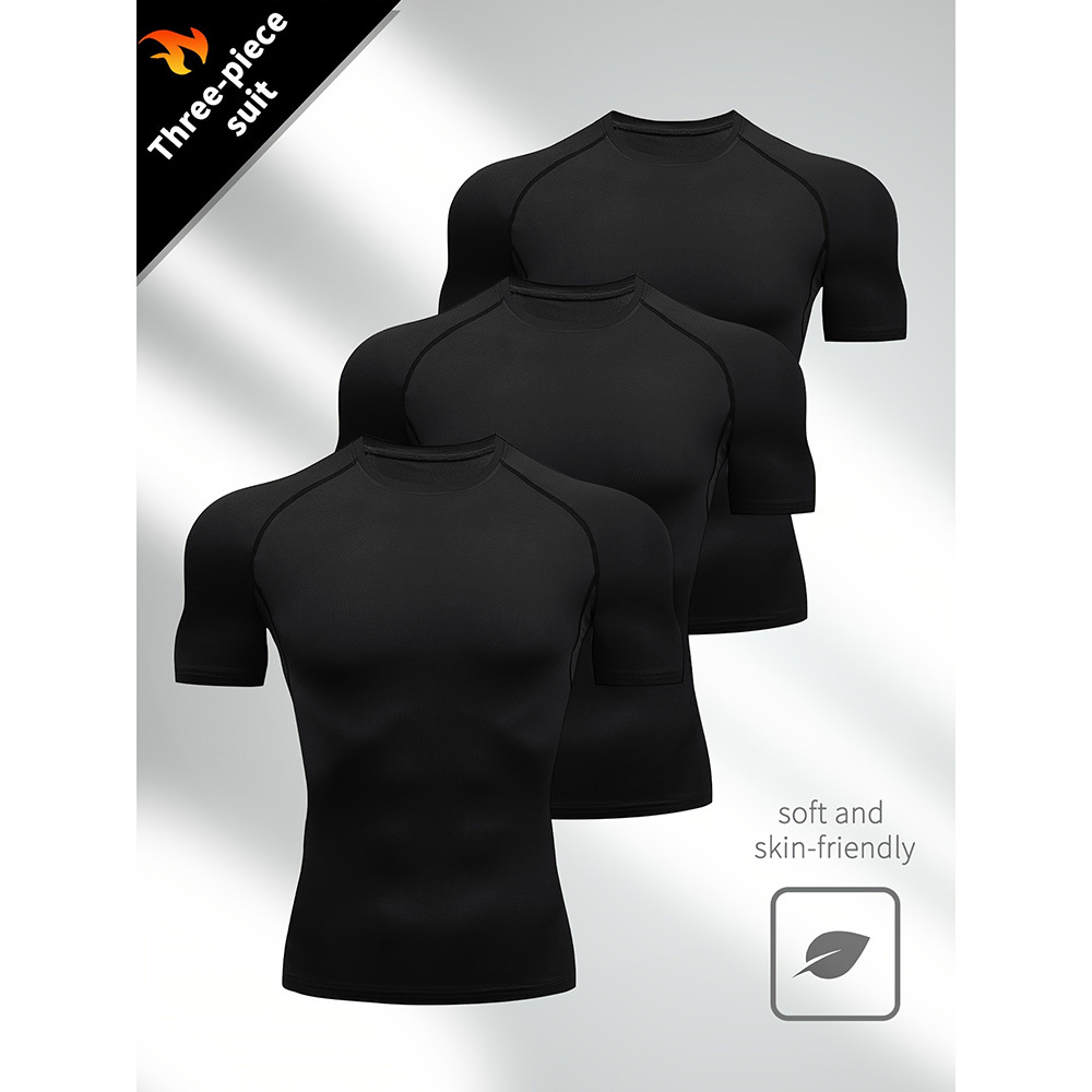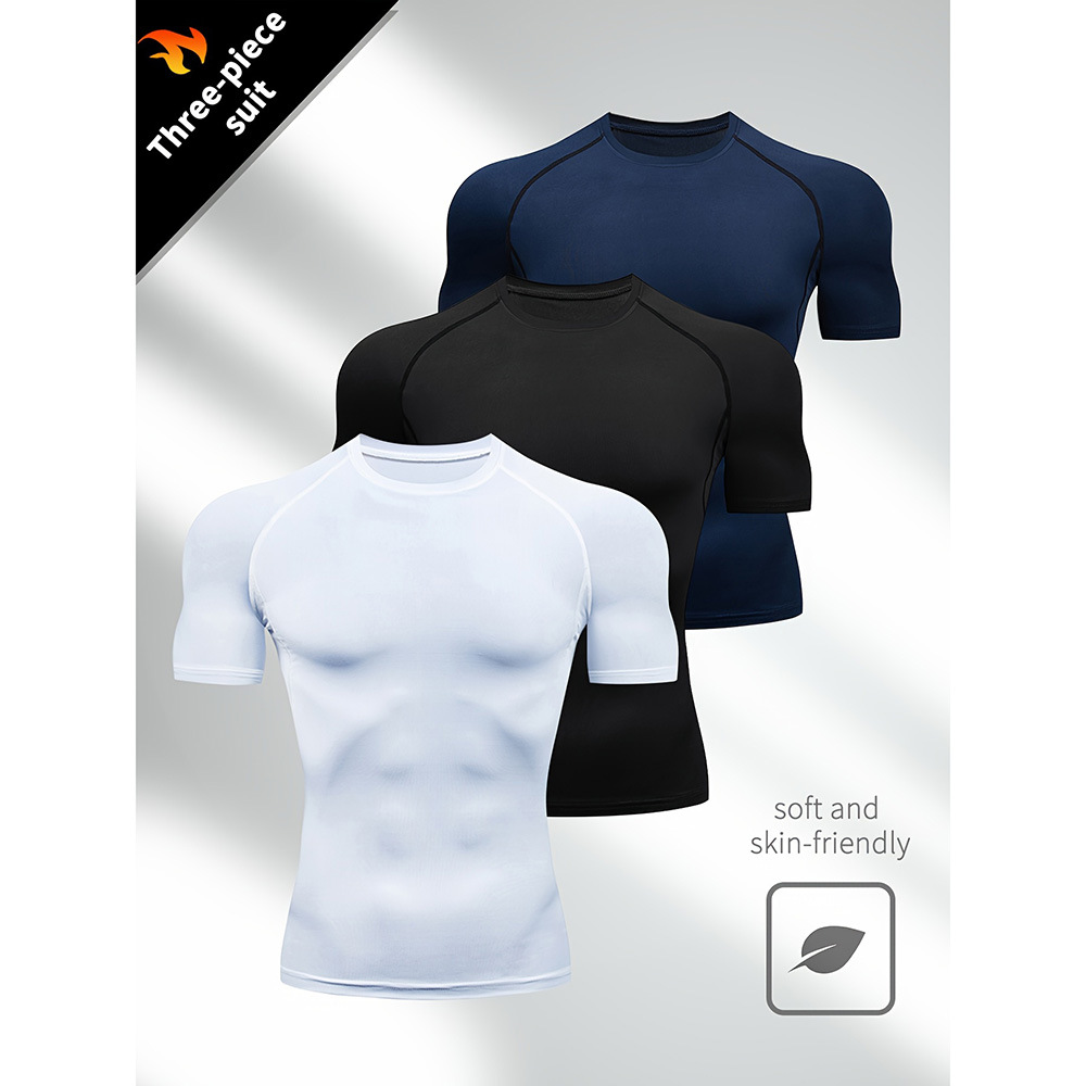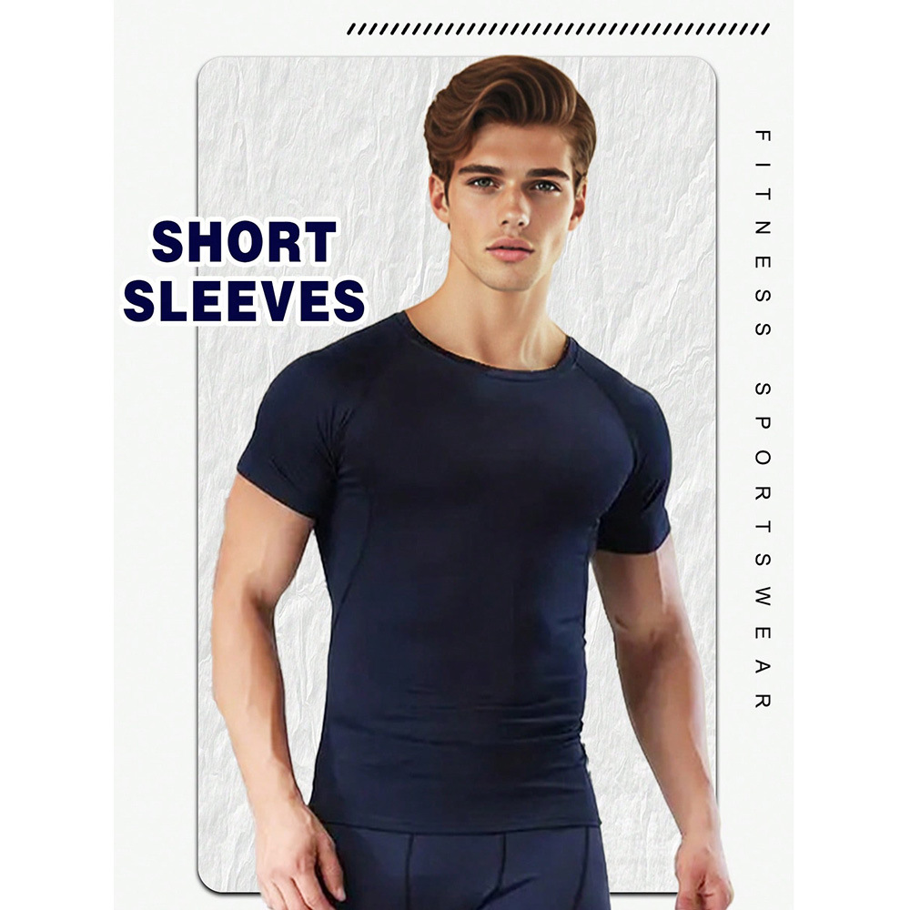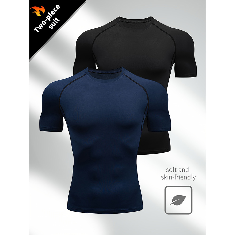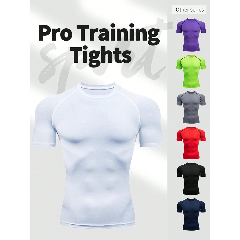 夏季运动健身服紧身短袖T恤男欧码跨境透气速干跑步打底训练上衣