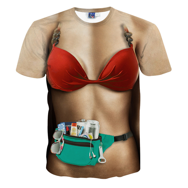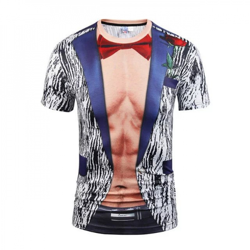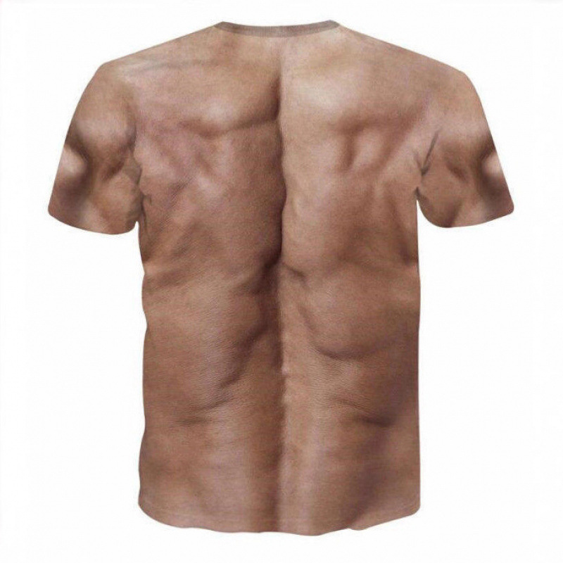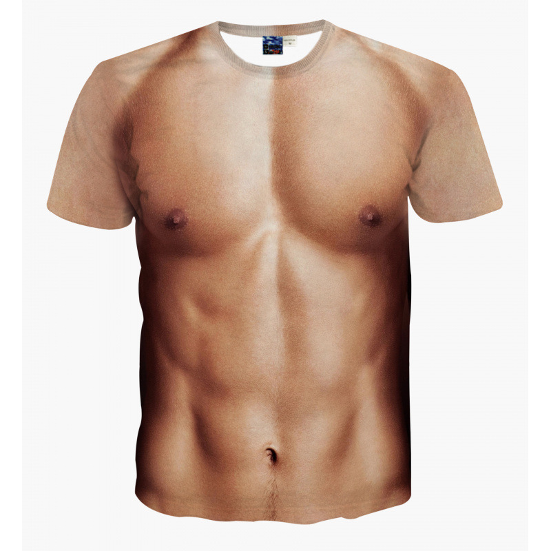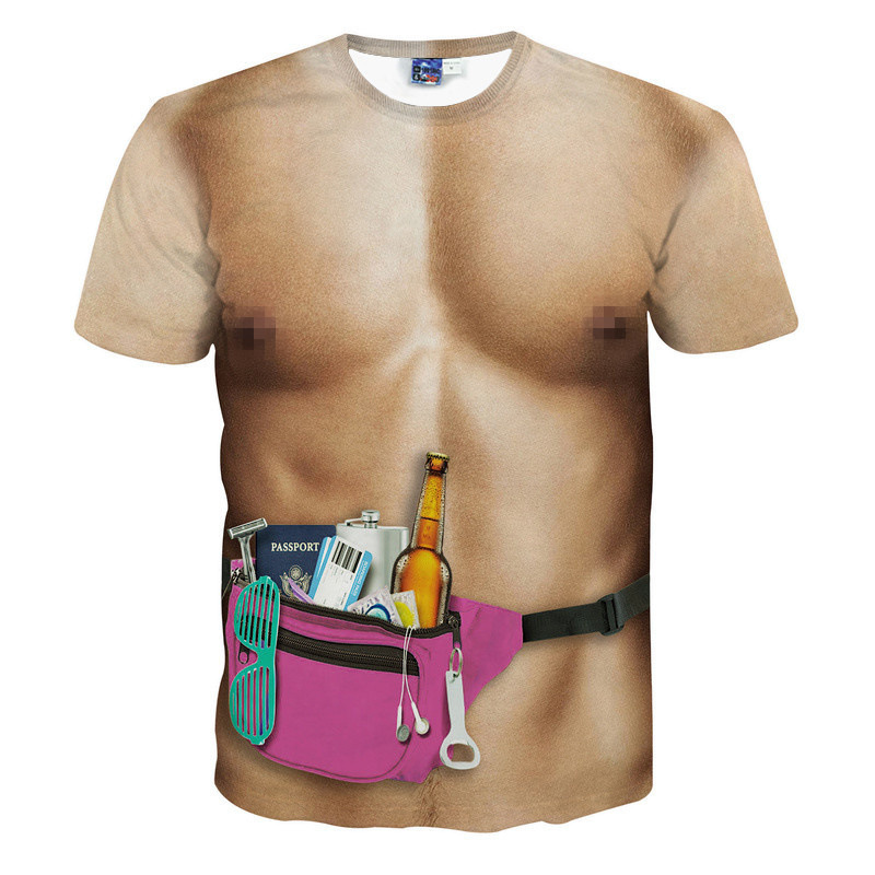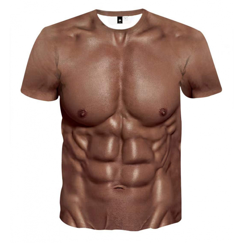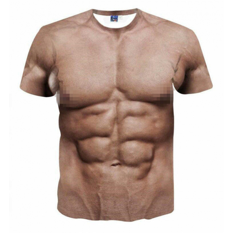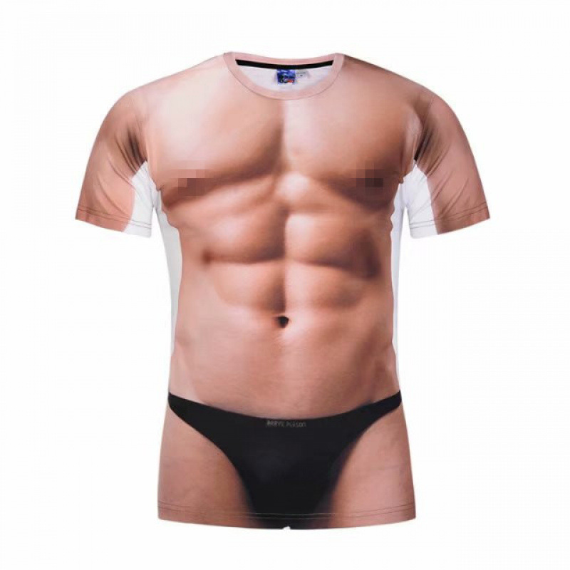 爆款性感3d短袖恶搞创意健身弹性T恤现货男装男上衣新款数码印花