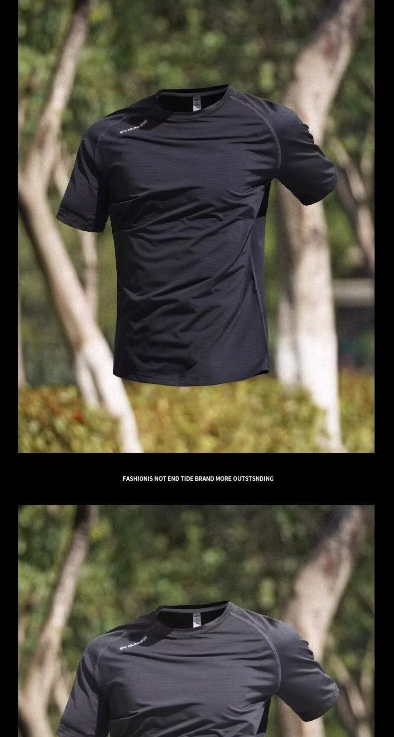 冰丝t恤男夏季薄款速干衣短袖运动上衣新款透气半袖体恤跑步衣服