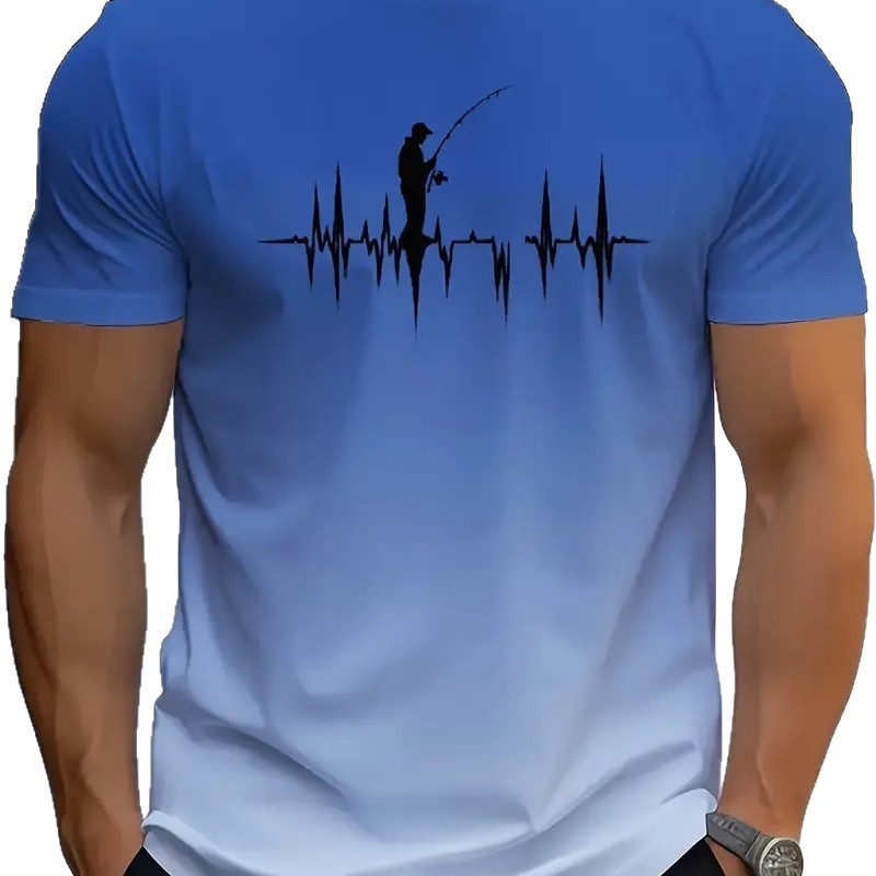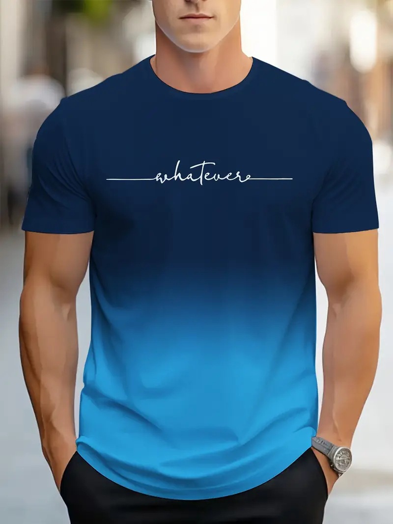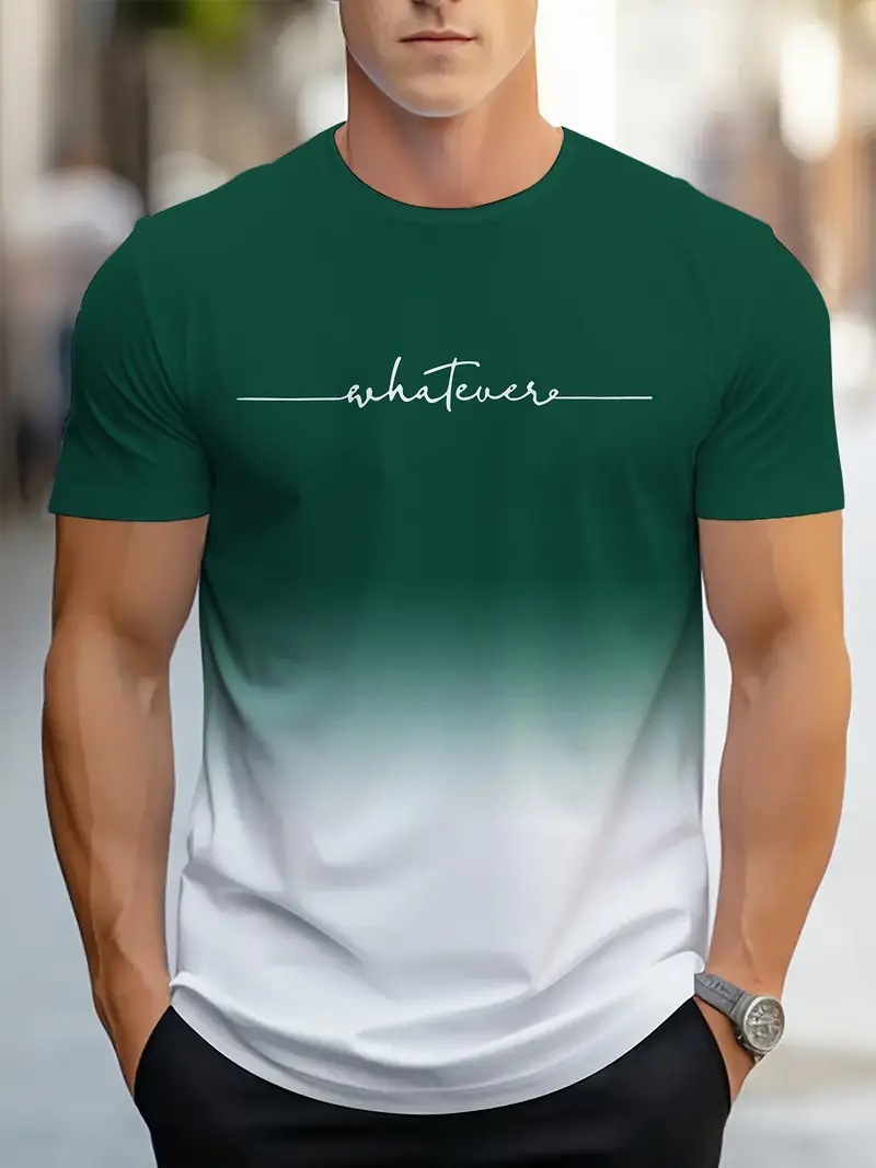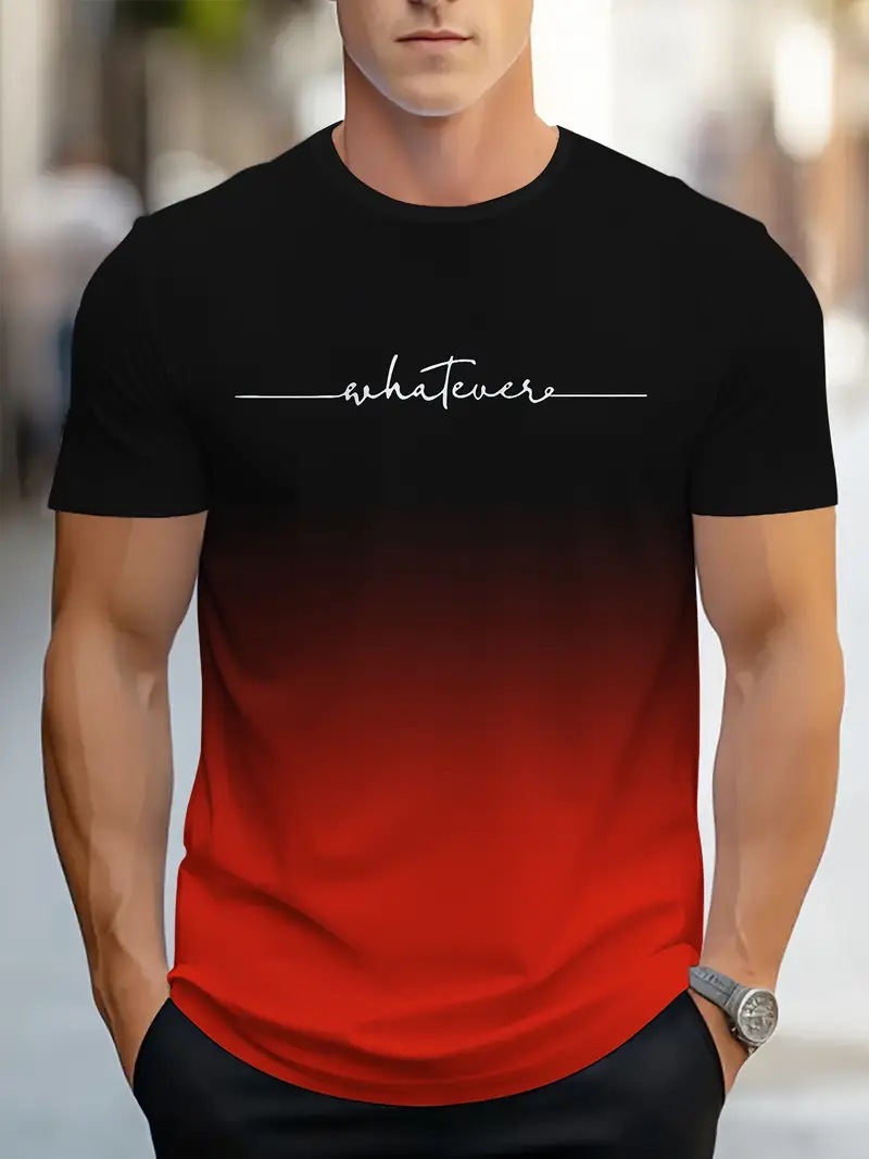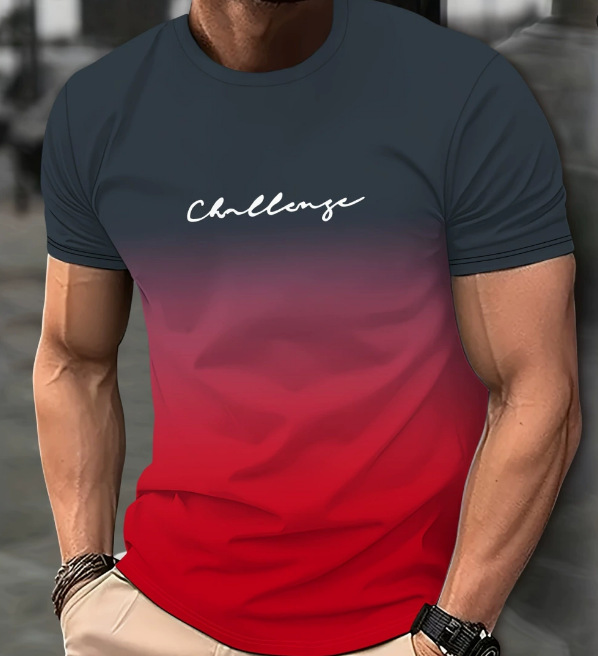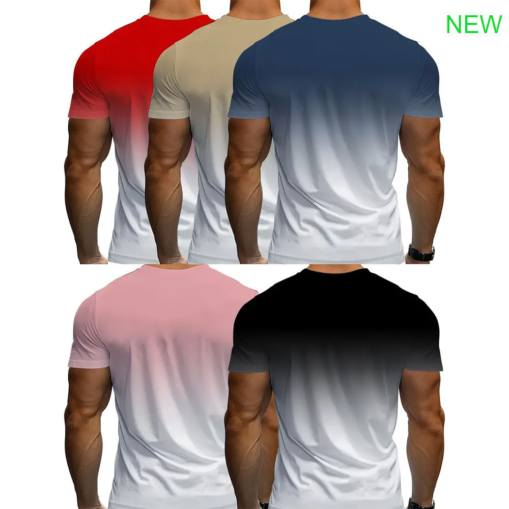 欧美外贸男装夏季爆款男士运动t恤渐变色3D印花日常潮流短袖t恤