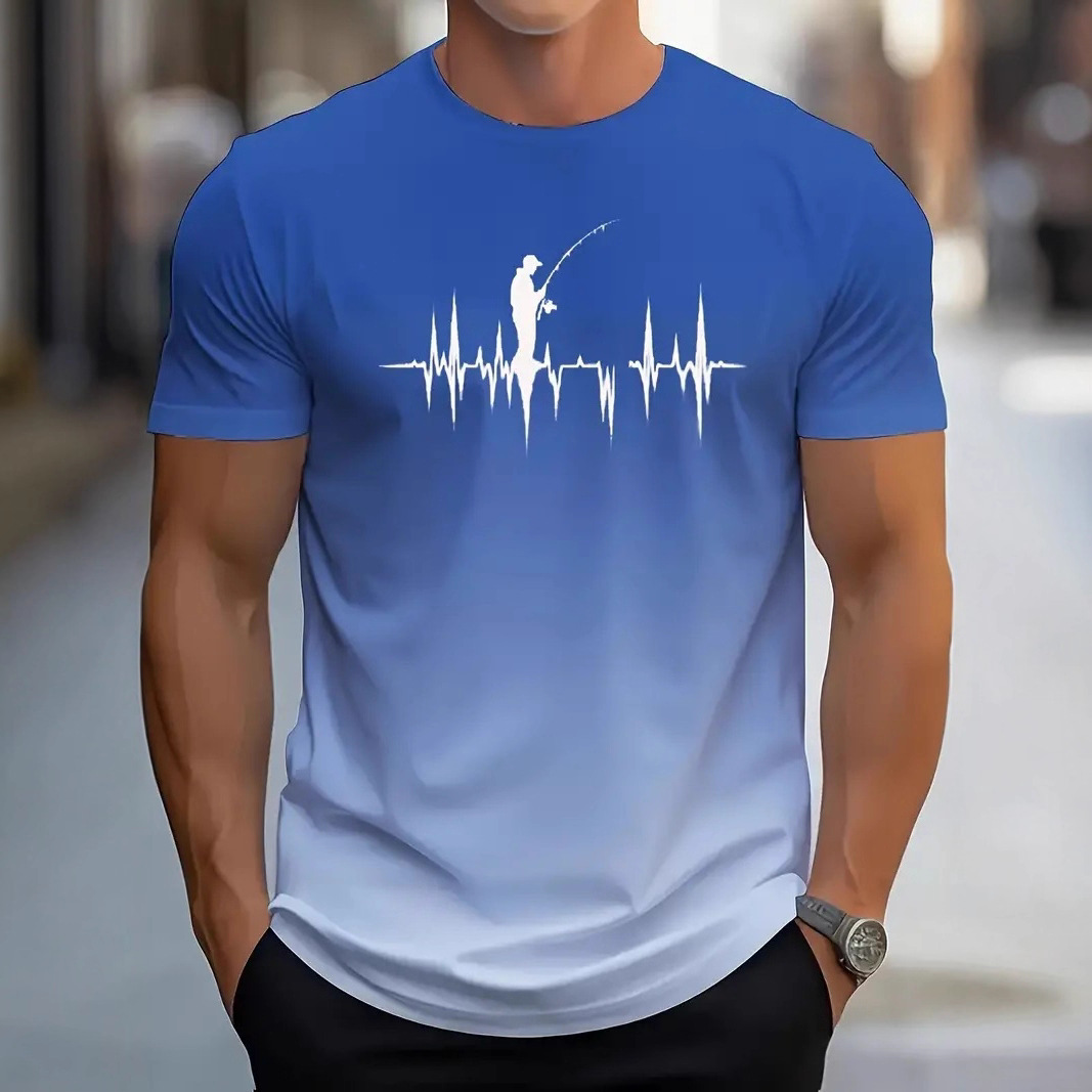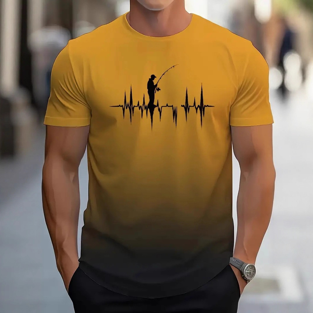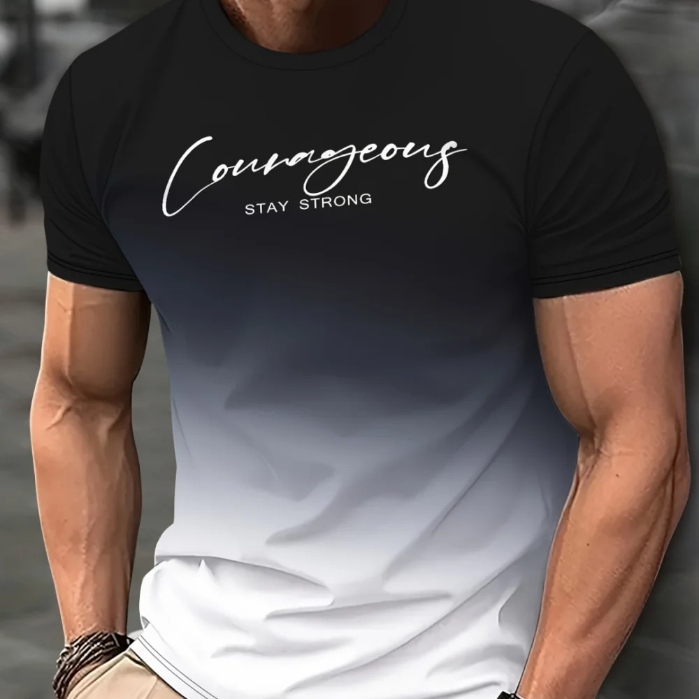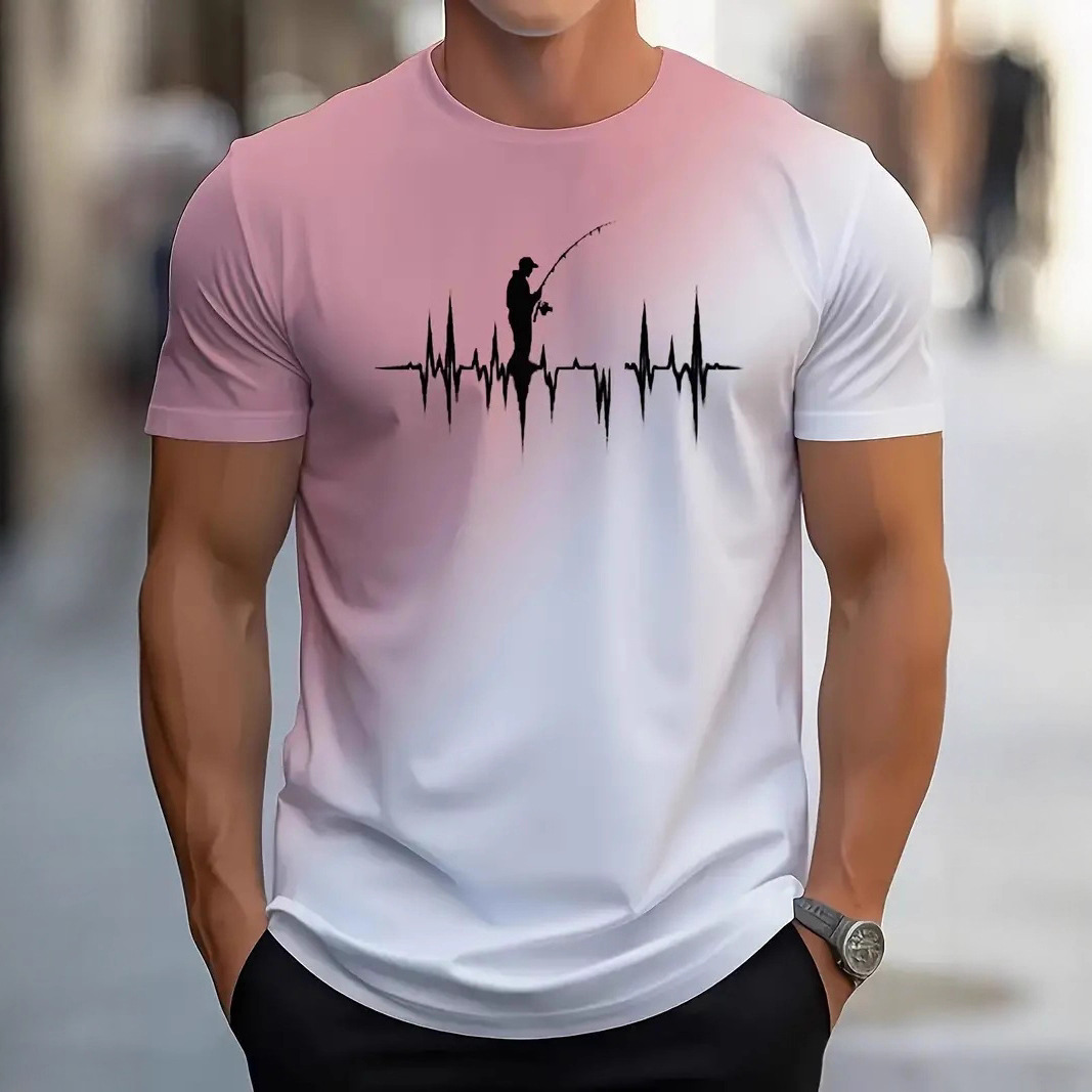 欧美外贸男装夏季爆款男士运动t恤渐变色3D印花日常潮流短袖t恤