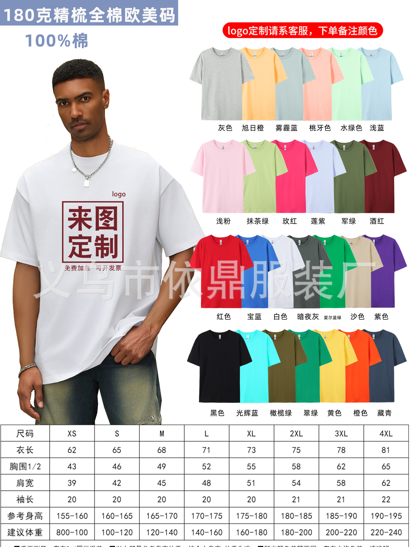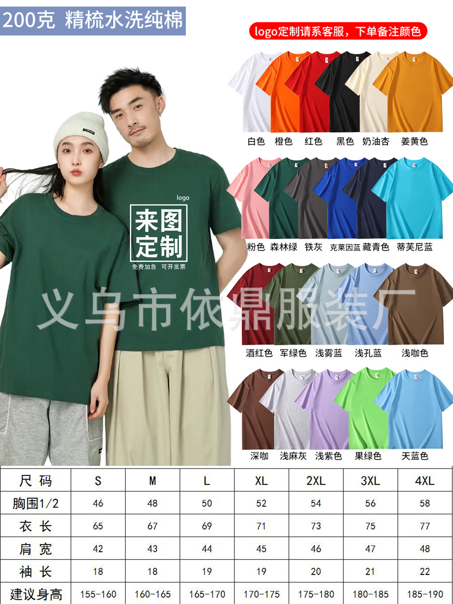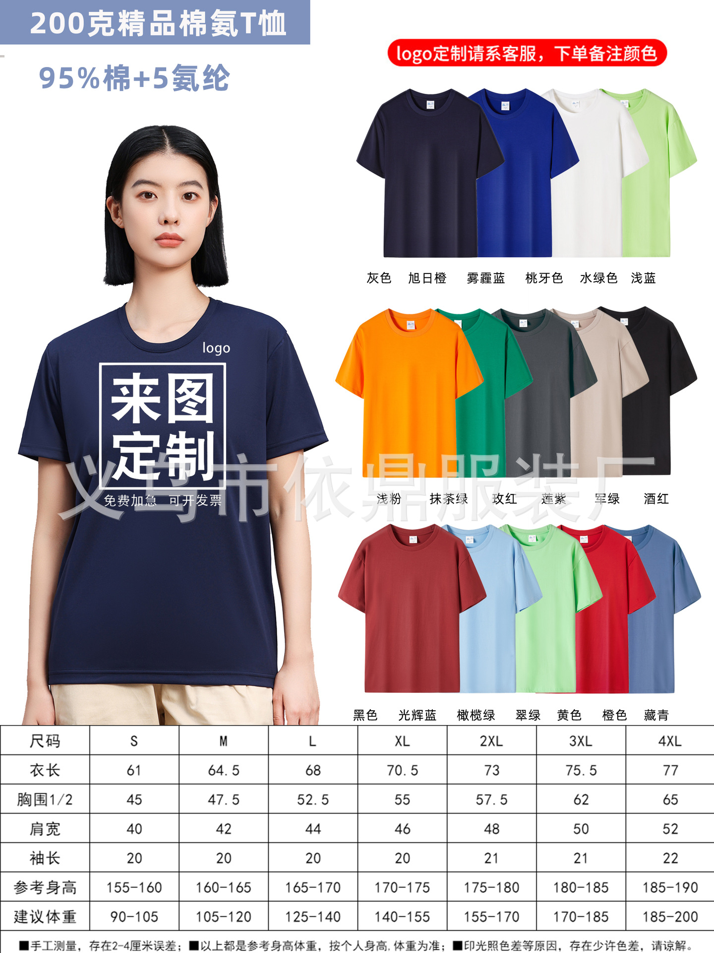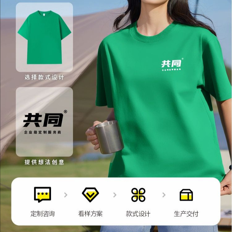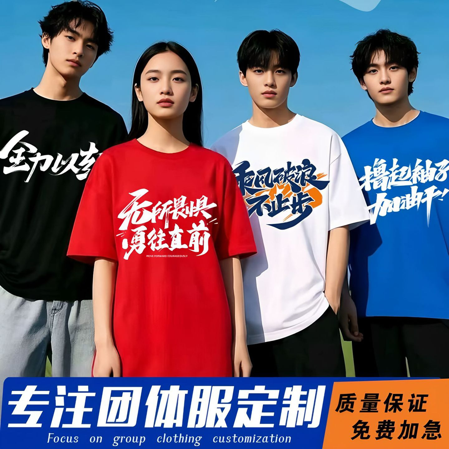 纯棉t恤定制logo圆领短袖工作服印字广告文化衫班服工装衣服定做