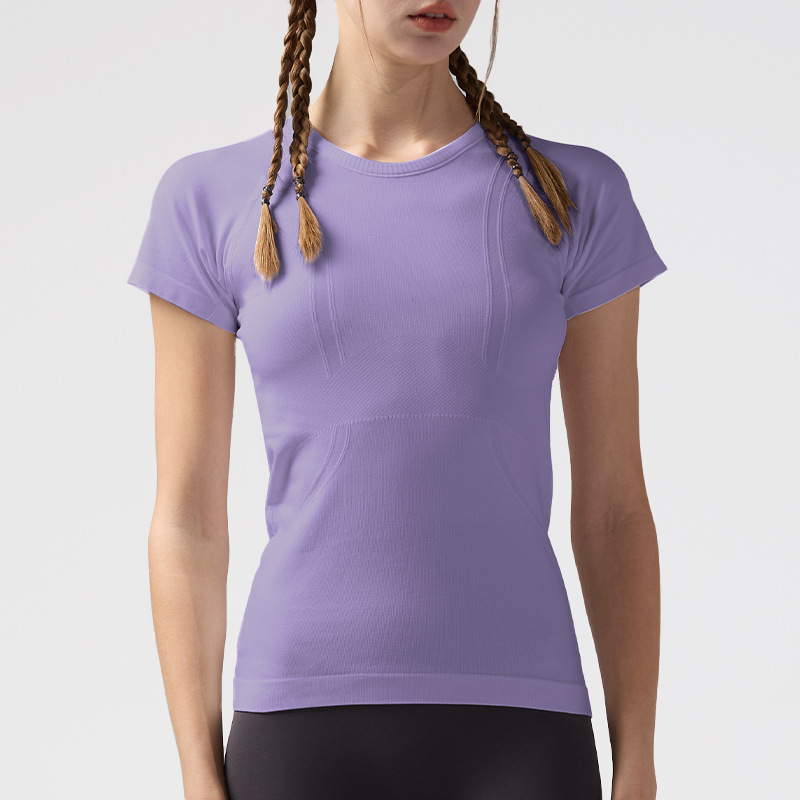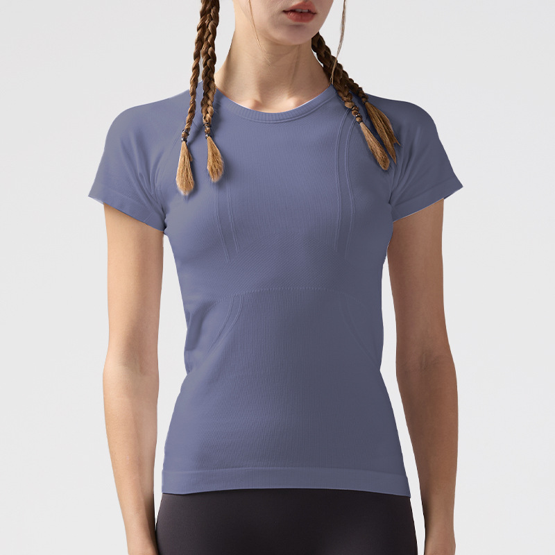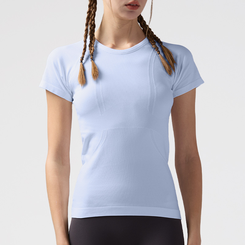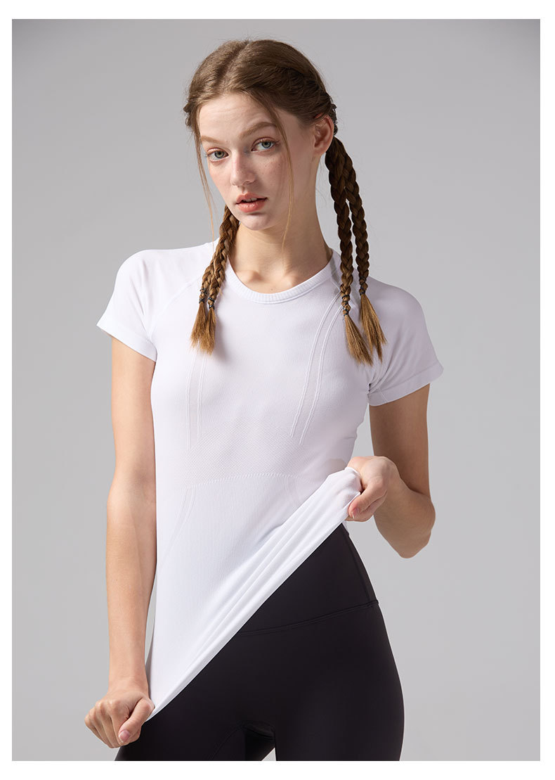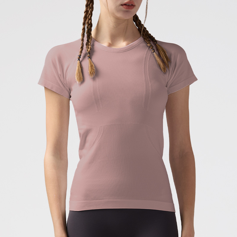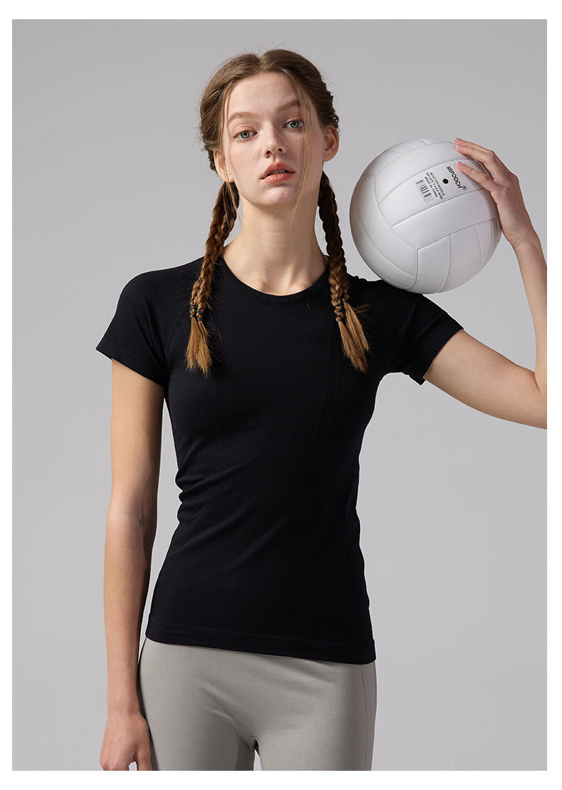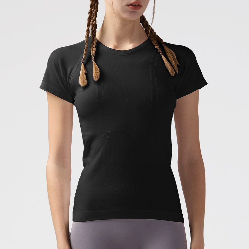 跨境健身运动短袖瑜伽服速干大码健身服女上衣普拉提绝美训练服夏