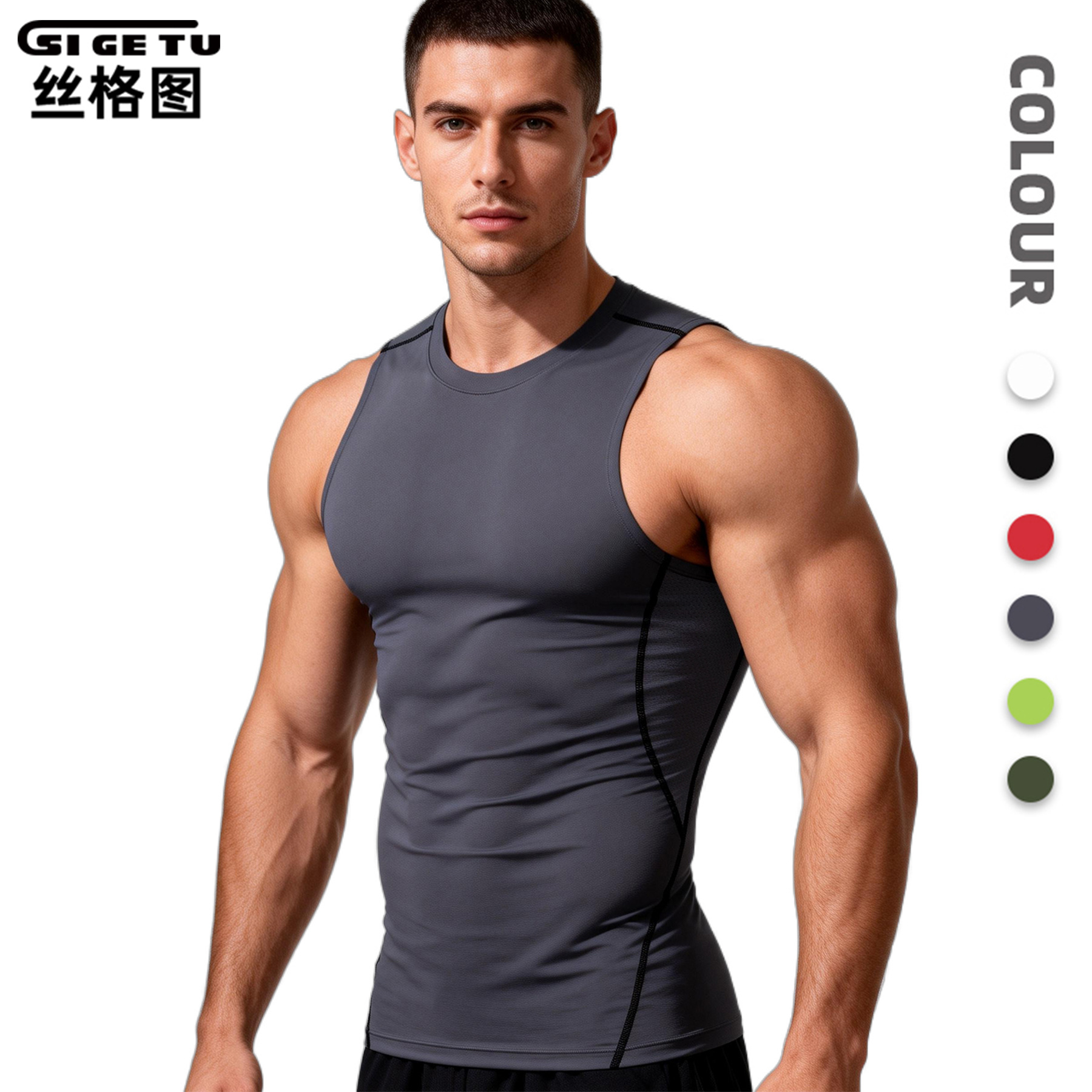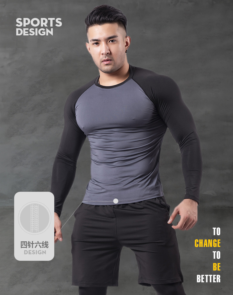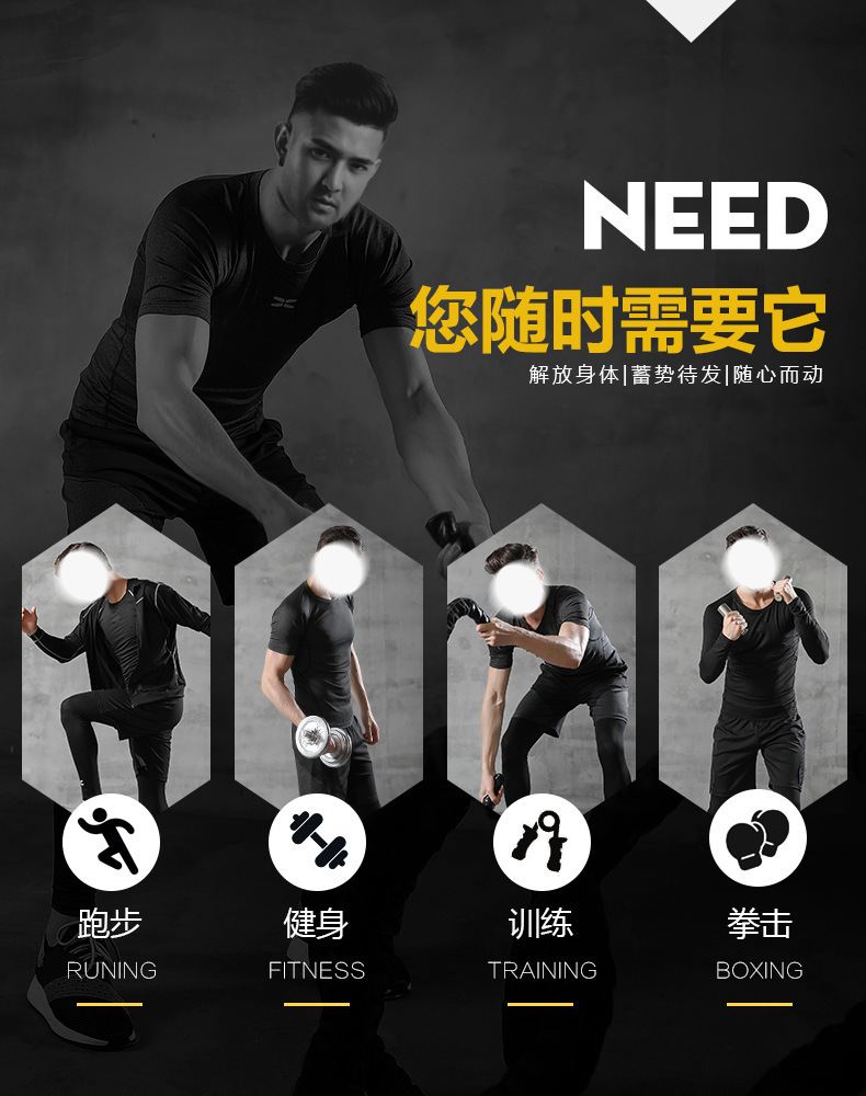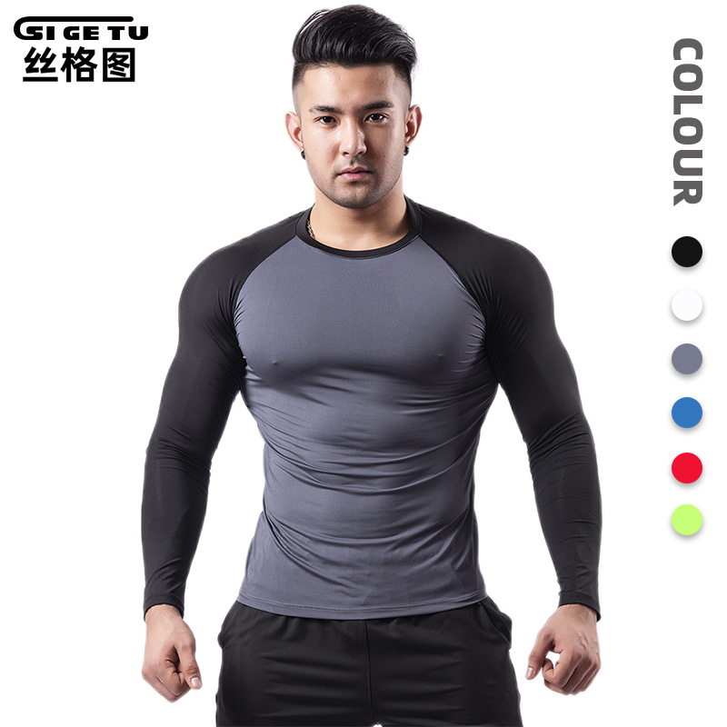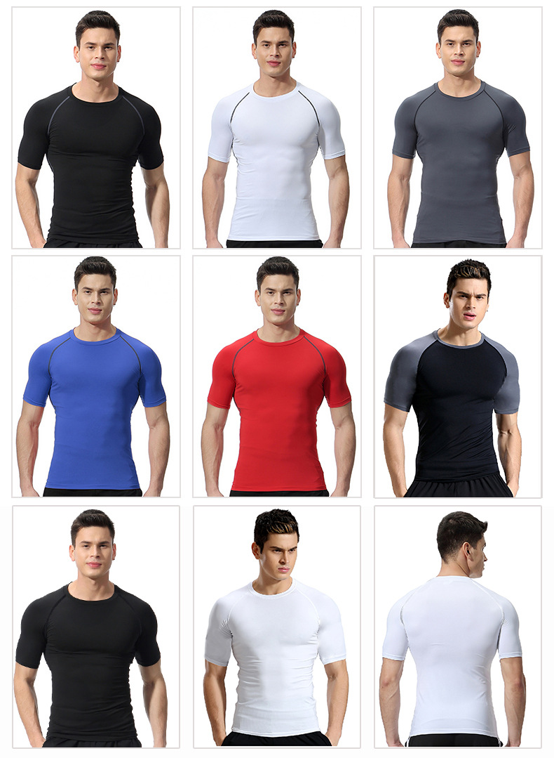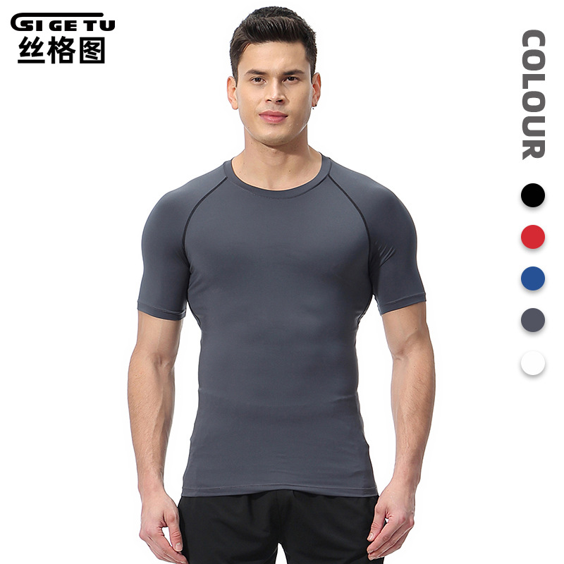 丝格图跨境健身服男春夏弹力速干紧身衣篮球训练跑步短袖运动T恤