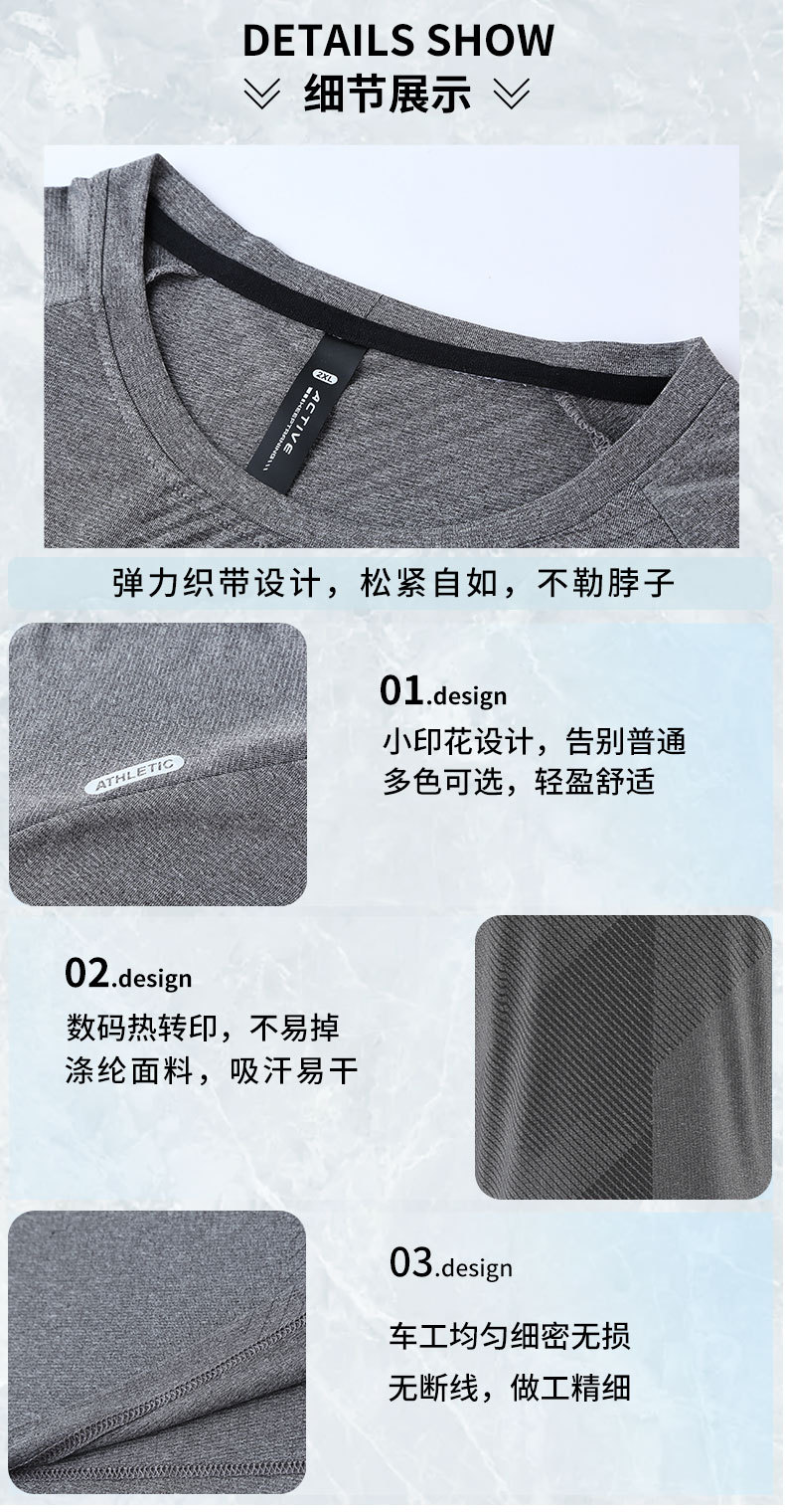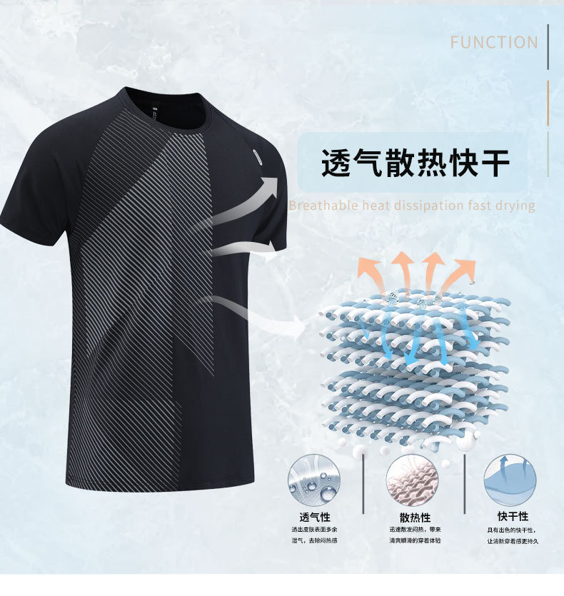 运动速干服吸汗透气跑步服弹力健身服户外徒步宽松上衣短袖男t恤