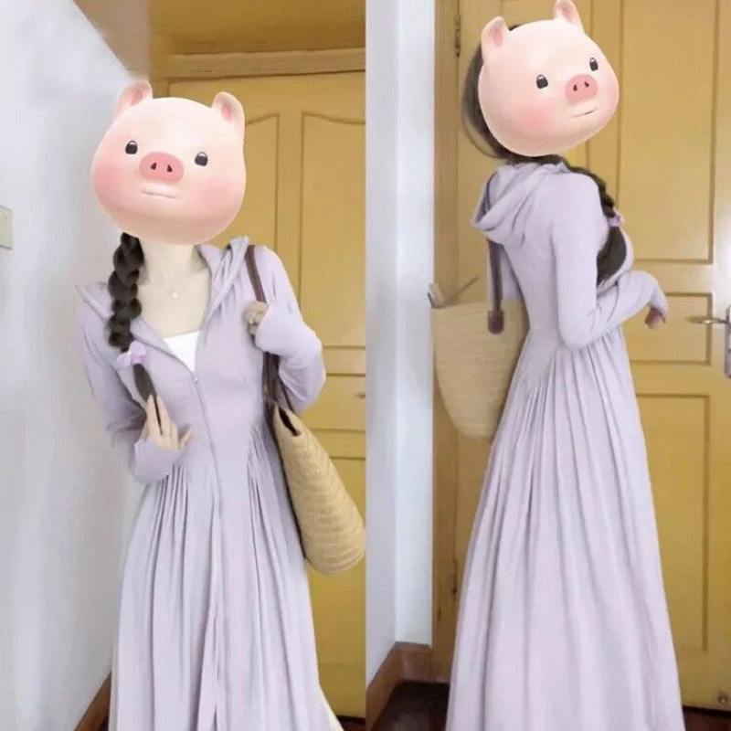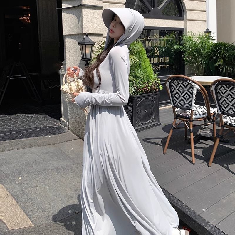 防晒衣女轻薄透气户外防晒服外套夏季超长款全身收腰显瘦防晒裙新