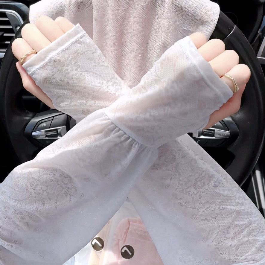 夏季蕾丝温柔仙女风防晒冰袖薄款开车户外防晒宽松护袖女冰丝袖套