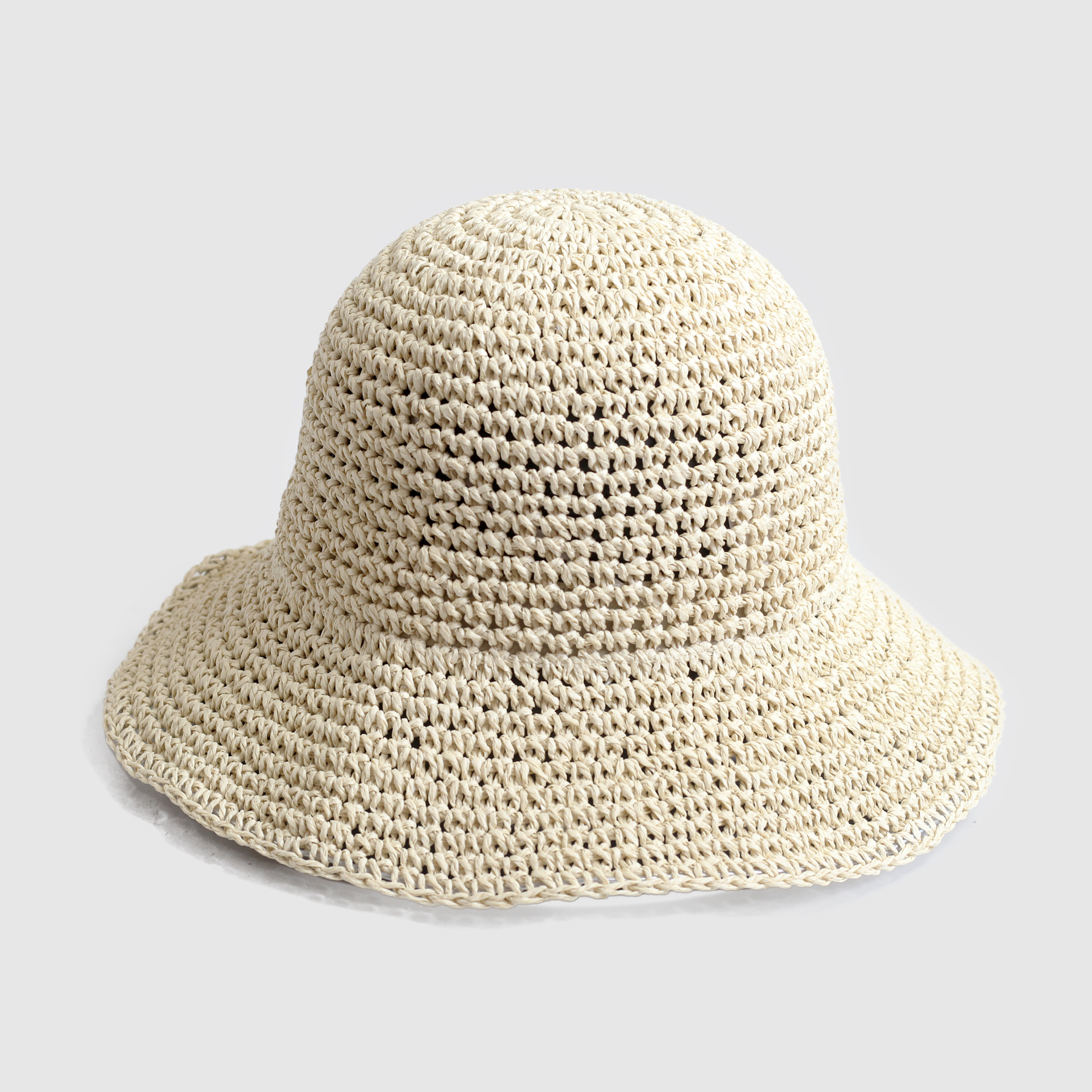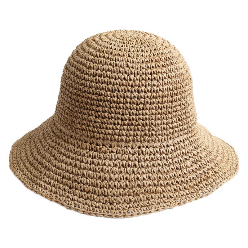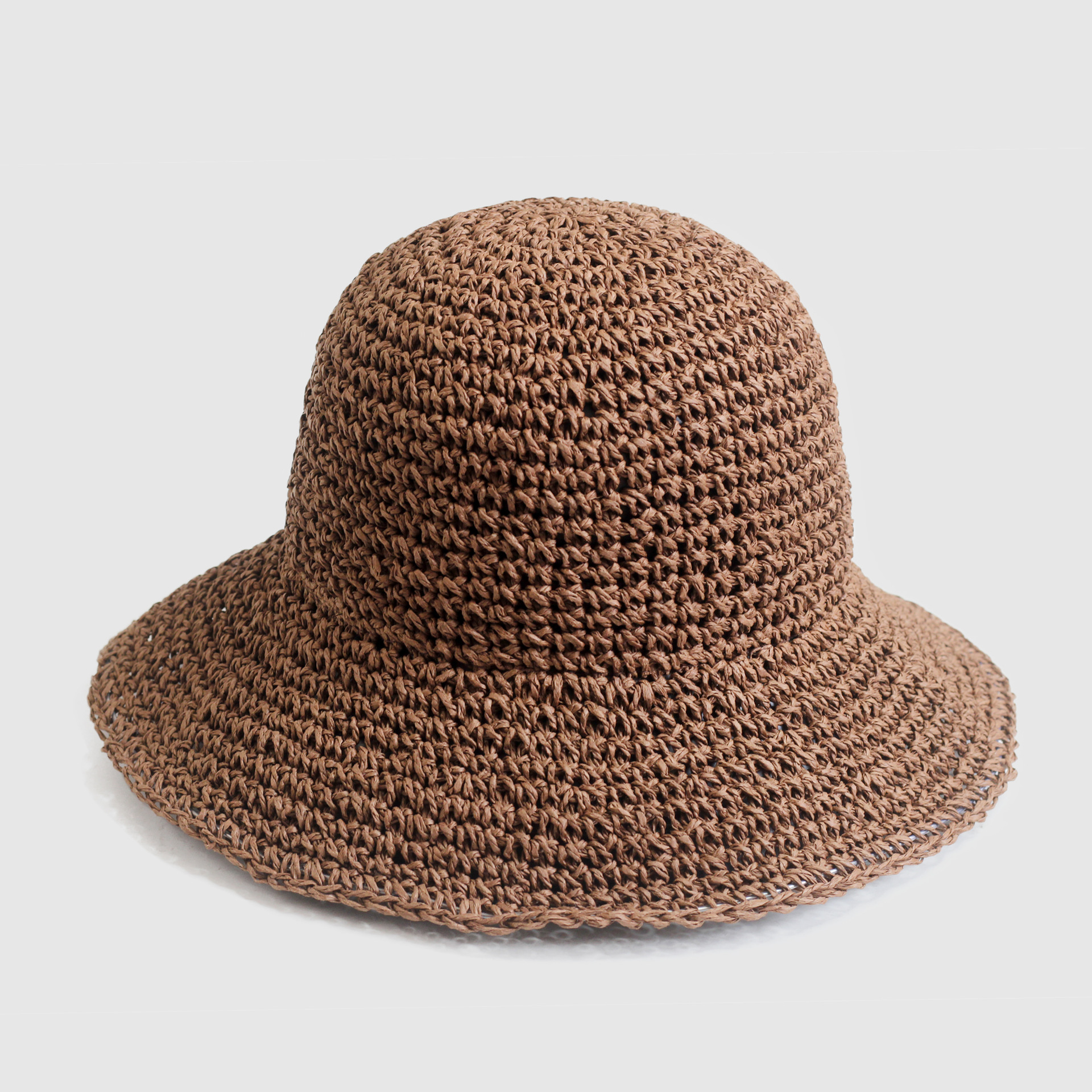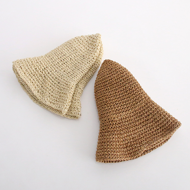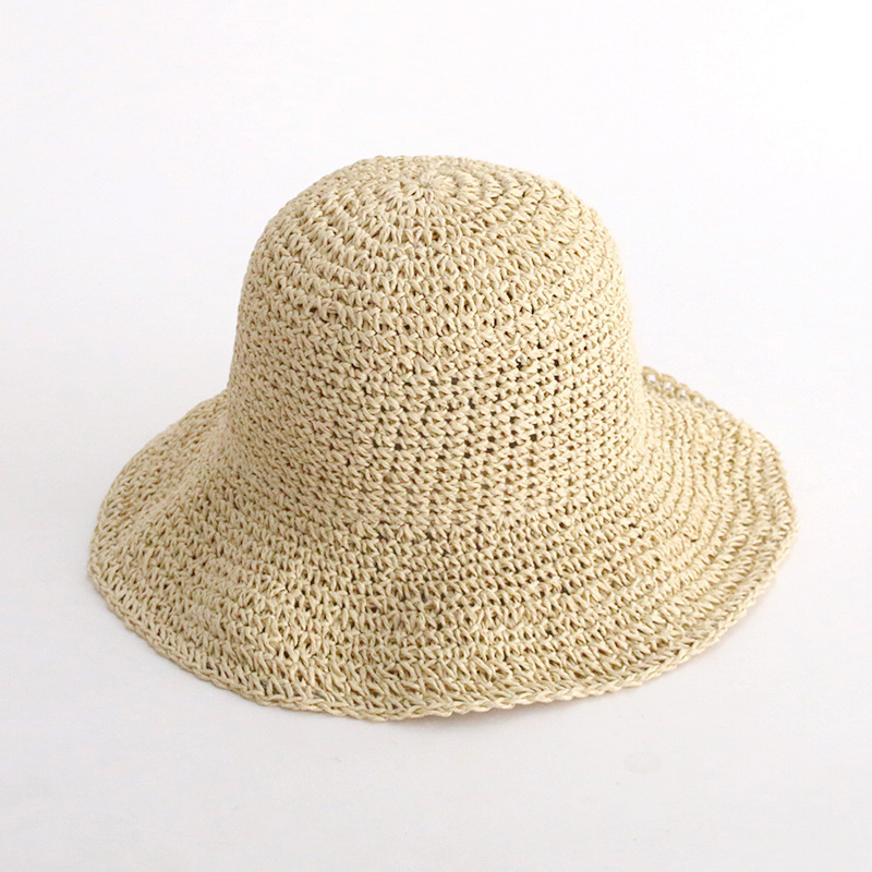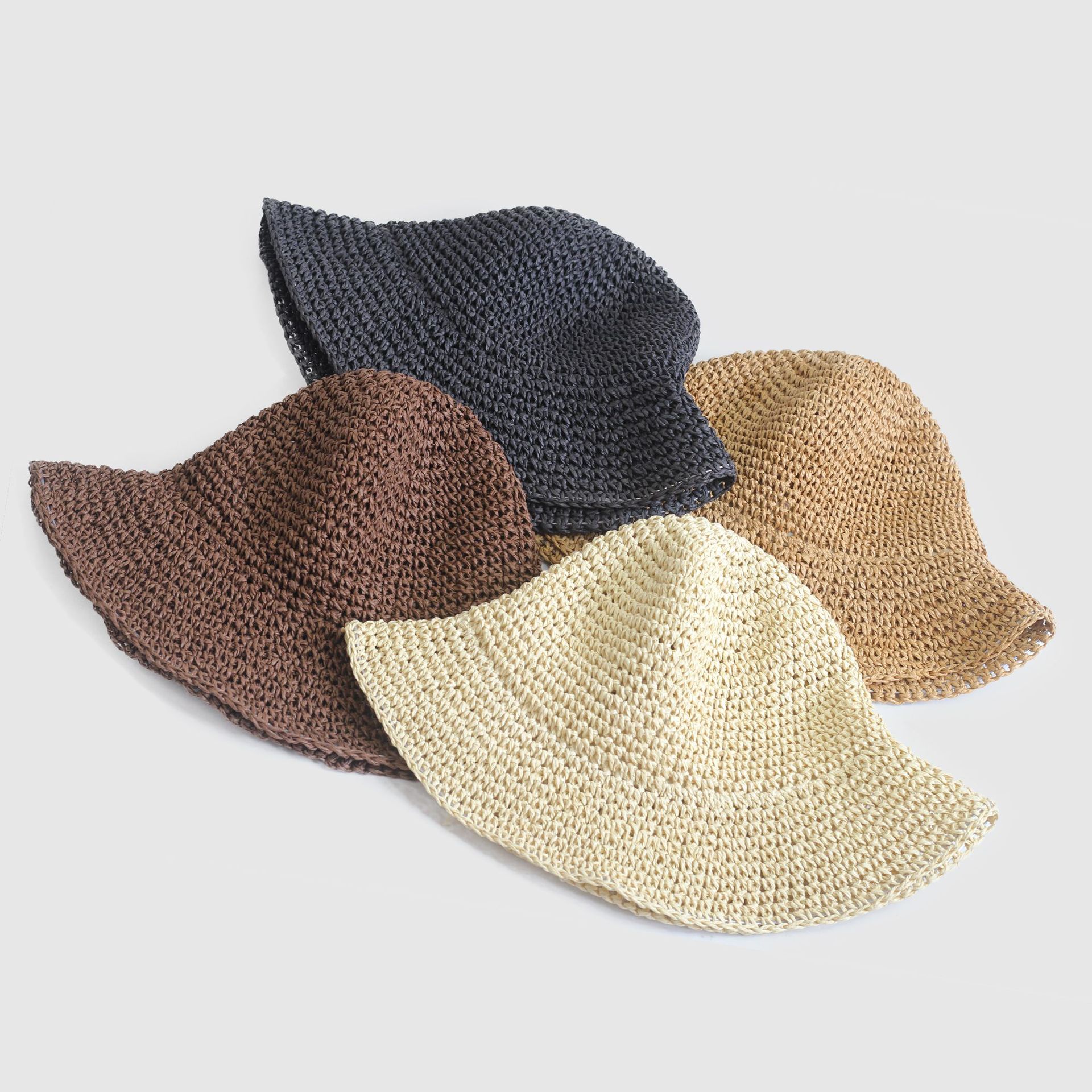 ins韩复古可折叠镂空遮阳防晒草帽光版平针手工钩针渔夫帽厂家