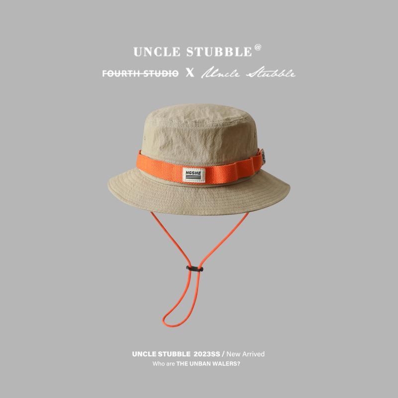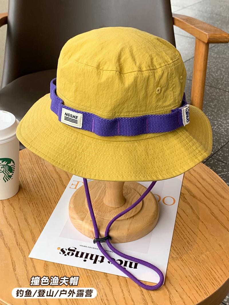 日系撞色复古渔夫帽子男女夏季户外露营登山帽大檐太阳帽