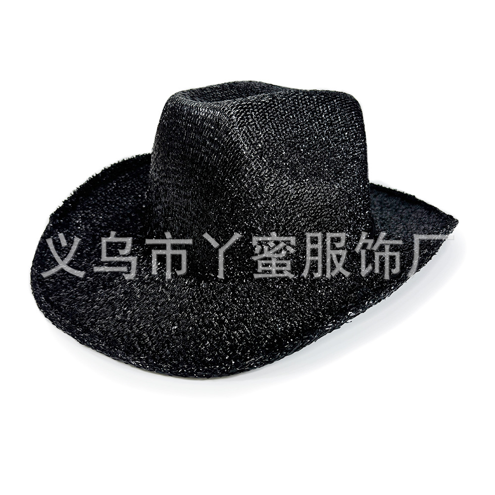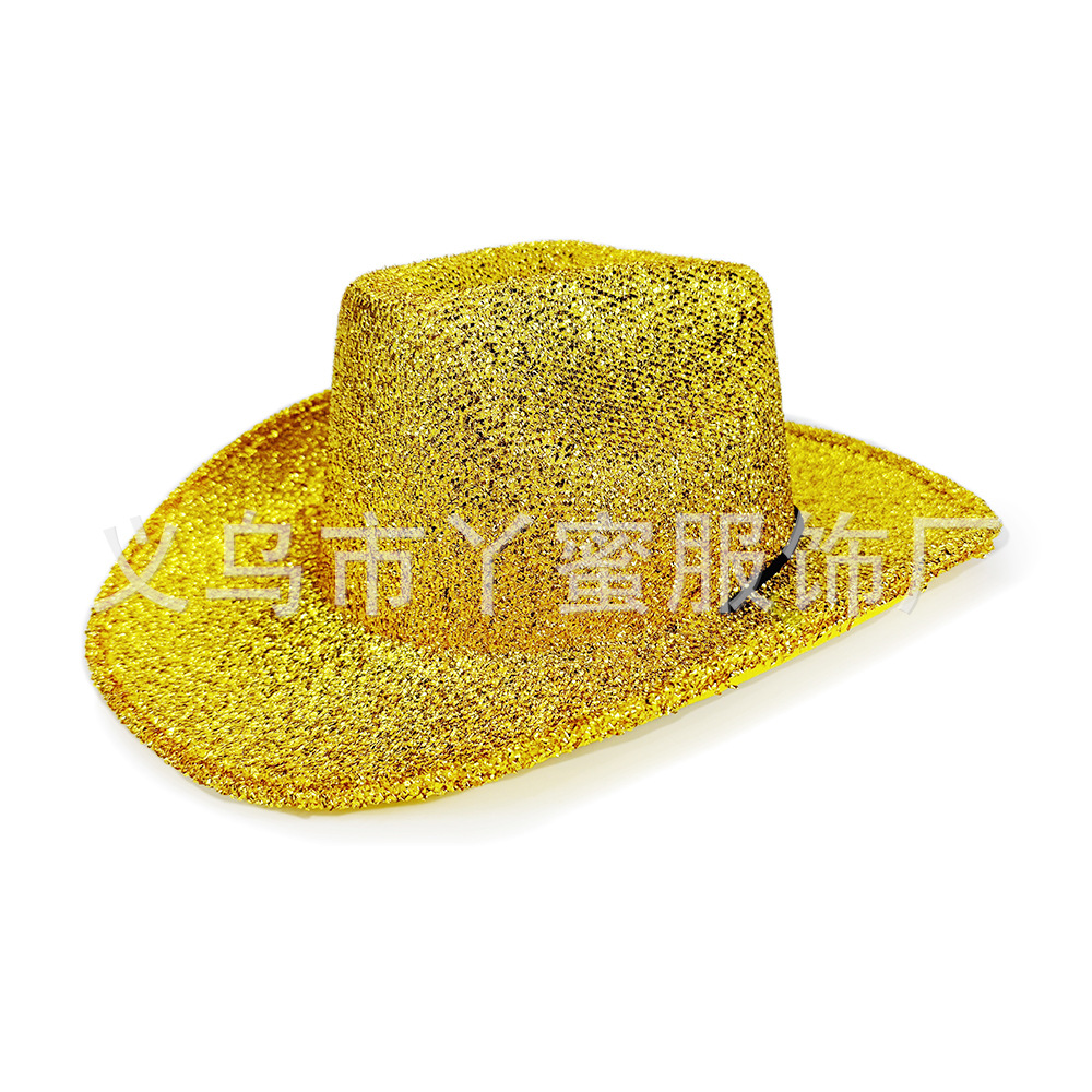 现货亚马逊万圣节派对羽丝碎闪牛仔帽 狂欢节迪斯科西部牛仔帽