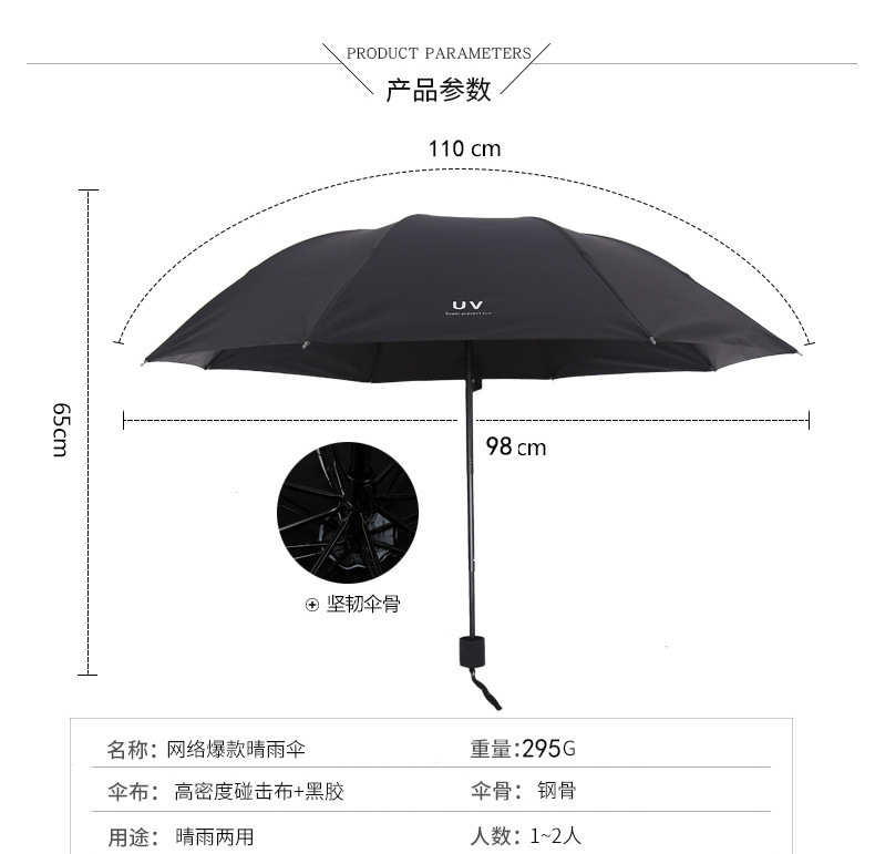 创意UV折叠雨伞大量批发黑胶防晒遮阳伞太阳伞晴雨两用厂家现货