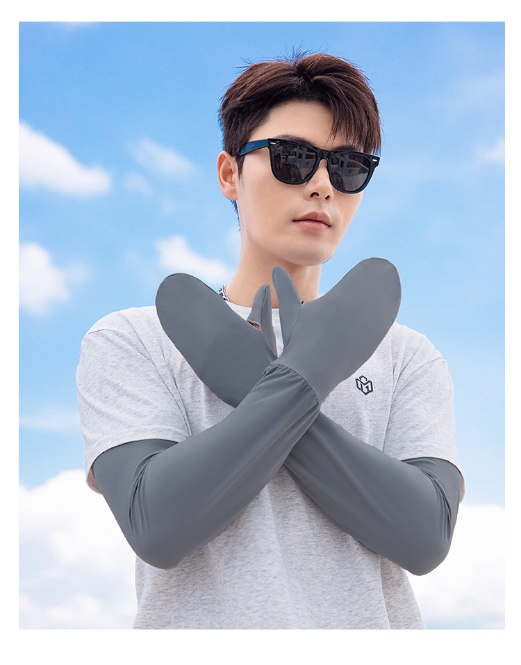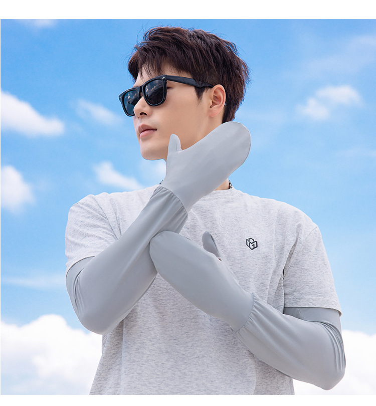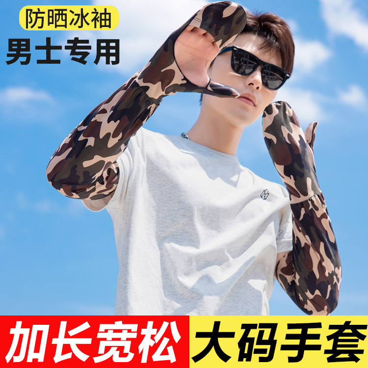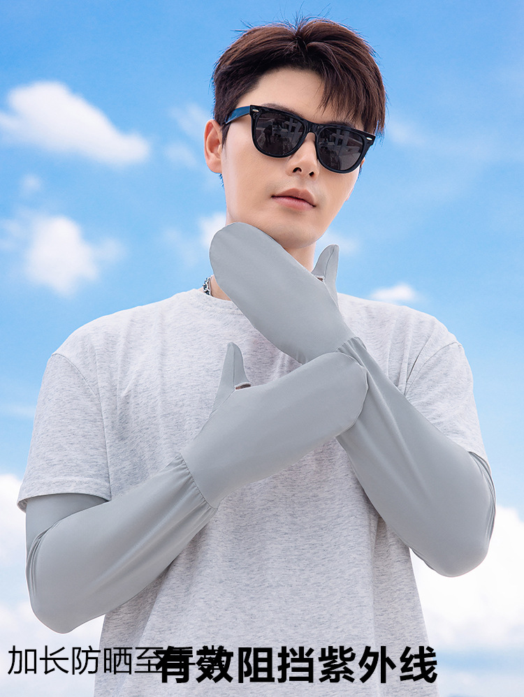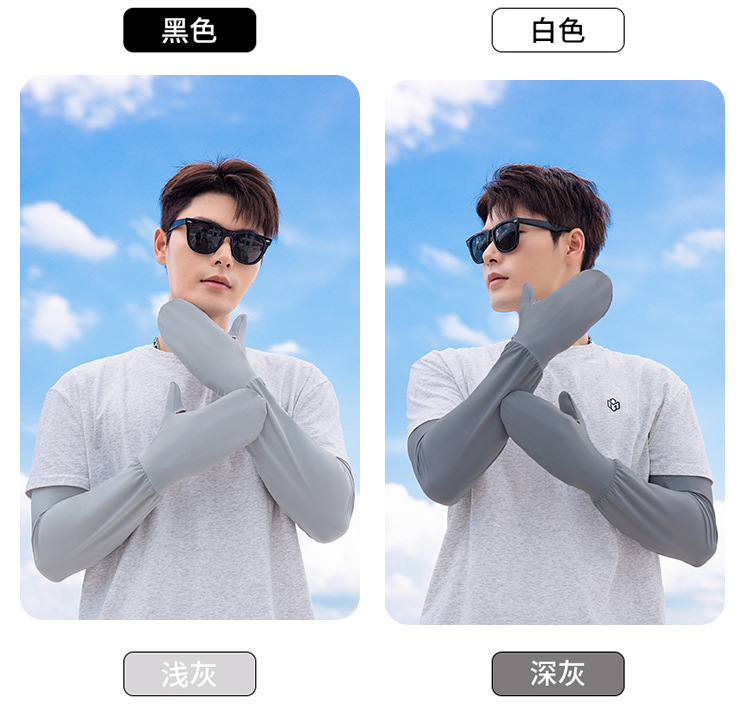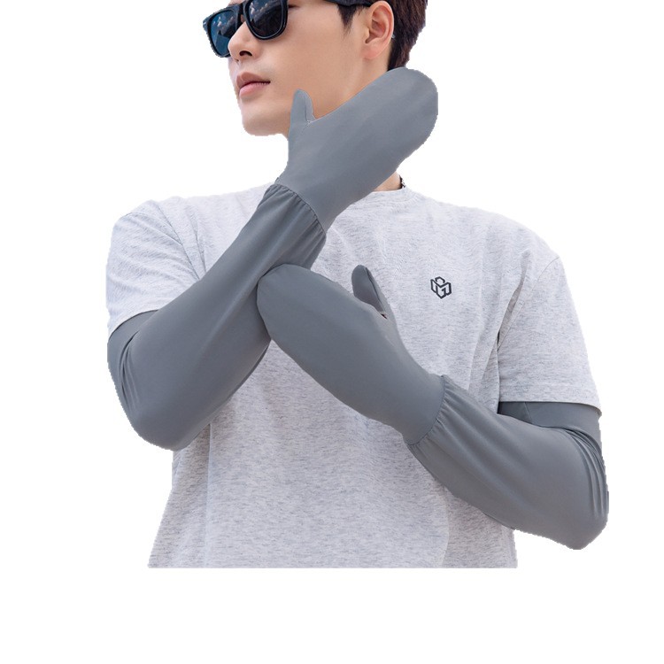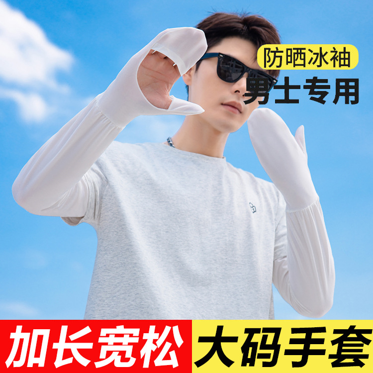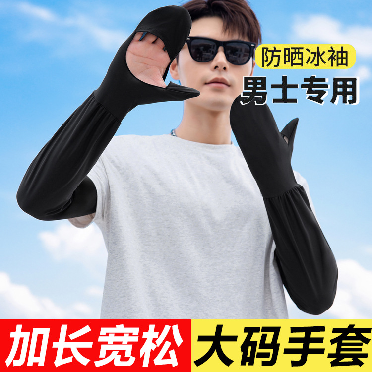 男士冰丝加长冰袖手套一体夏季大码宽松防晒袖套防紫外线手臂护袖