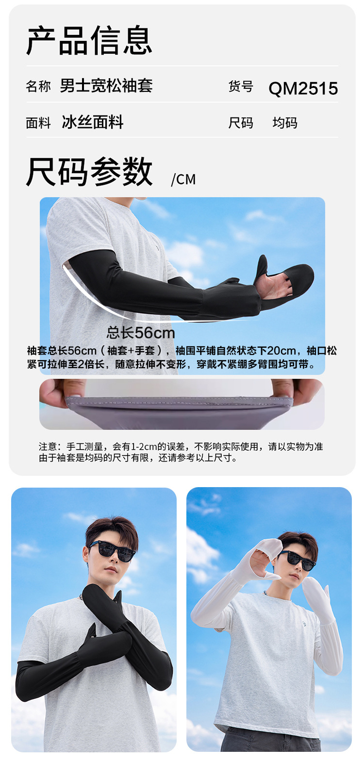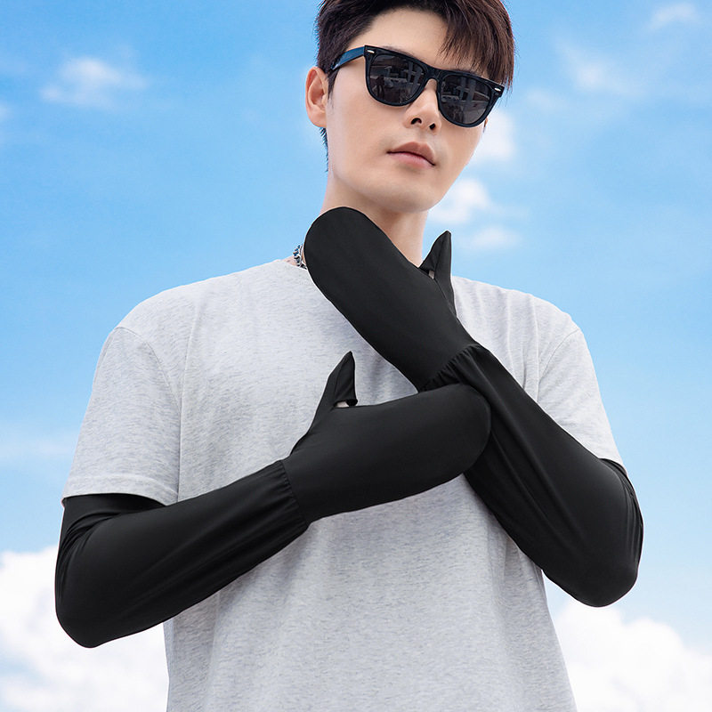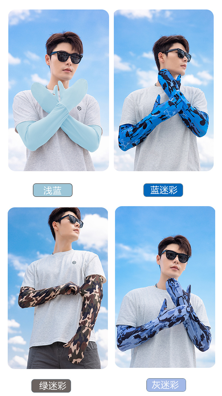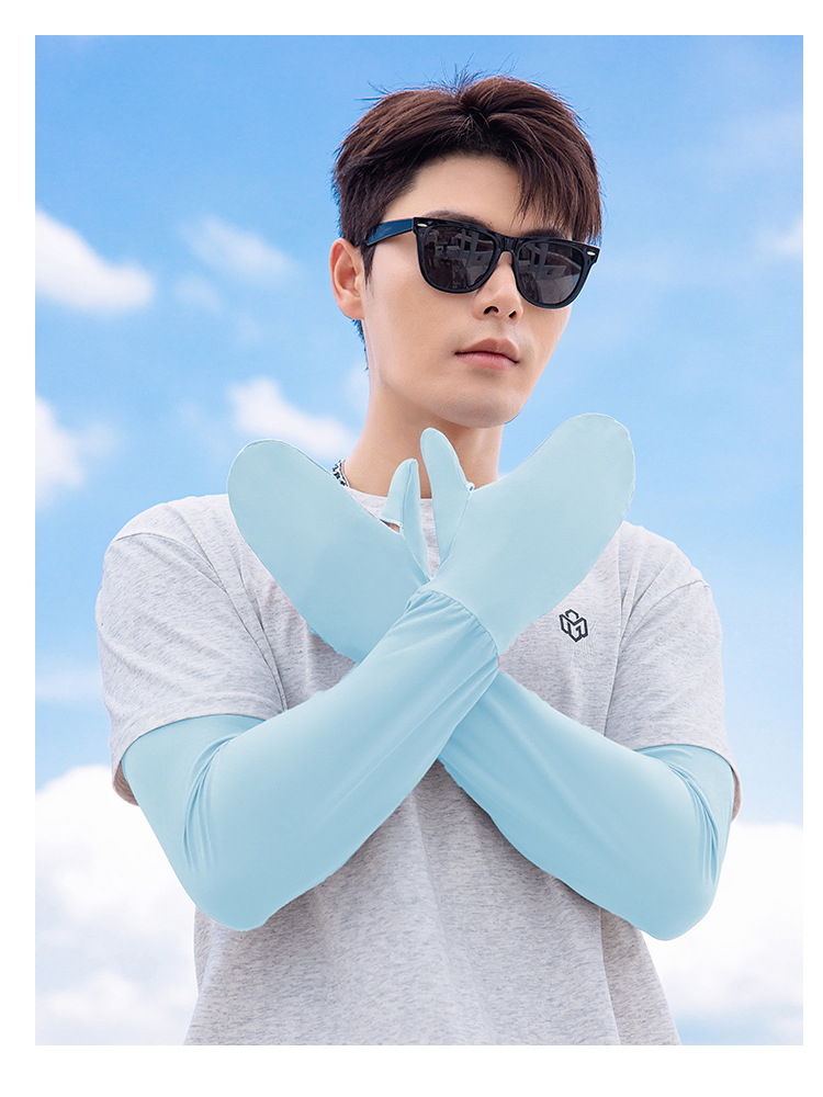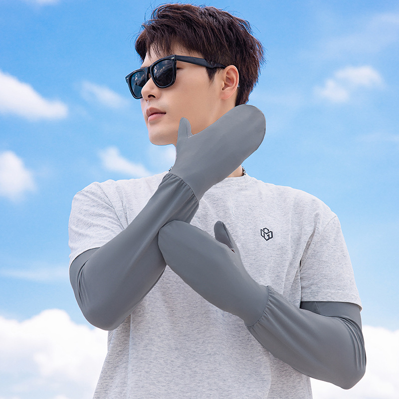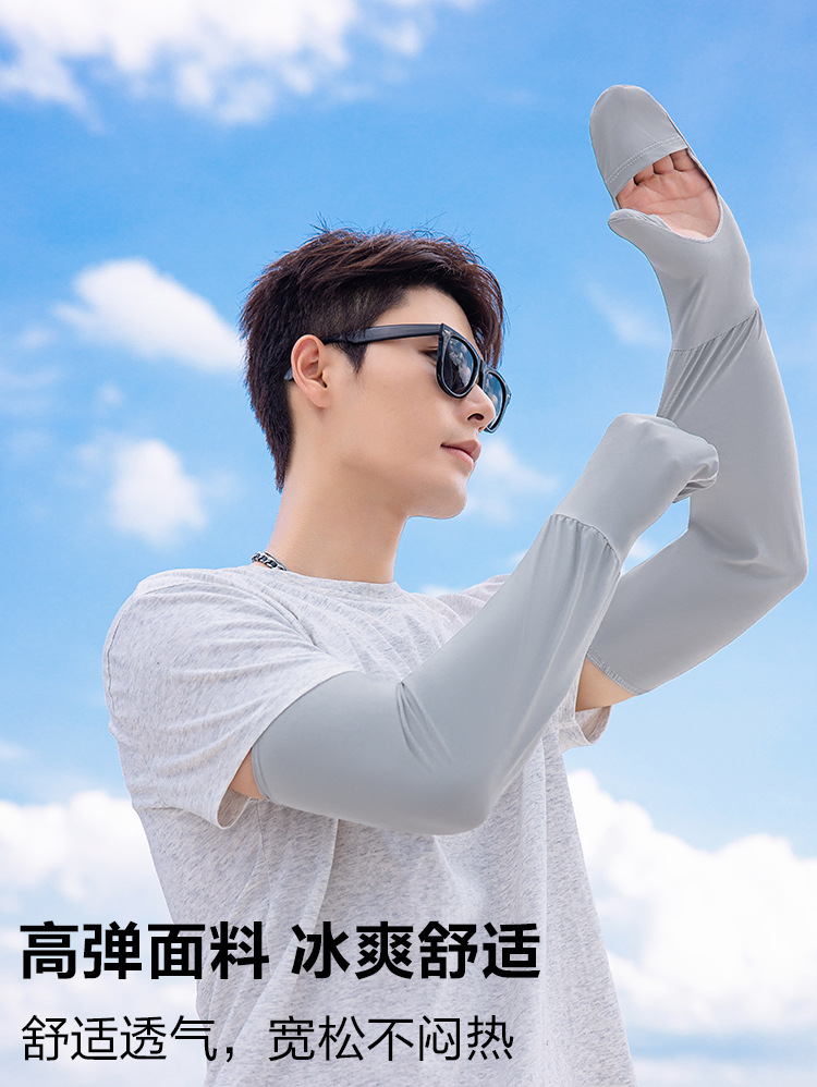 男士冰丝加长冰袖手套一体夏季大码宽松防晒袖套防紫外线手臂护袖