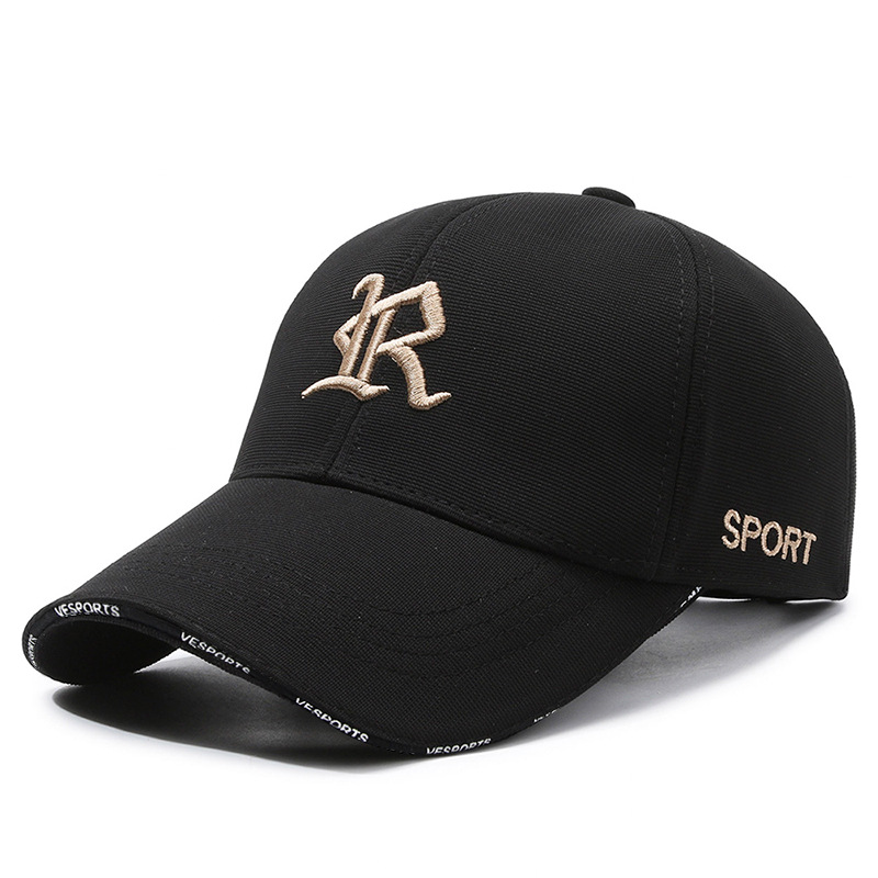 春季新款刺绣立体R字母帽子男女青年休闲简约百搭硬顶弯檐棒球帽