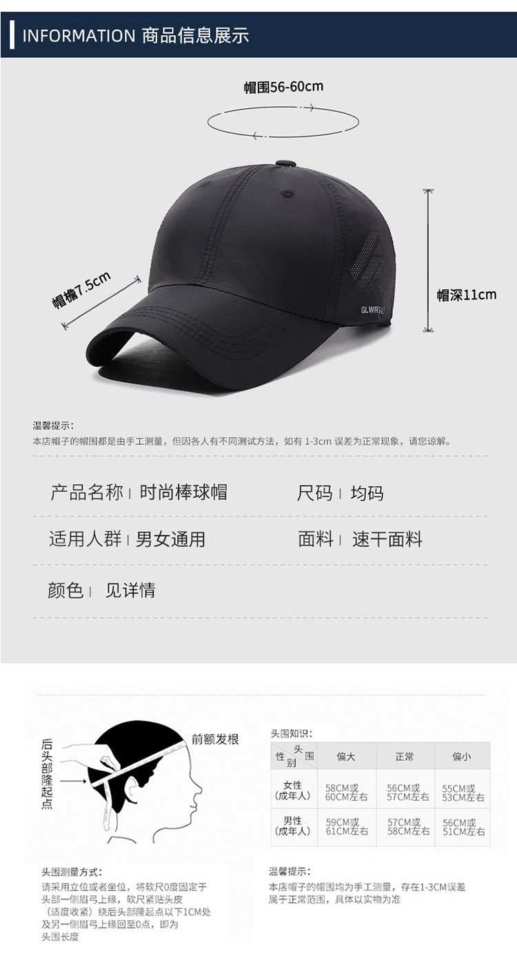 新款夏速干网眼棒球帽春夏防晒遮阳户外运动出游薄款软顶鸭舌帽