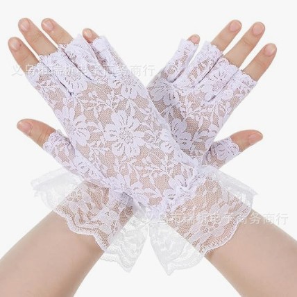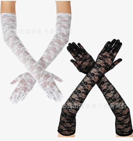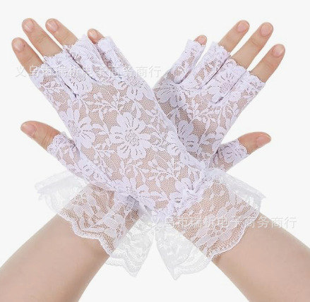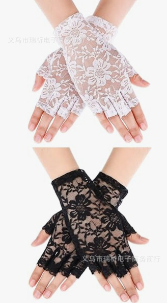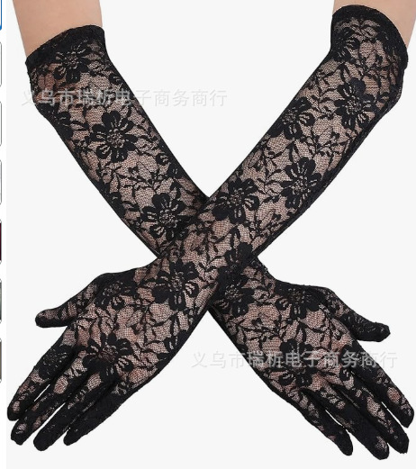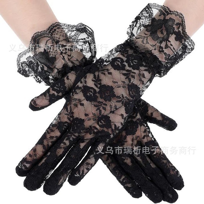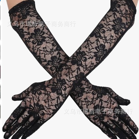 厂家直销跨境蕾丝手套大花边露指长款短款有指 夏季新娘手套 防晒