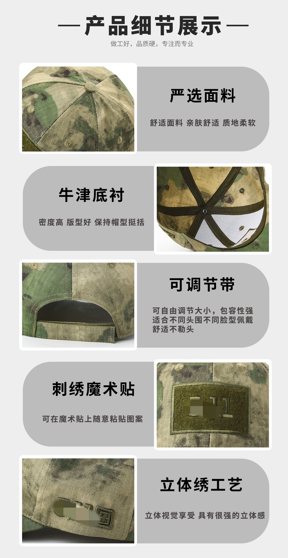 迷彩棒球帽男春魔术贴遮阳防风跨境刺绣鸭舌帽女户外运动军训帽子