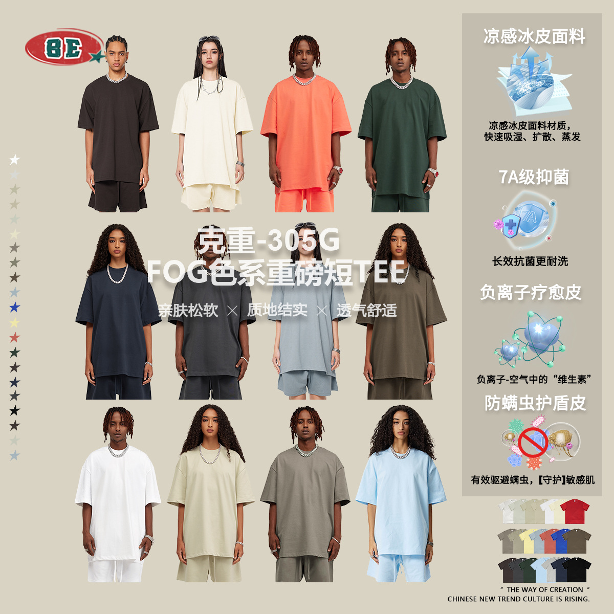 BE男装2025夏季305G重磅t恤男美式纯棉潮牌纯色短袖青少年上衣