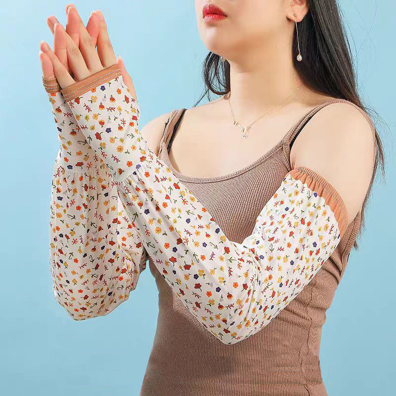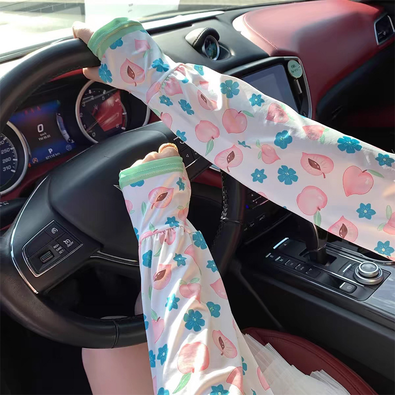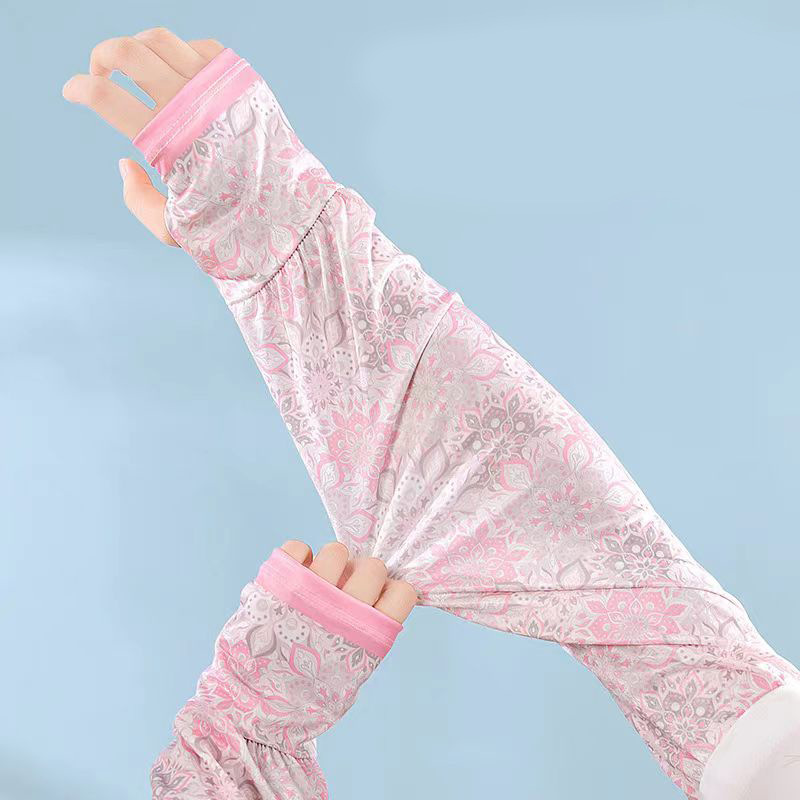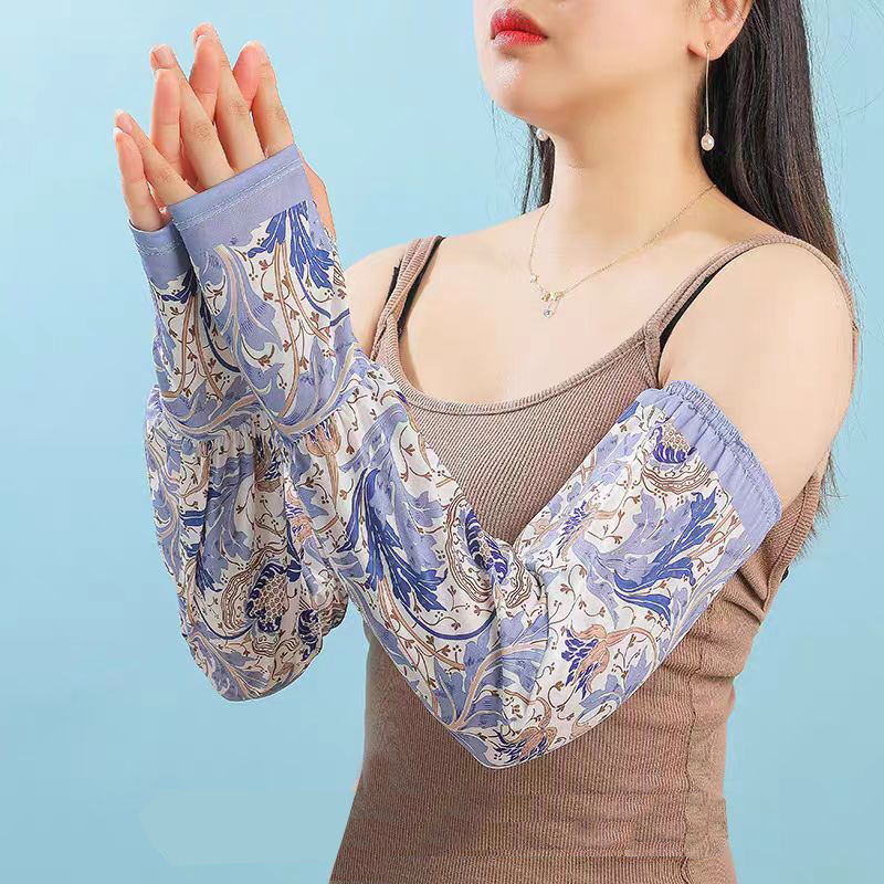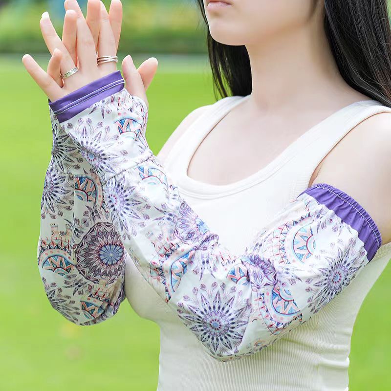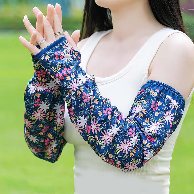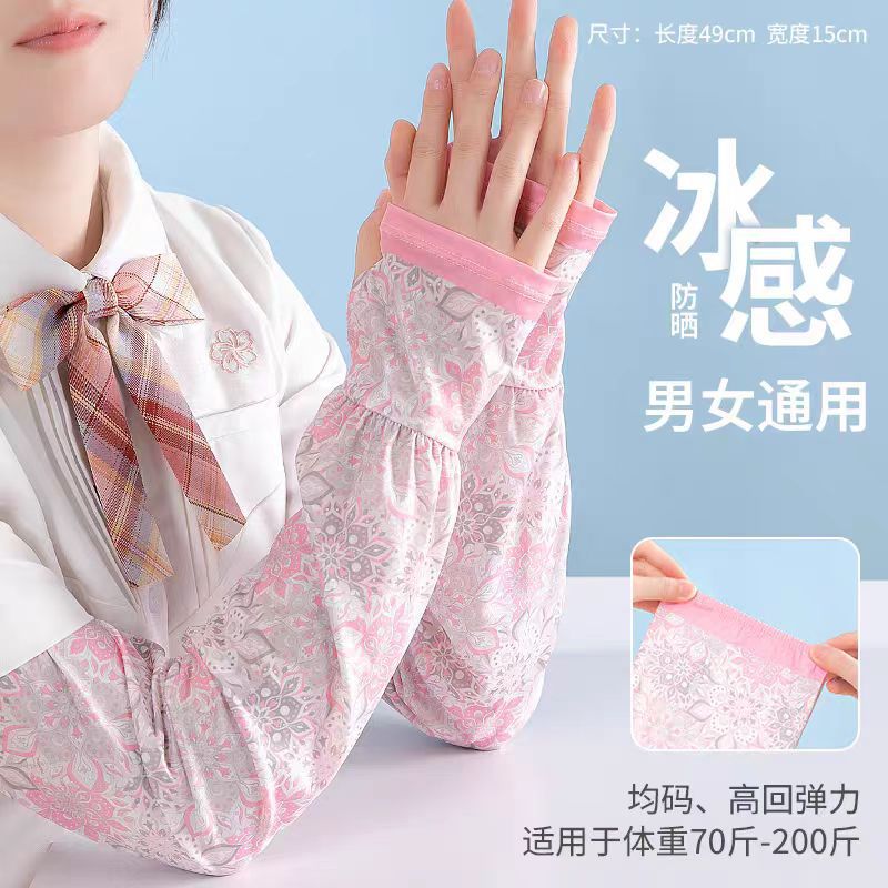 网红款印花冰袖女夏季宽松手臂套护袖户外开车防紫外线冰丝袖套