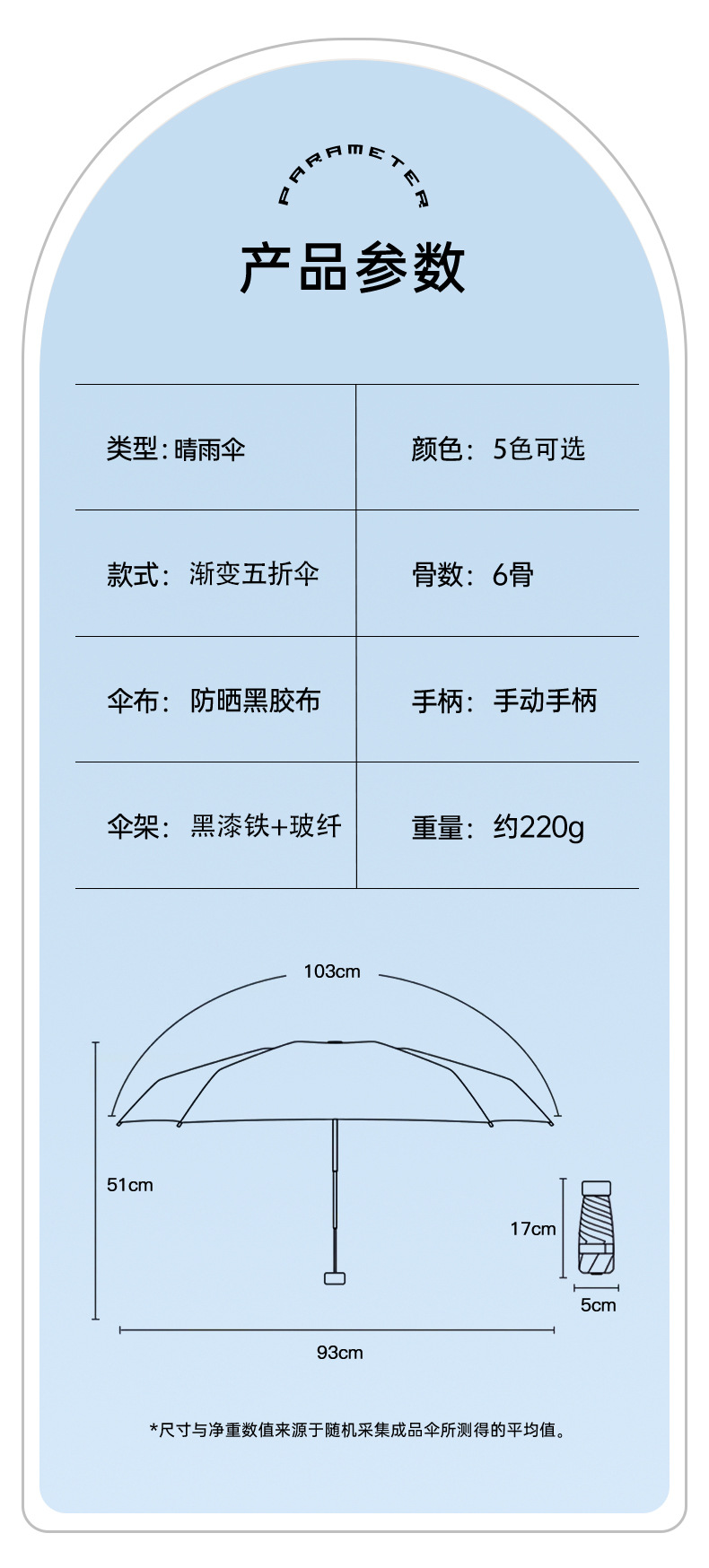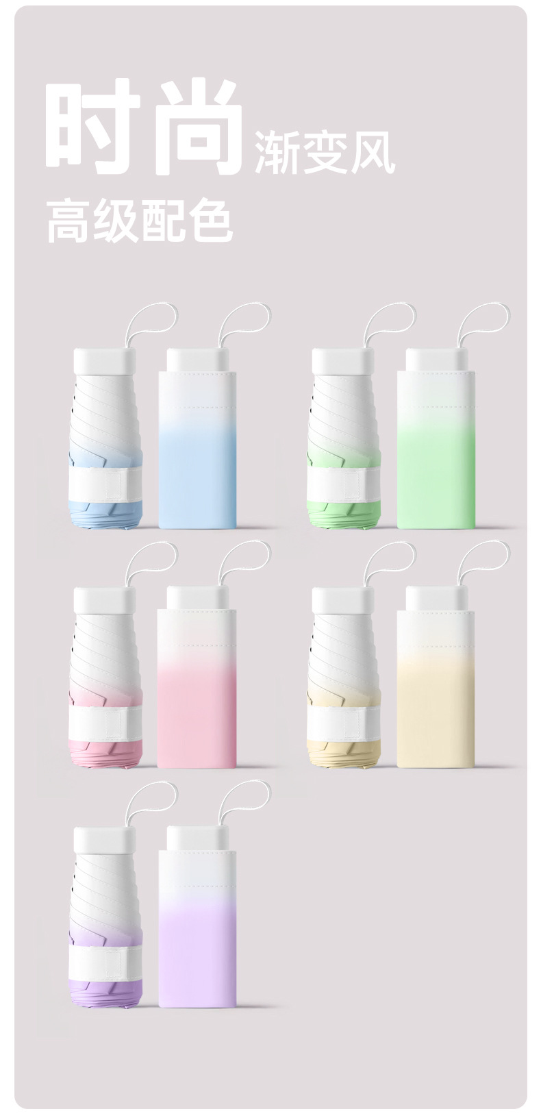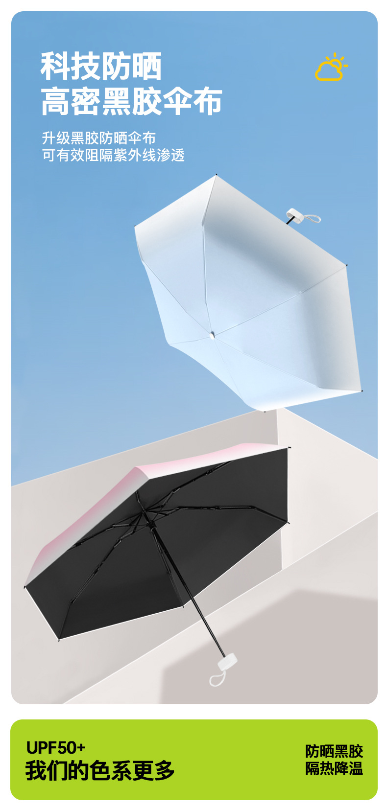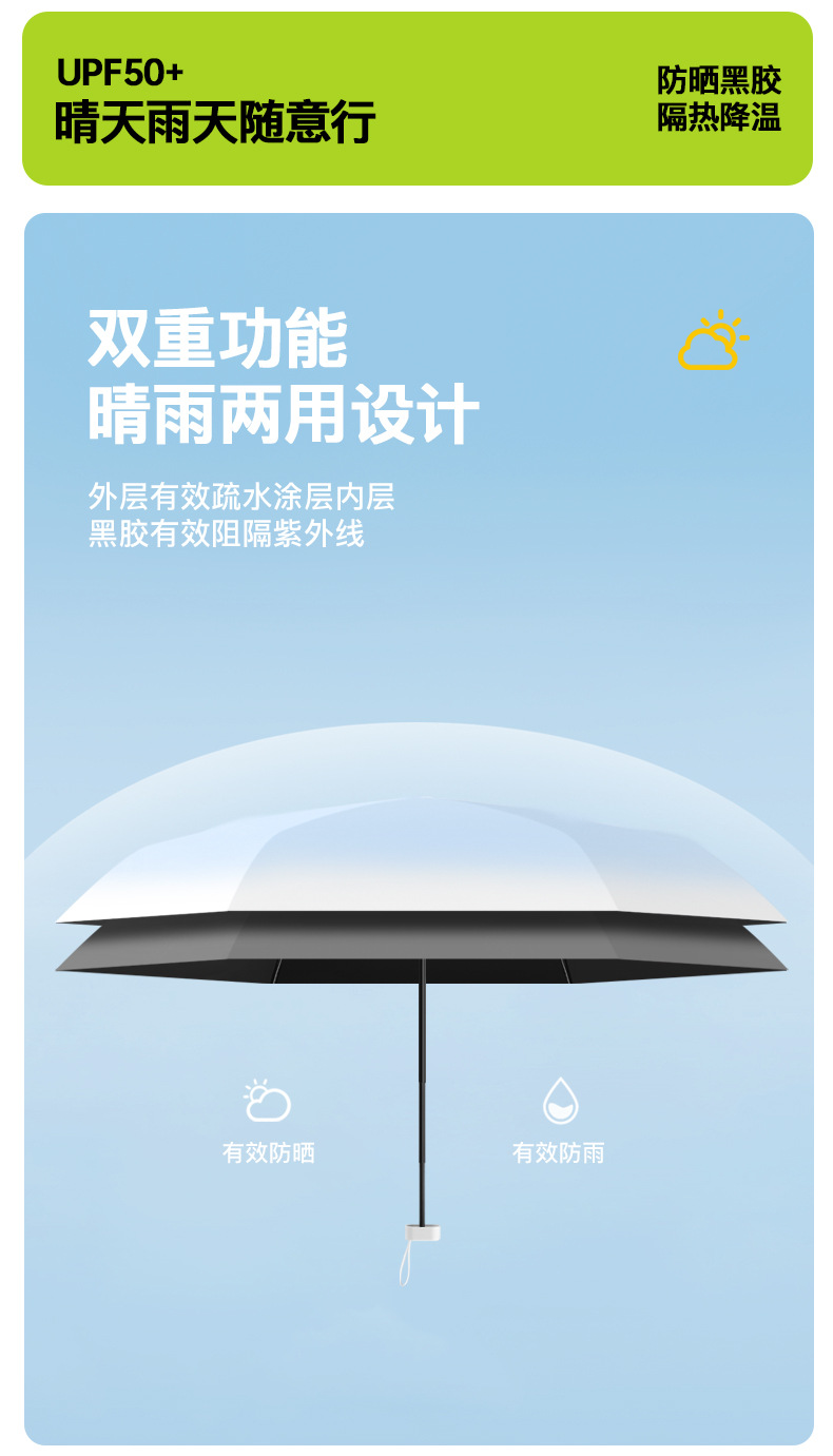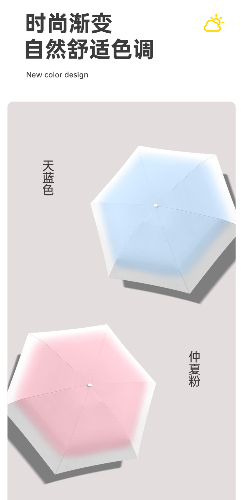 五折渐变色雨伞折叠伞加固加厚晴雨伞黑胶学生女防晒防紫外线伞