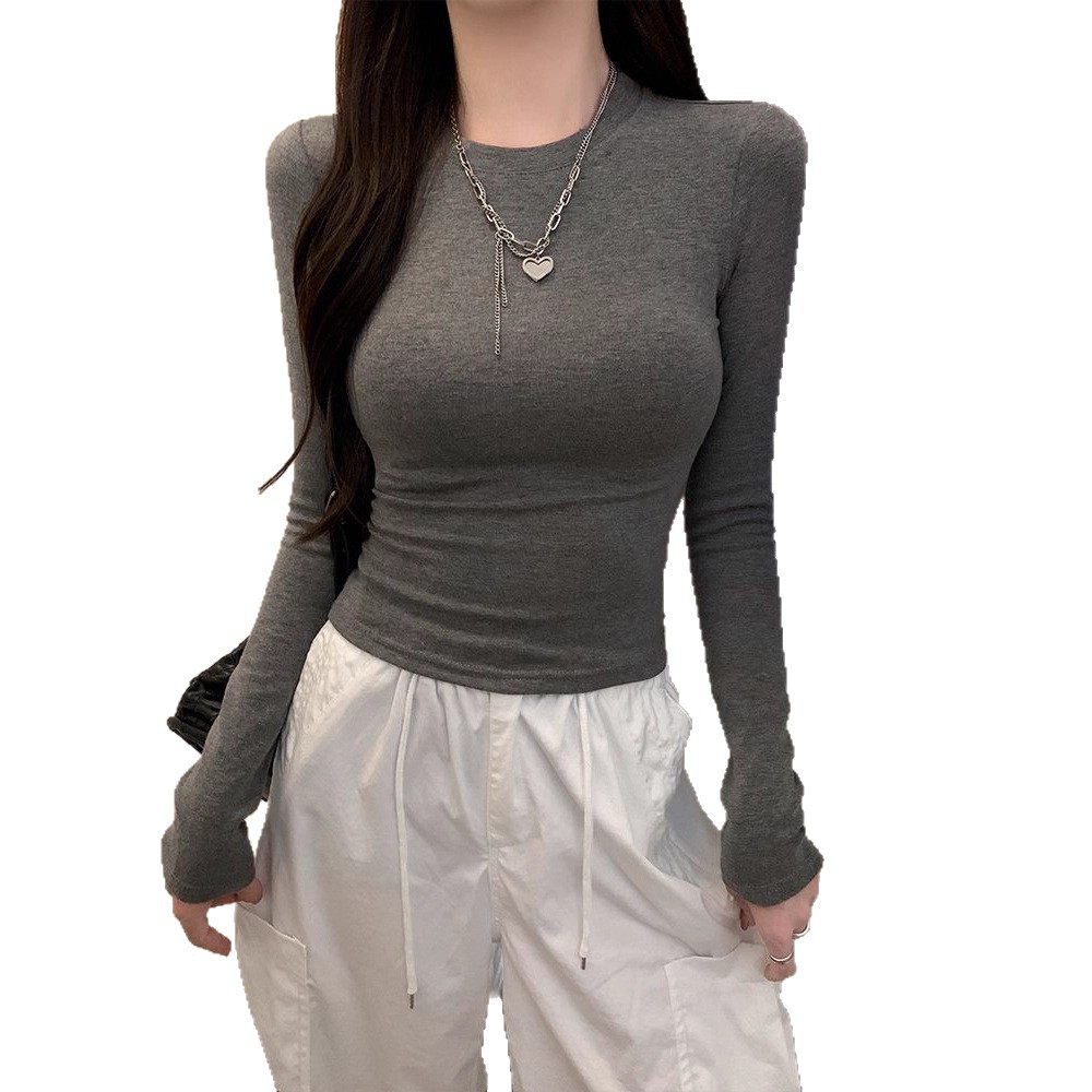 2025新款辣妹掐腰长袖T恤女春秋修身显瘦百搭打底衫女装白色上衣