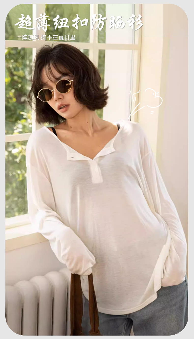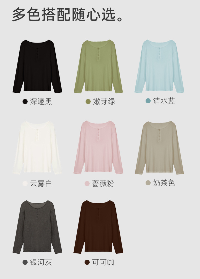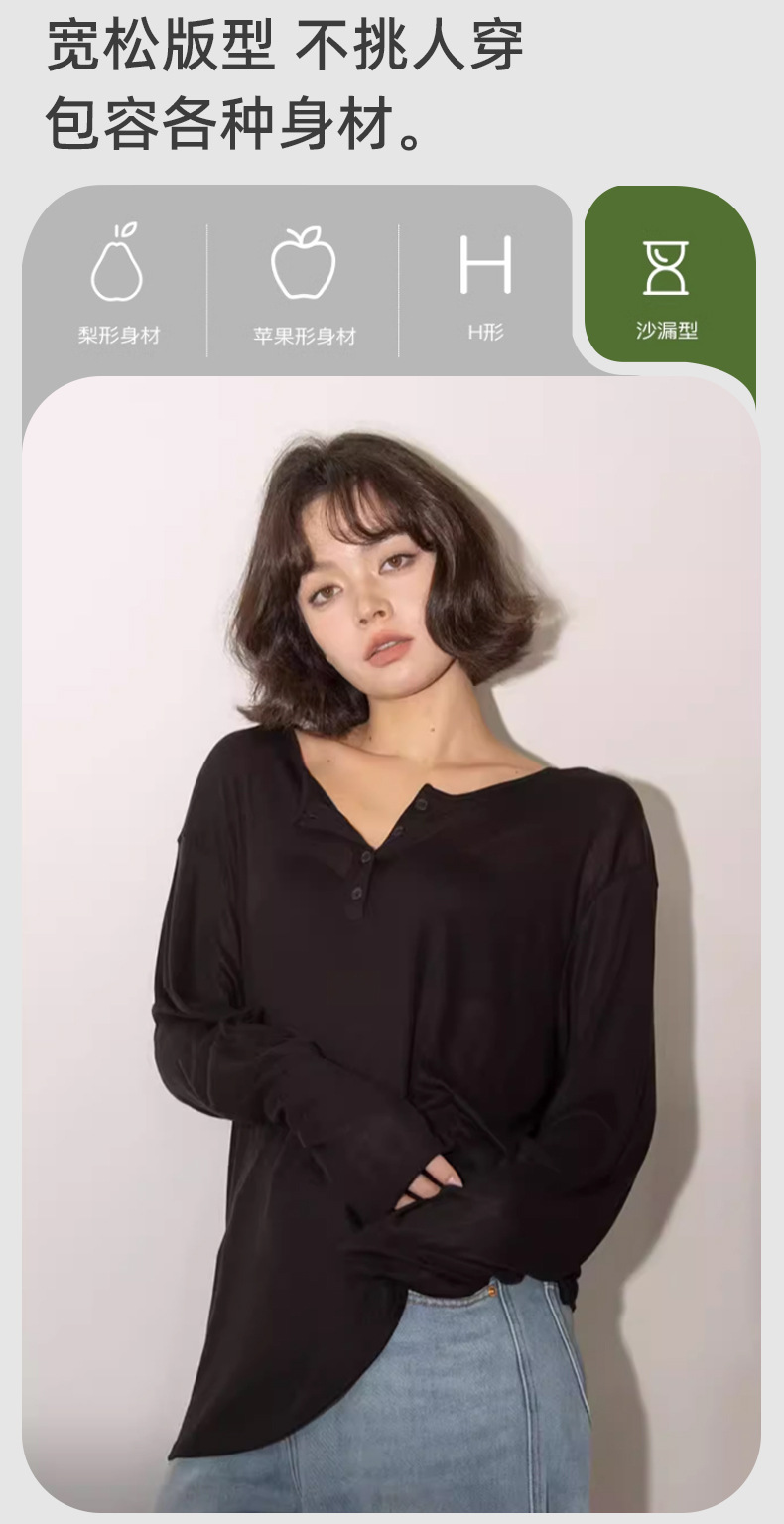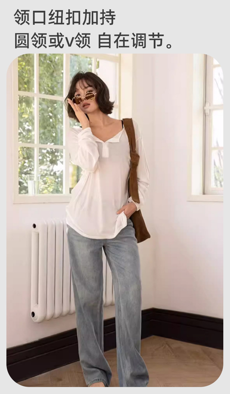 慵懒风纽扣长袖T恤女休闲薄款显瘦女装套头女士打底衫设计感