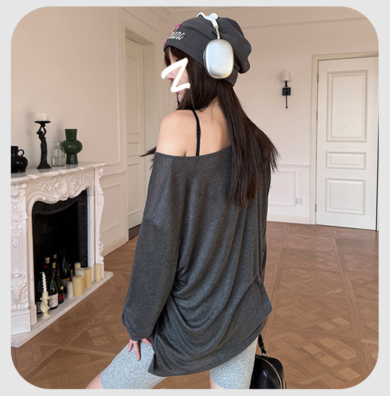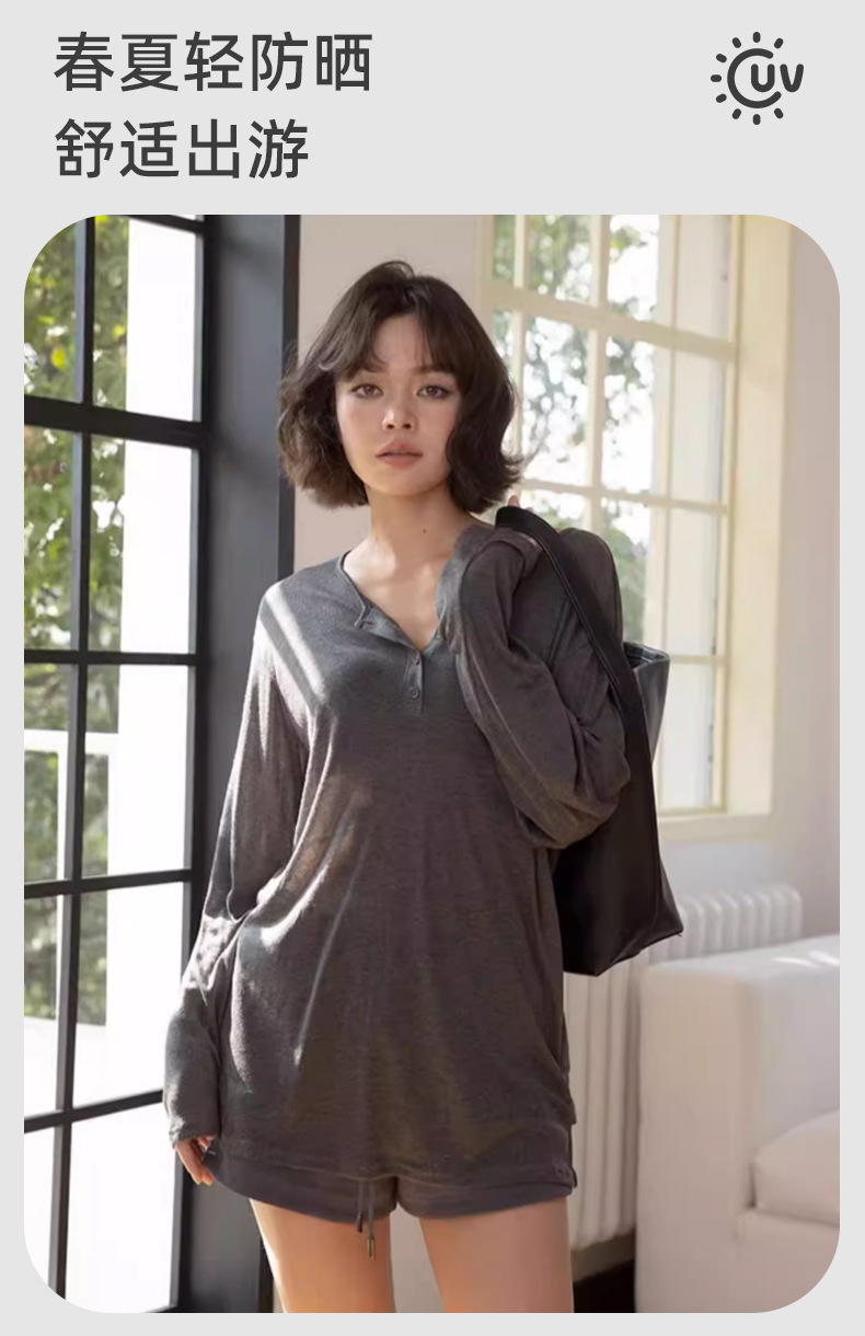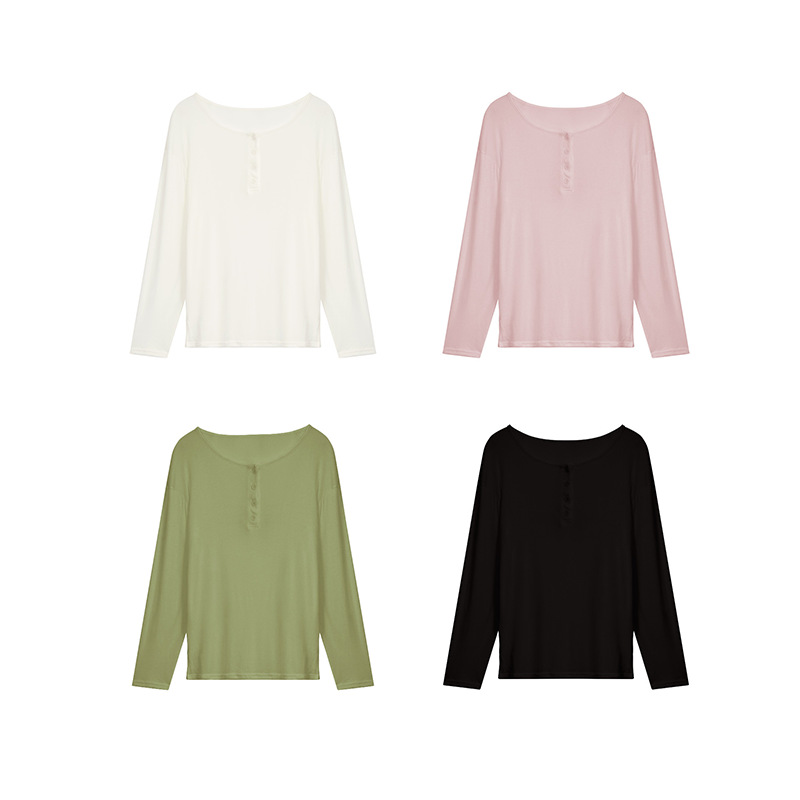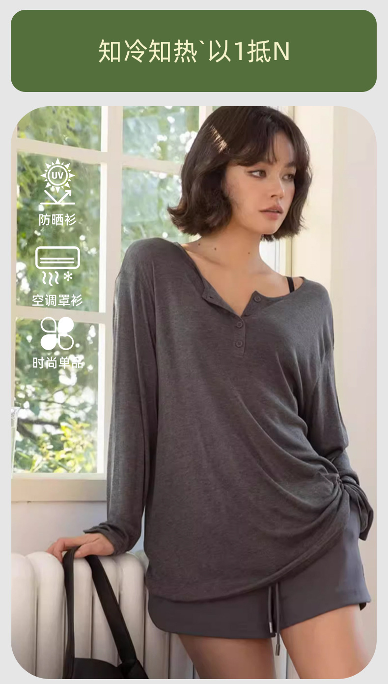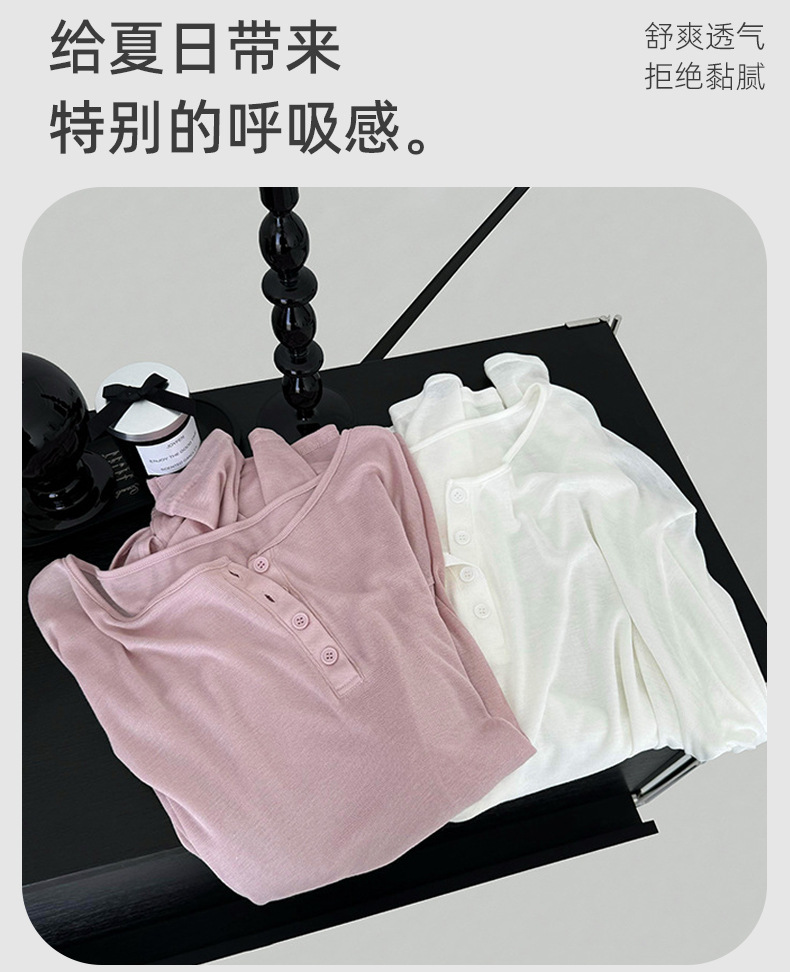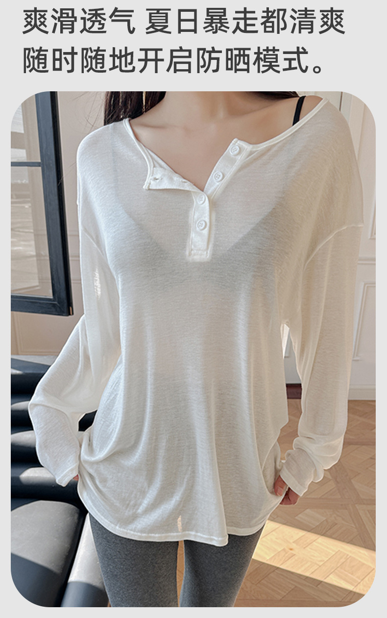 慵懒风纽扣长袖T恤女休闲薄款显瘦女装套头女士打底衫设计感