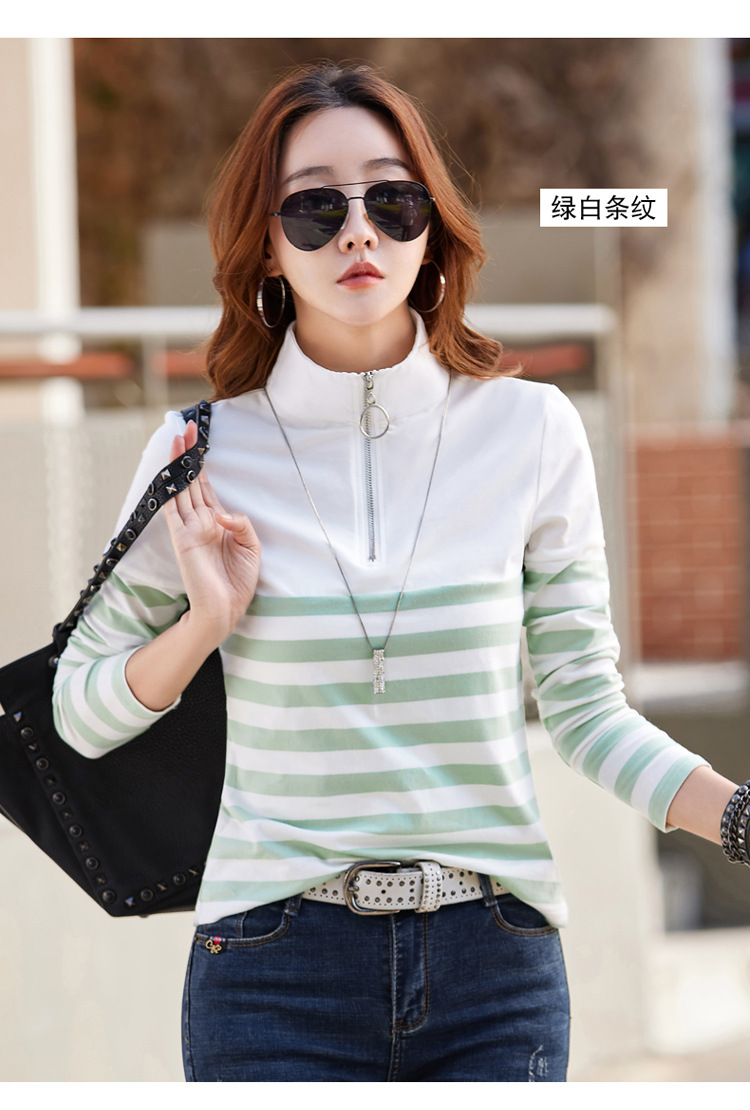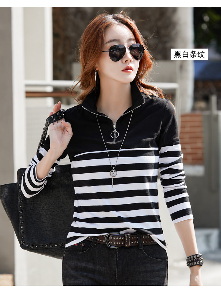 82306长袖简约外穿T恤女打底衫春夏新款修身显瘦纯色时尚百搭