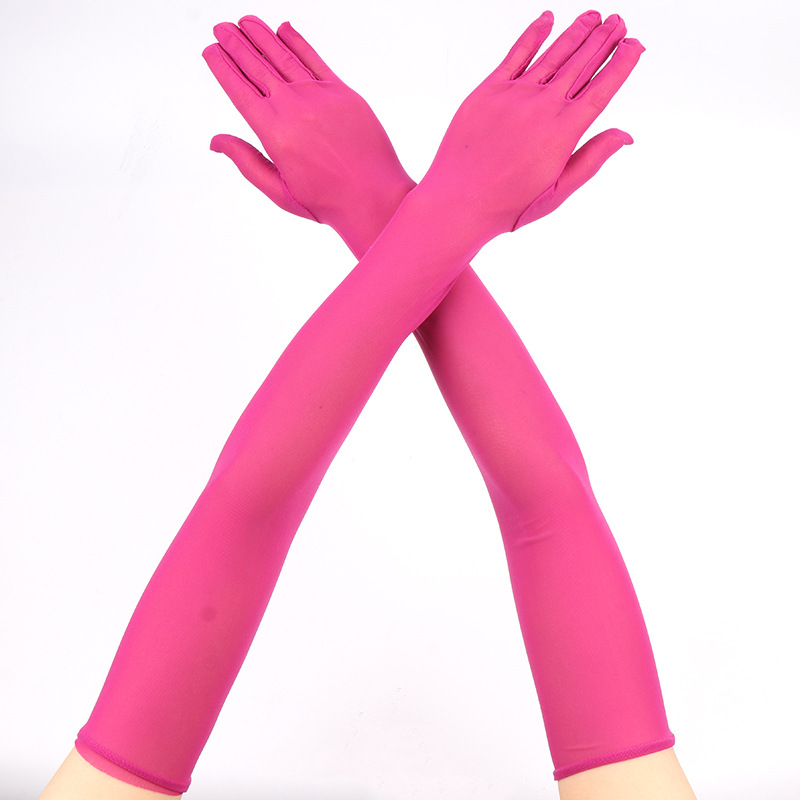 55cm加长款薄网纱蕾丝手套女黑丝性感透气手袜高弹力防晒礼服配饰