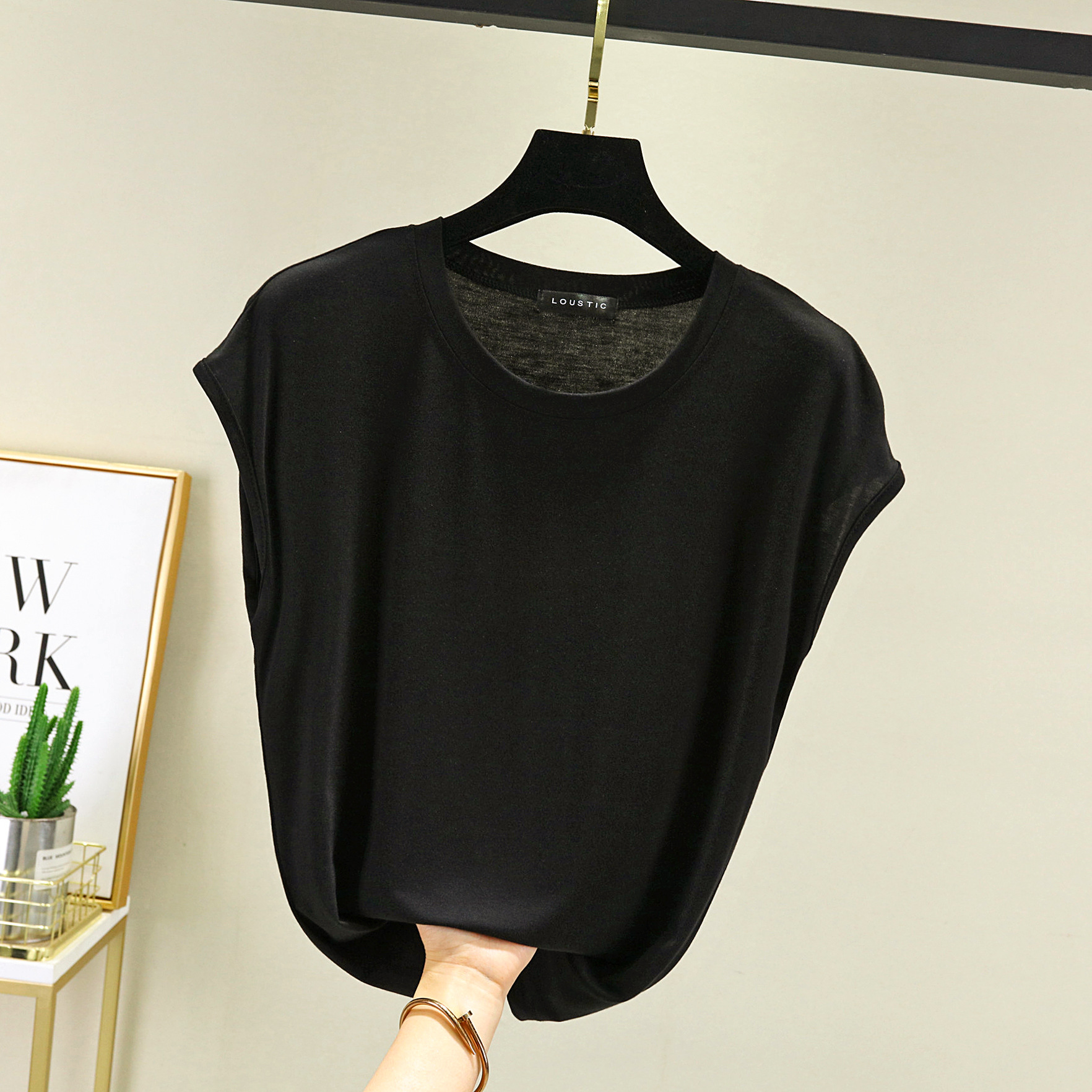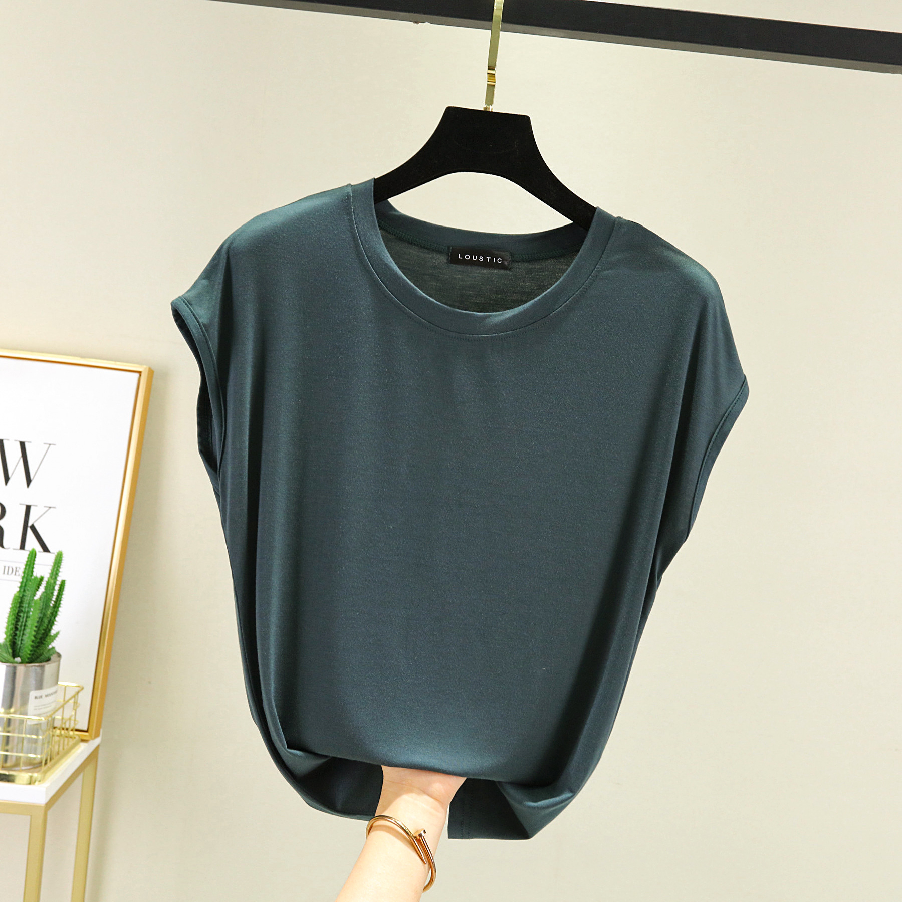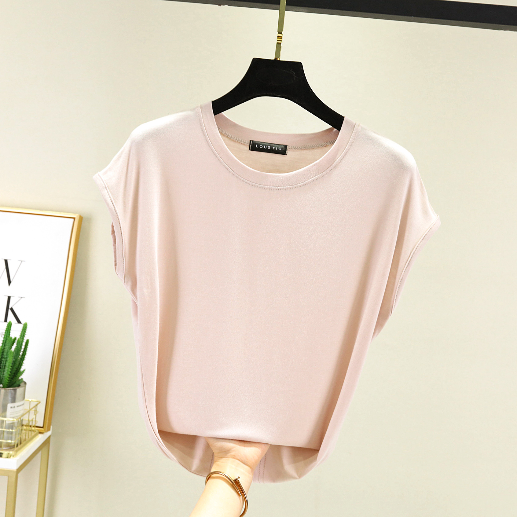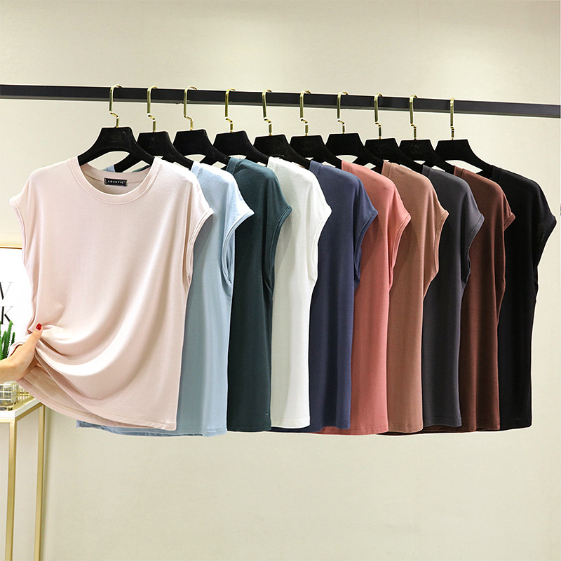 莫代尔无袖T恤女夏2021新款内搭打底圆领宽松大码纯色显瘦上衣