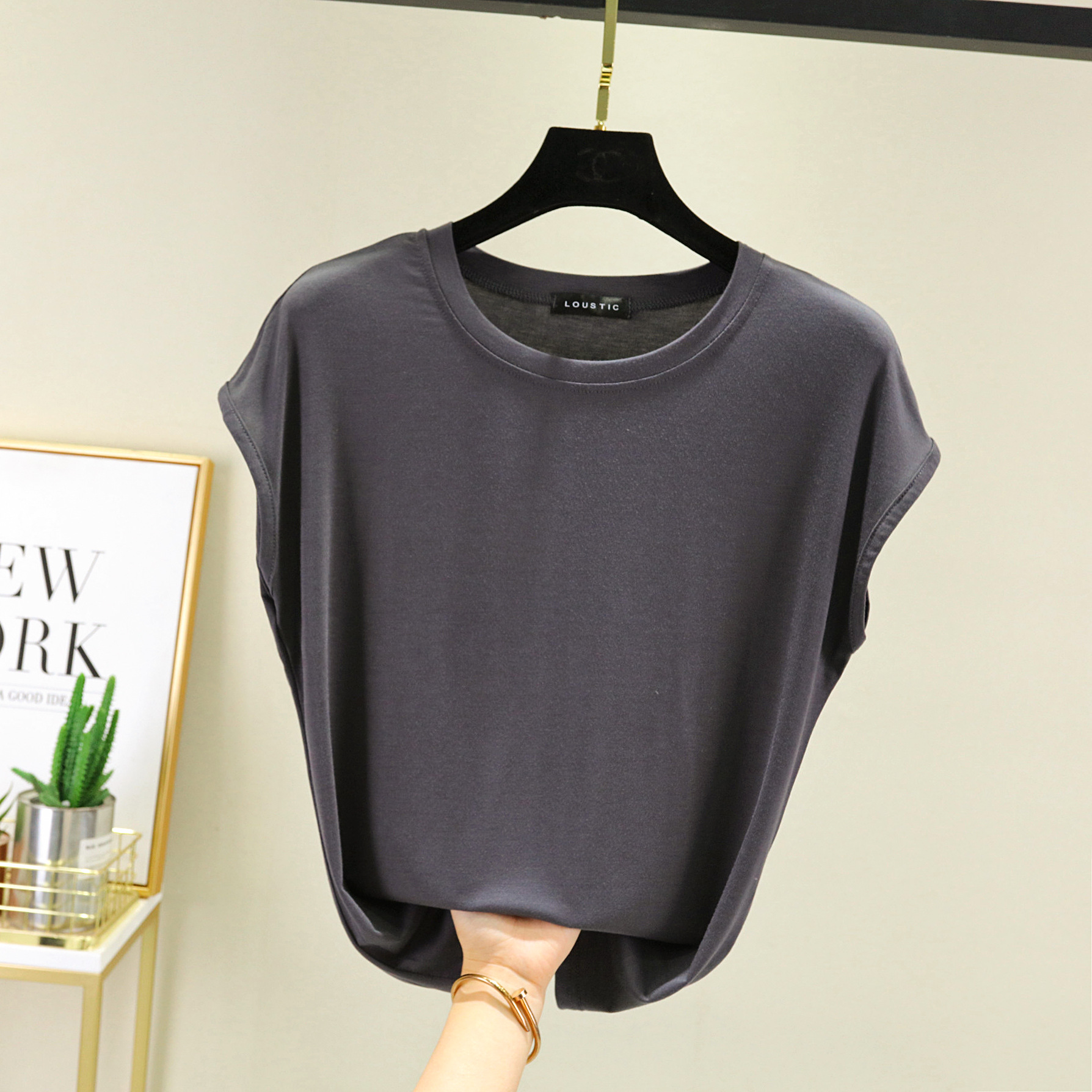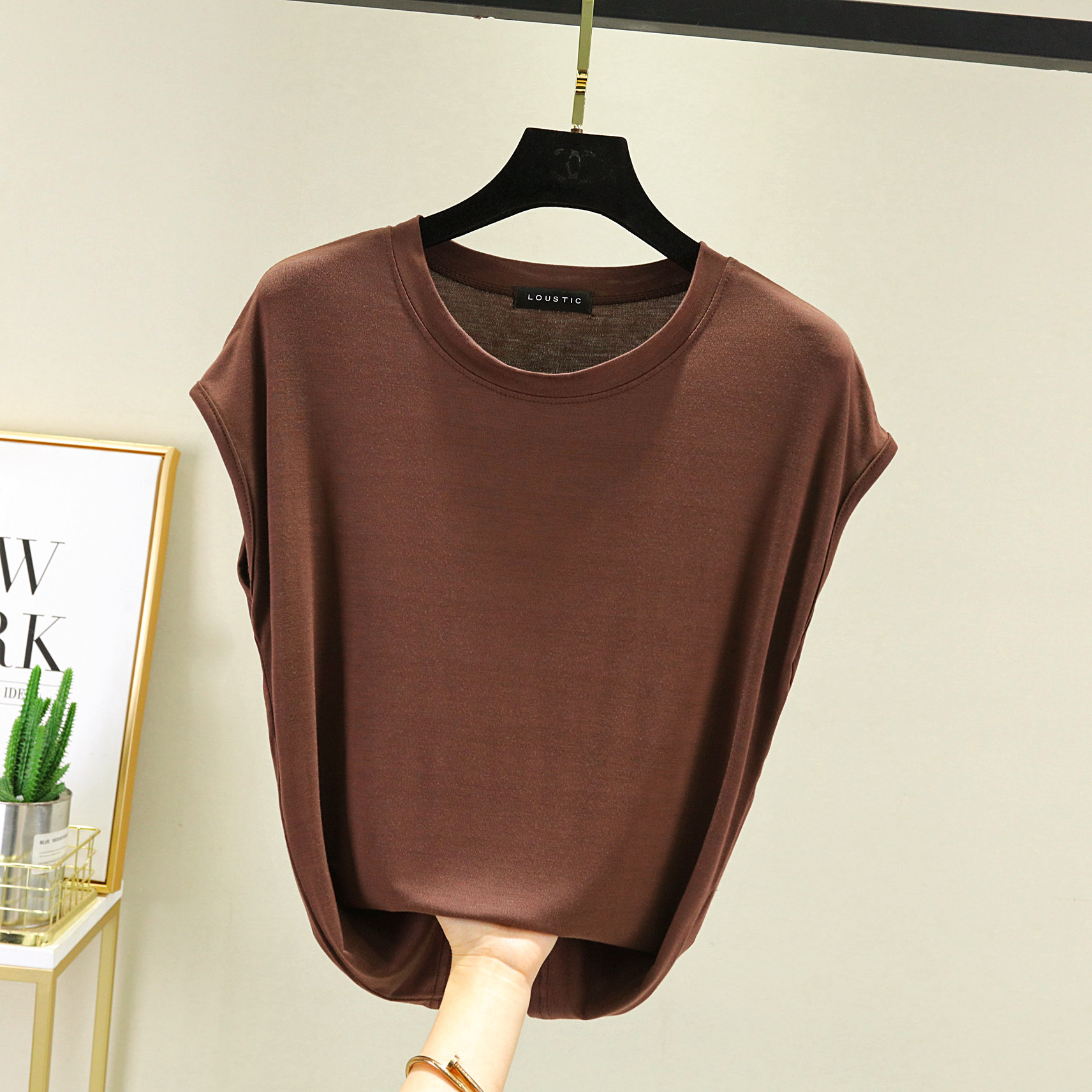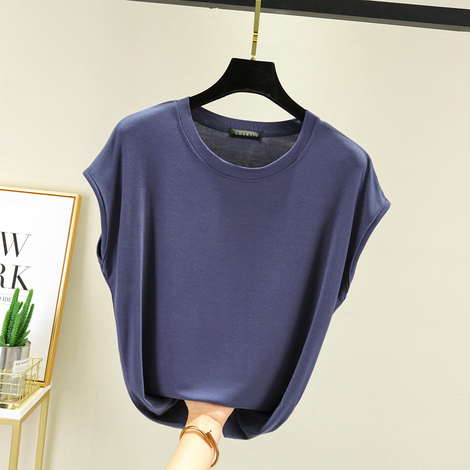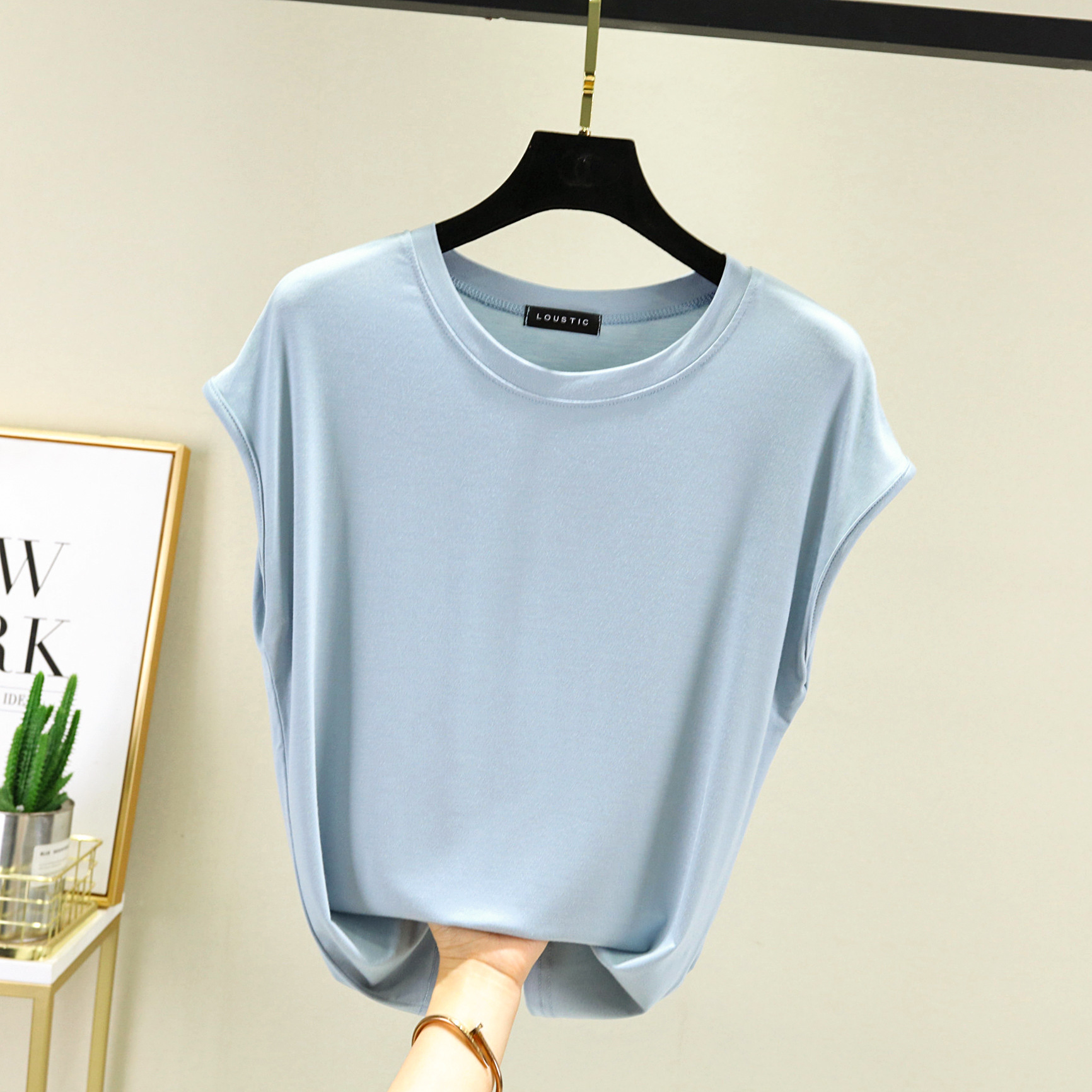 莫代尔无袖T恤女夏2021新款内搭打底圆领宽松大码纯色显瘦上衣