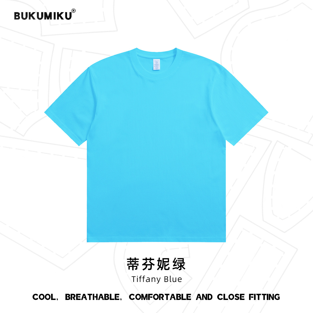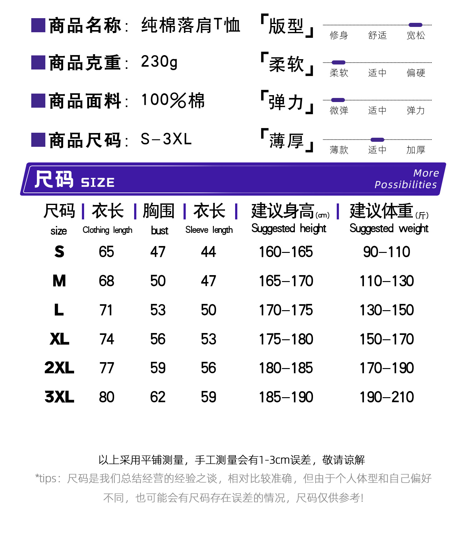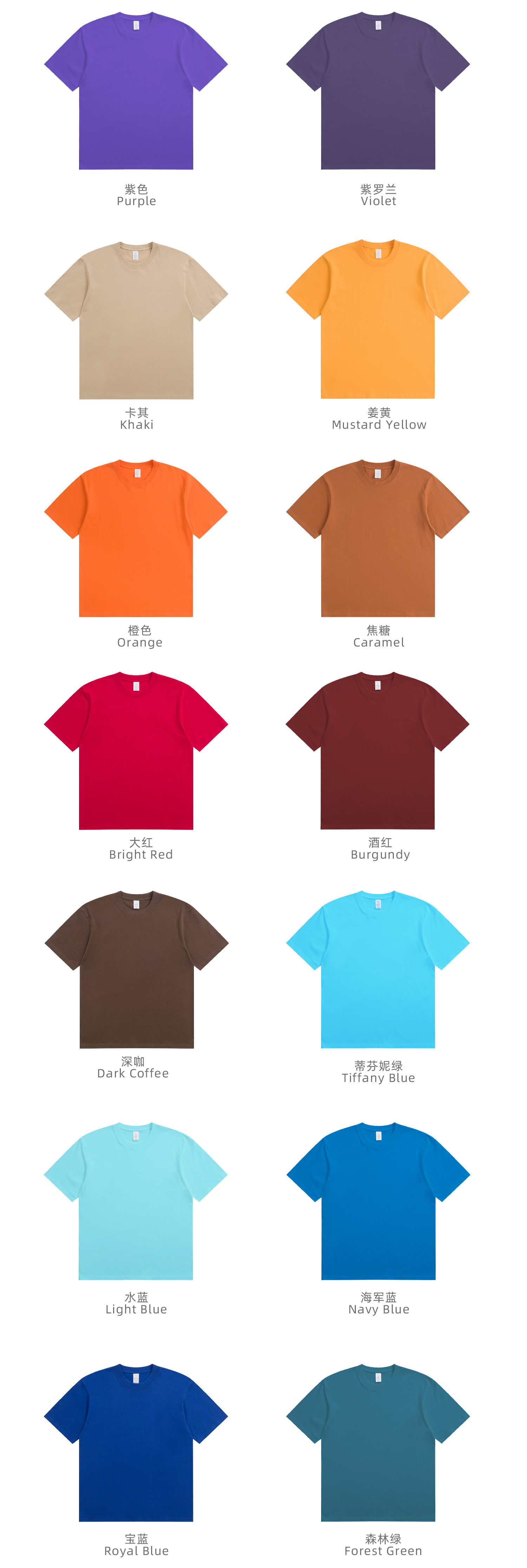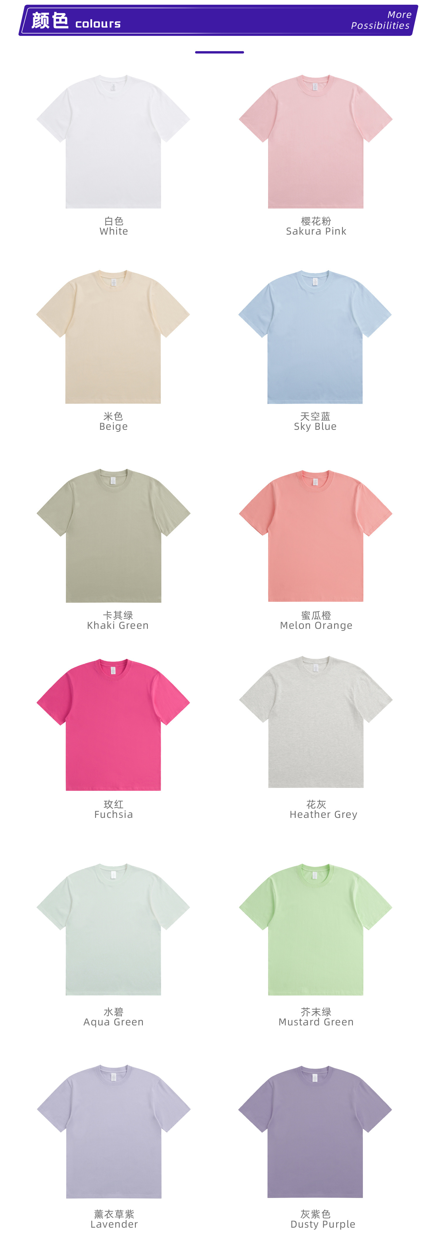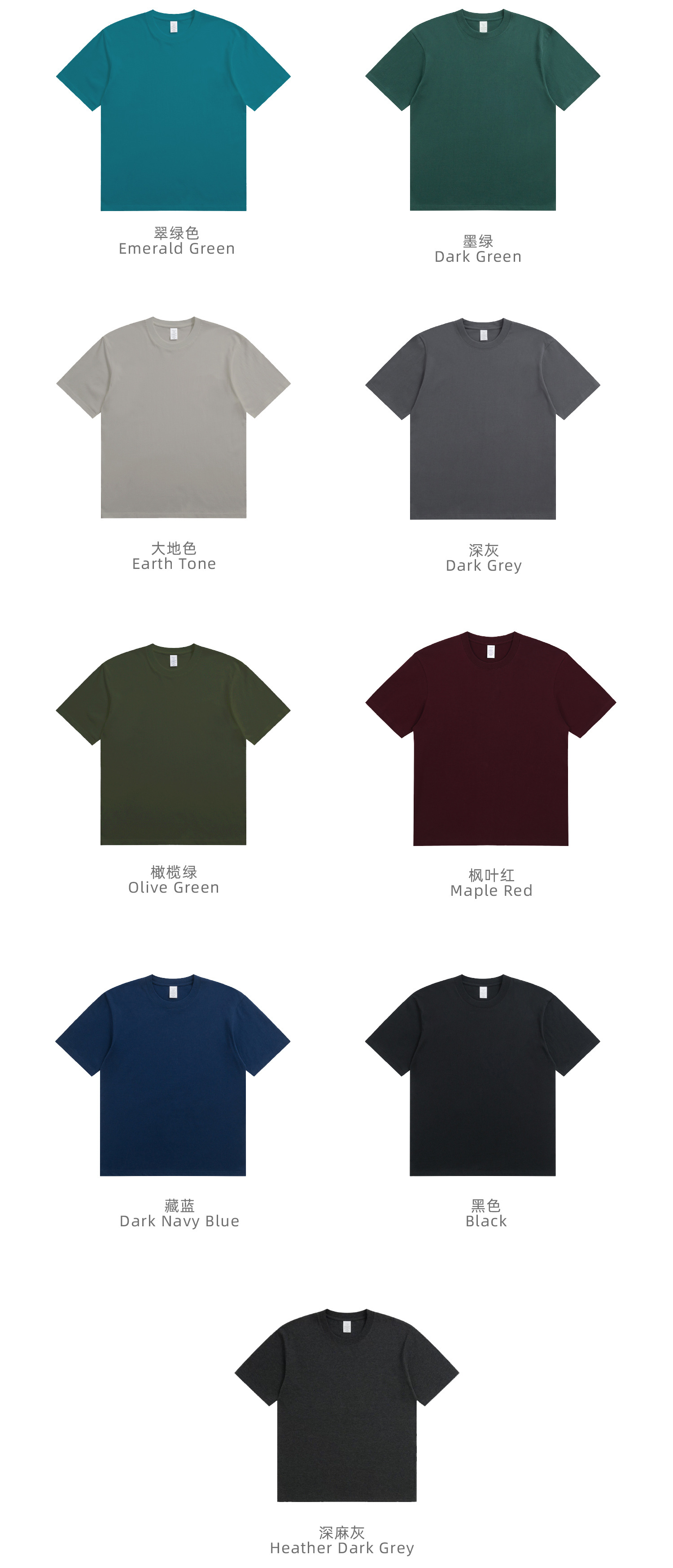 小落肩230克纯棉短袖男士t恤定 制纯色宽松印logo文化衫班服t恤