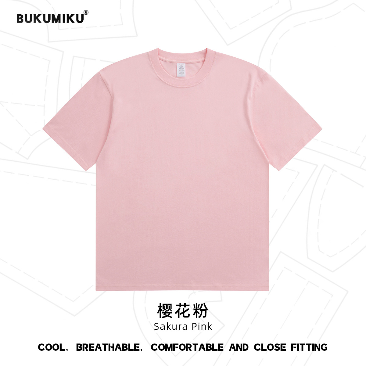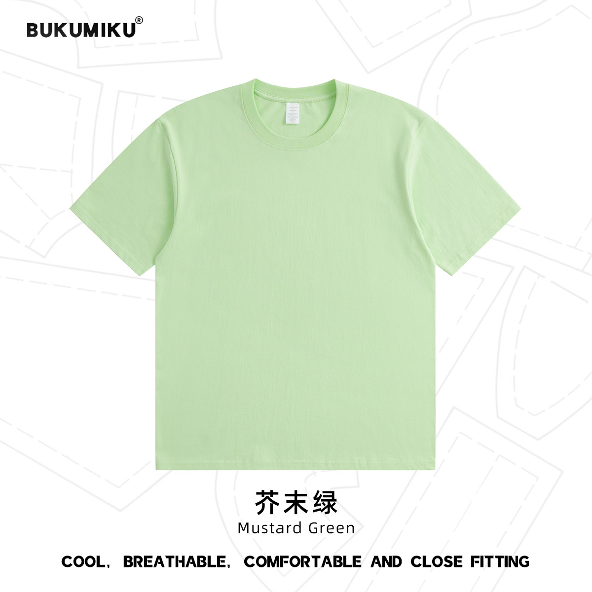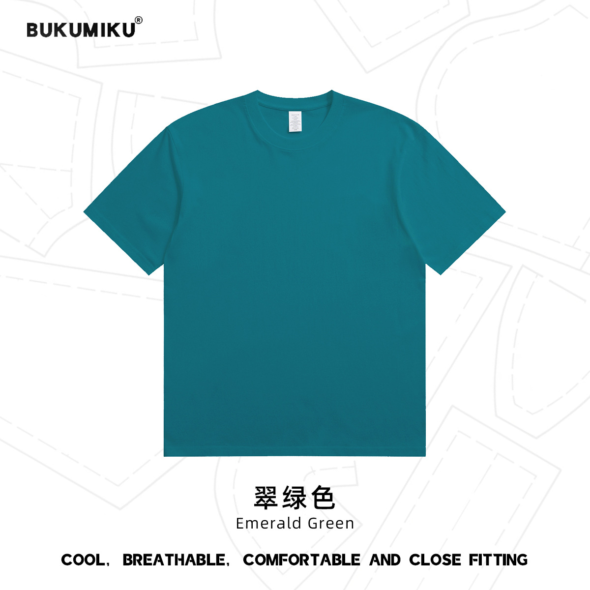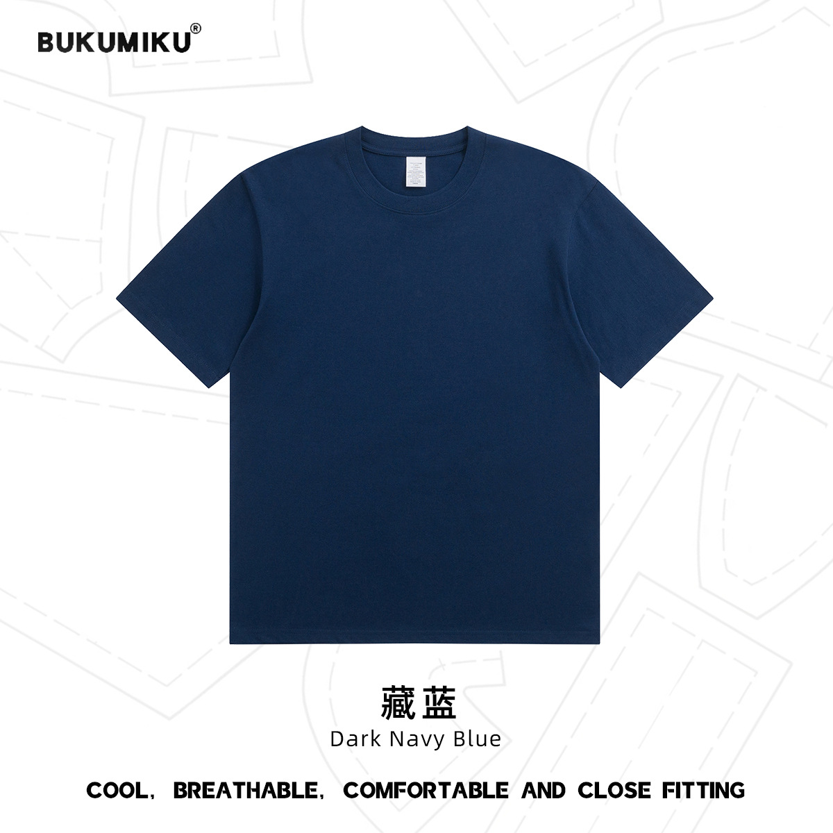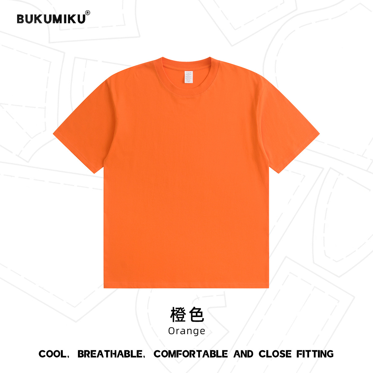 小落肩230克纯棉短袖男士t恤定 制纯色宽松印logo文化衫班服t恤