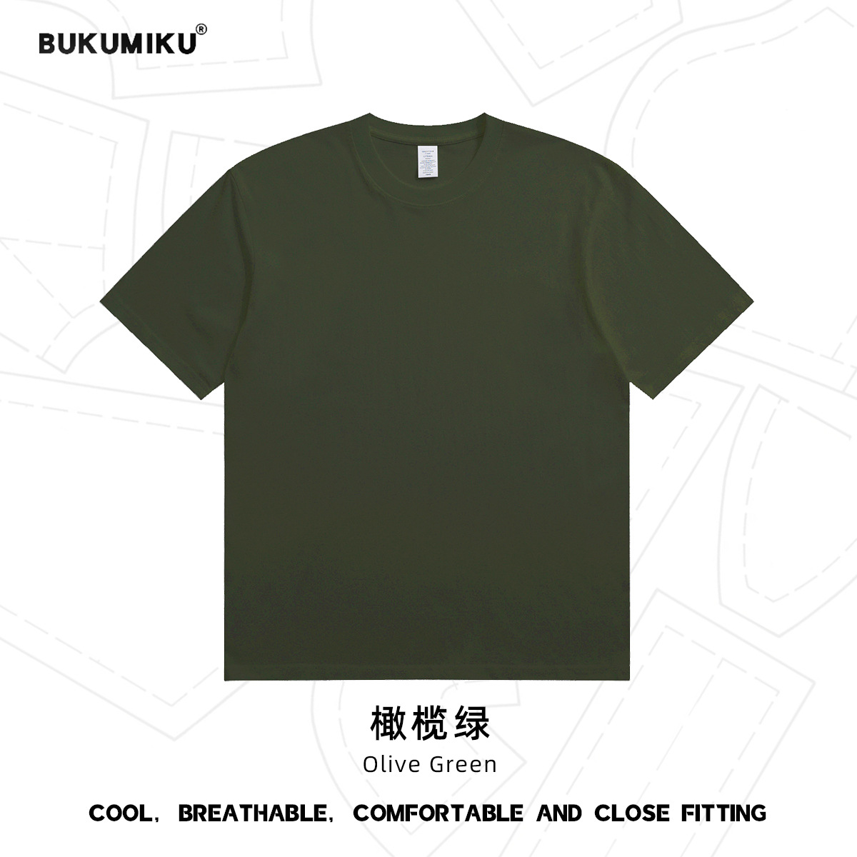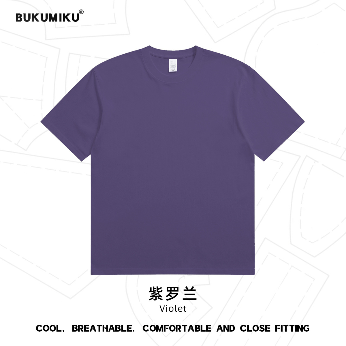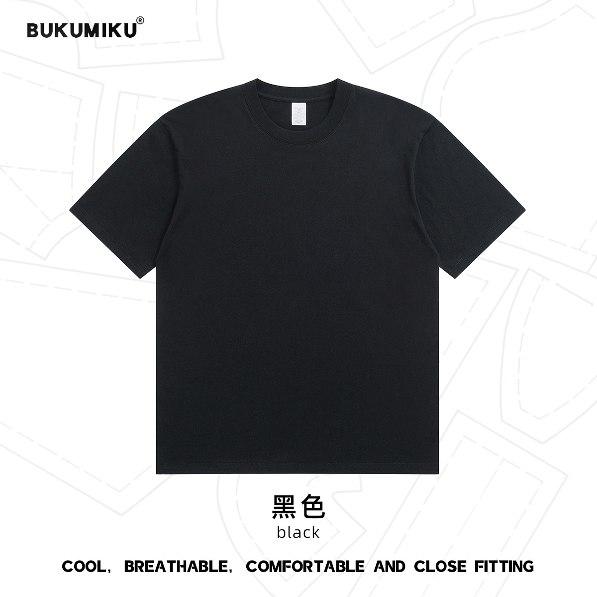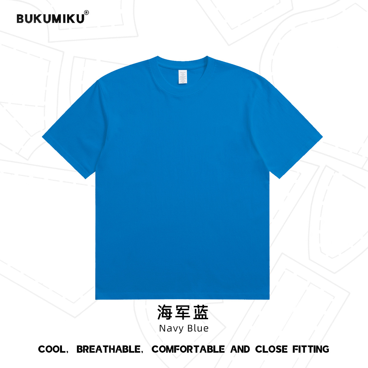 小落肩230克纯棉短袖男士t恤定 制纯色宽松印logo文化衫班服t恤
