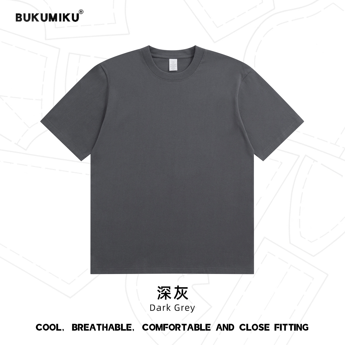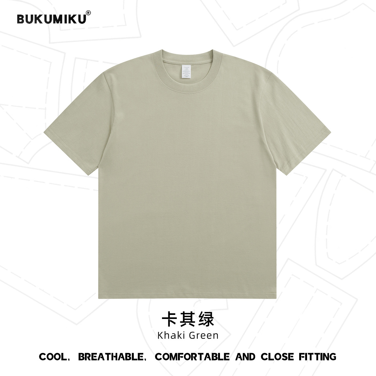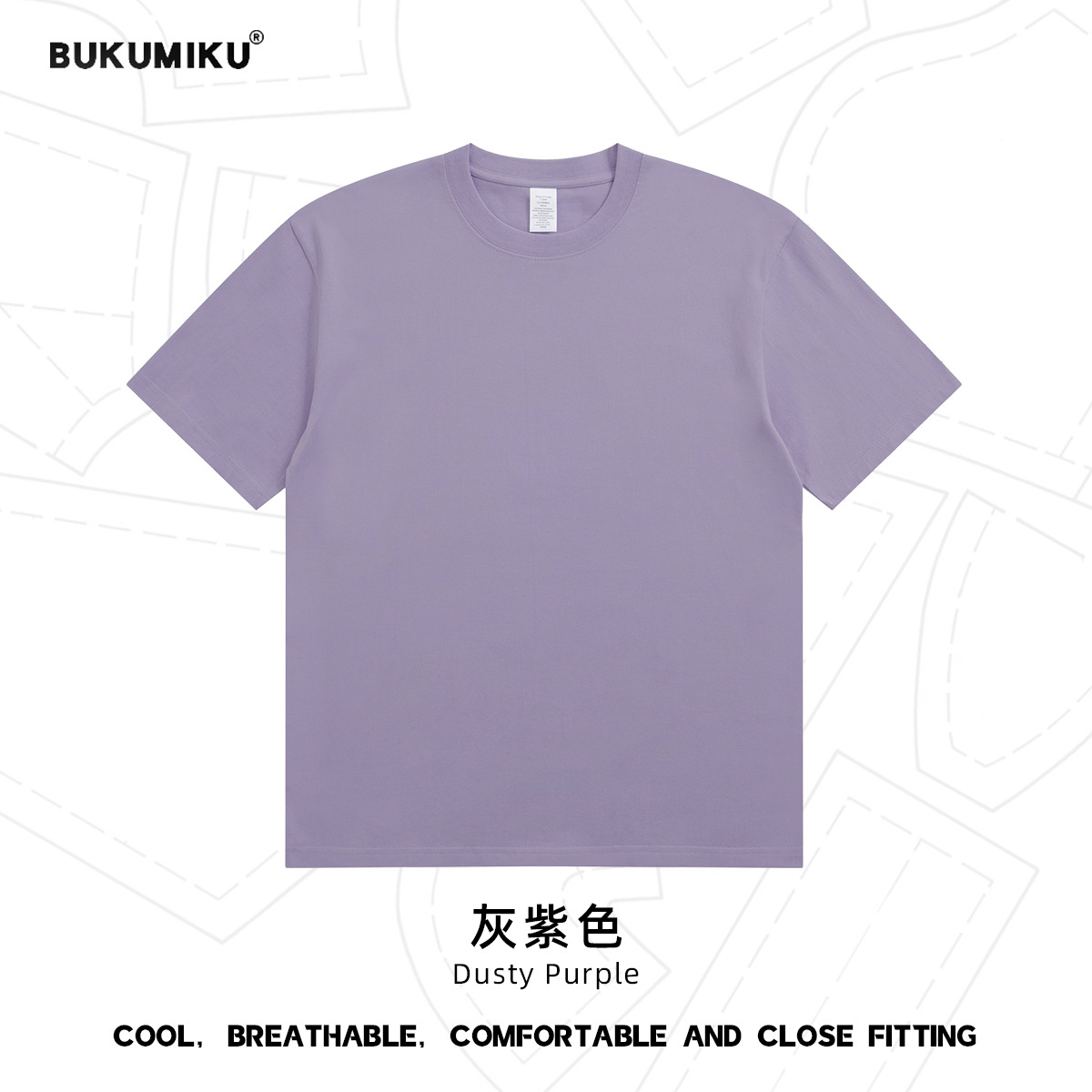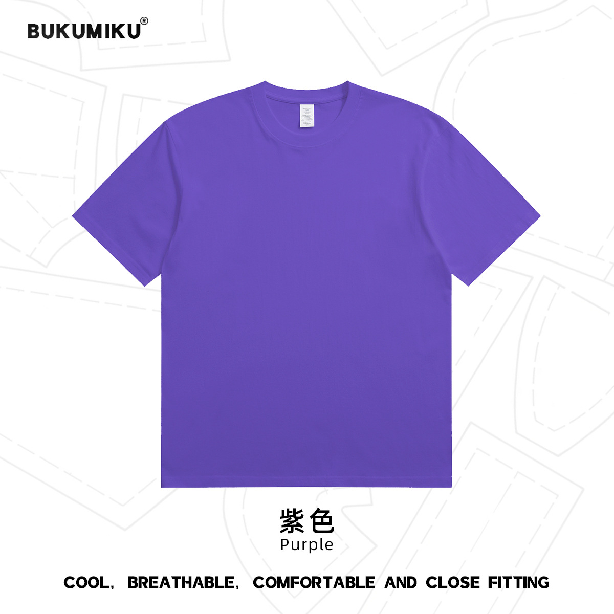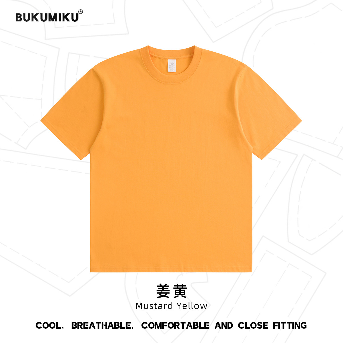 小落肩230克纯棉短袖男士t恤定 制纯色宽松印logo文化衫班服t恤