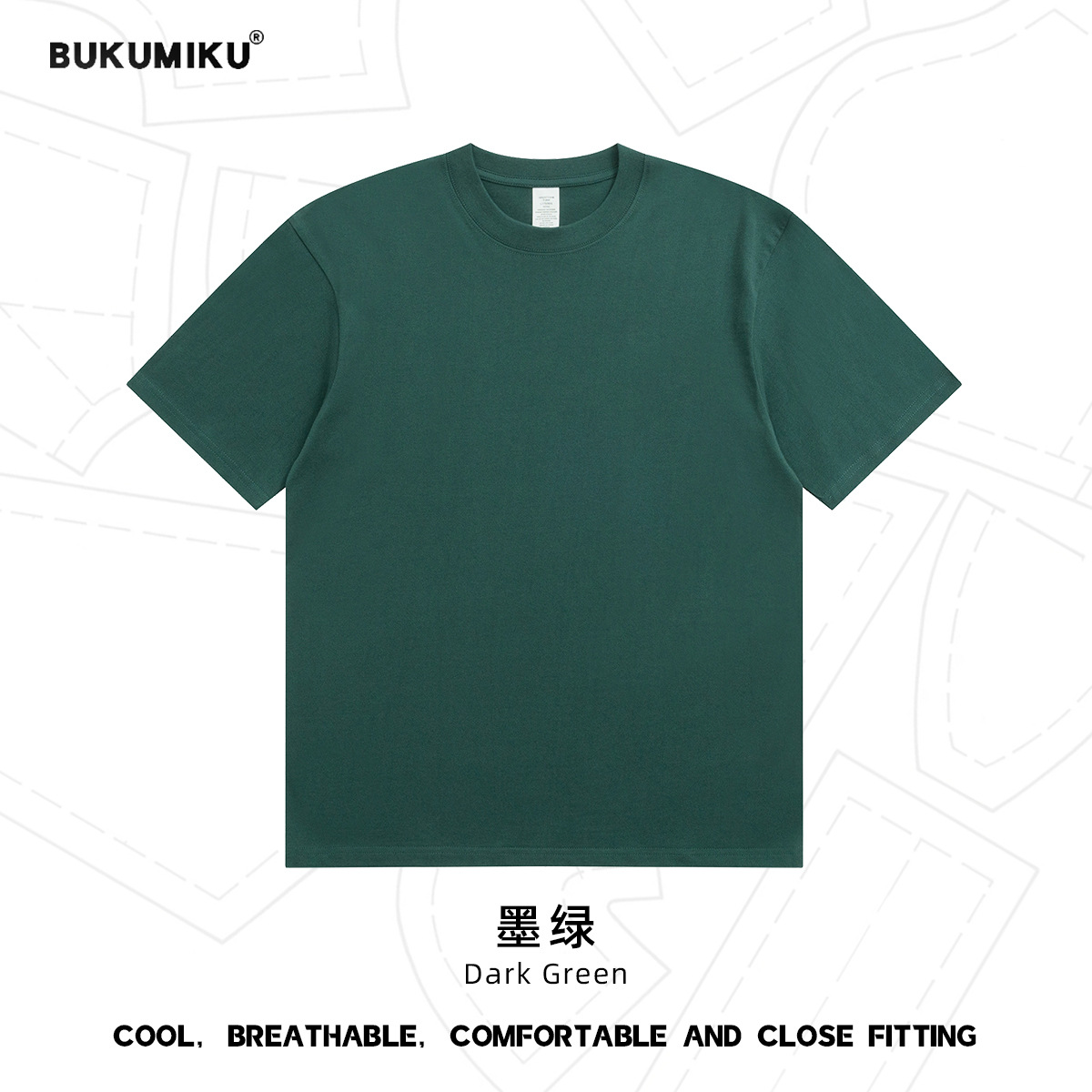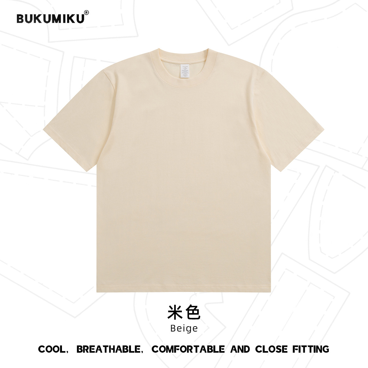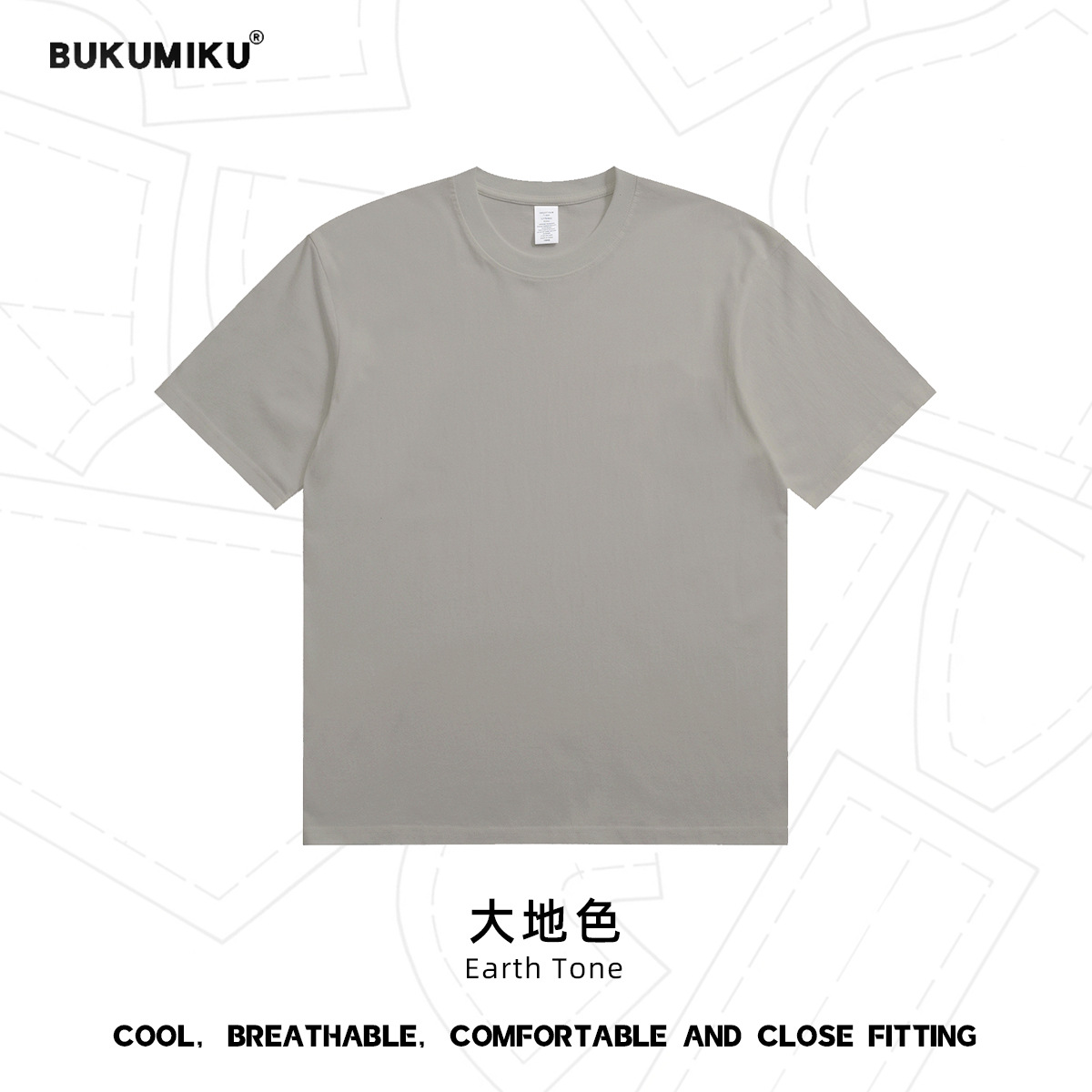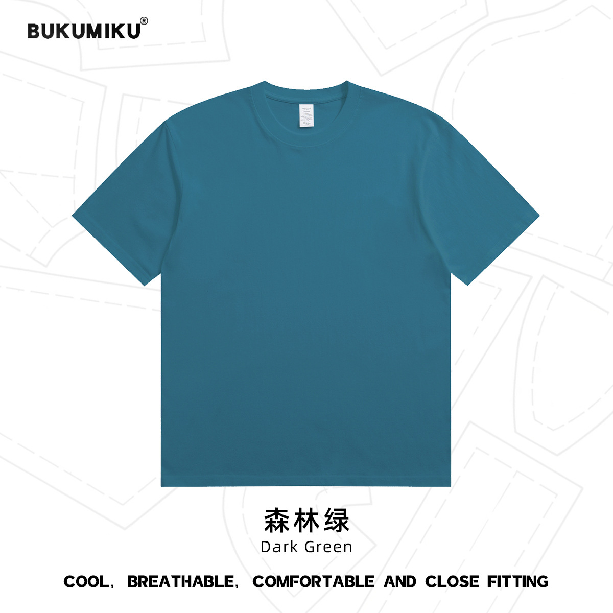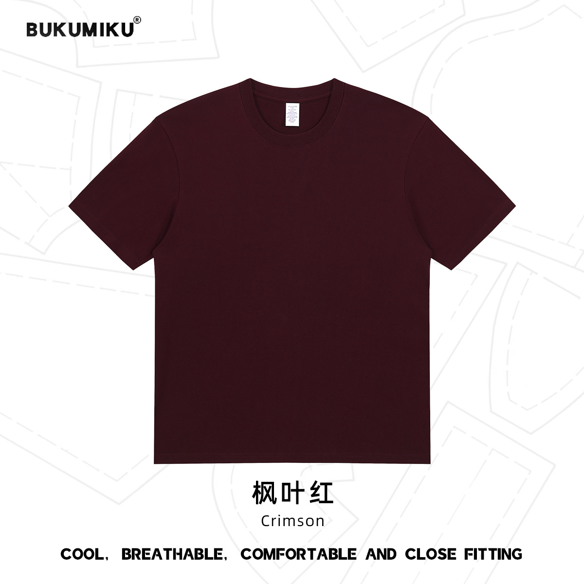 小落肩230克纯棉短袖男士t恤定 制纯色宽松印logo文化衫班服t恤