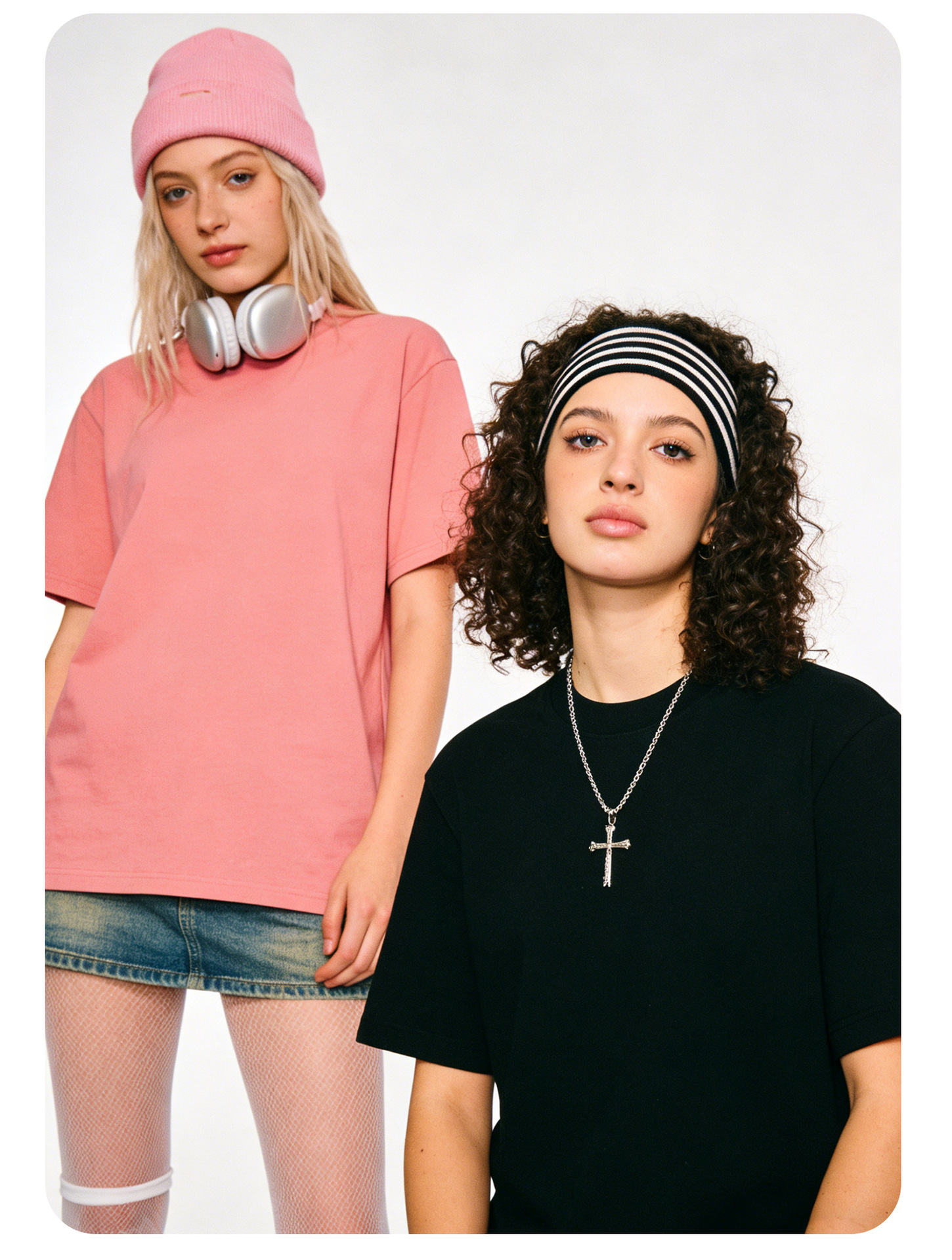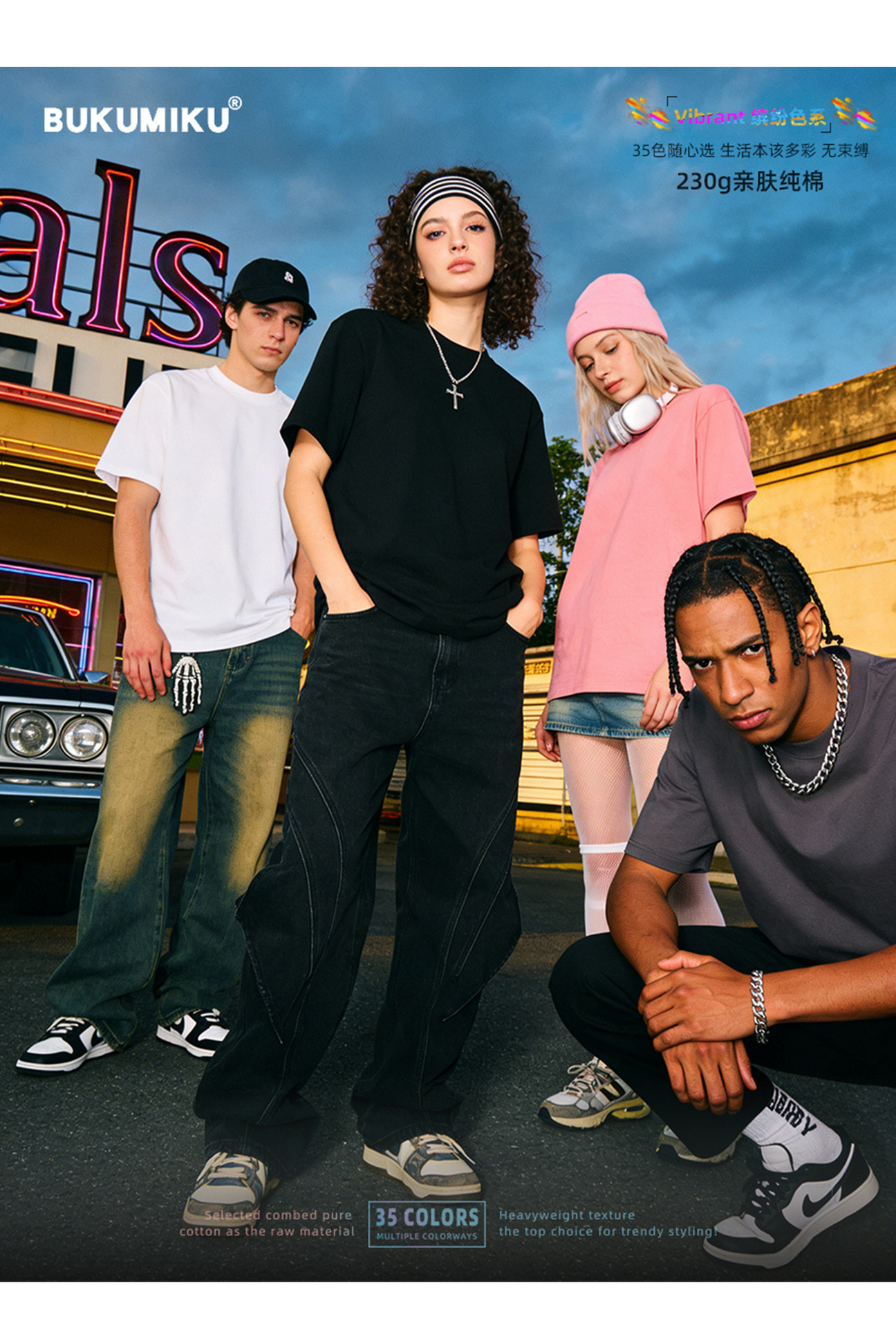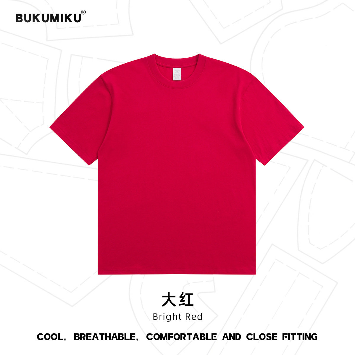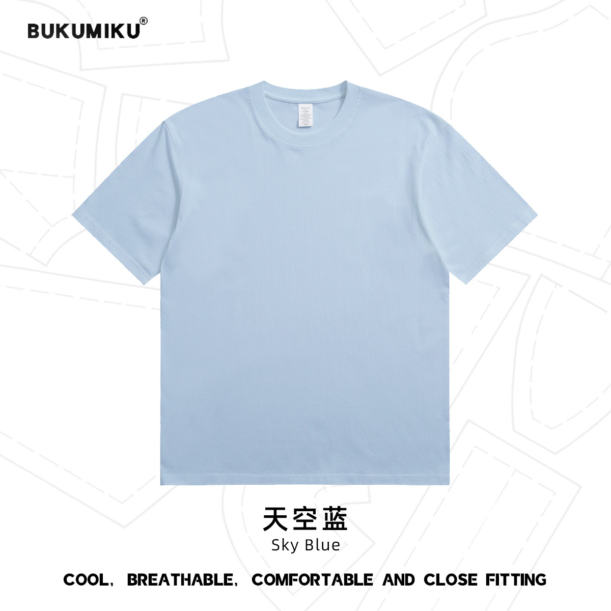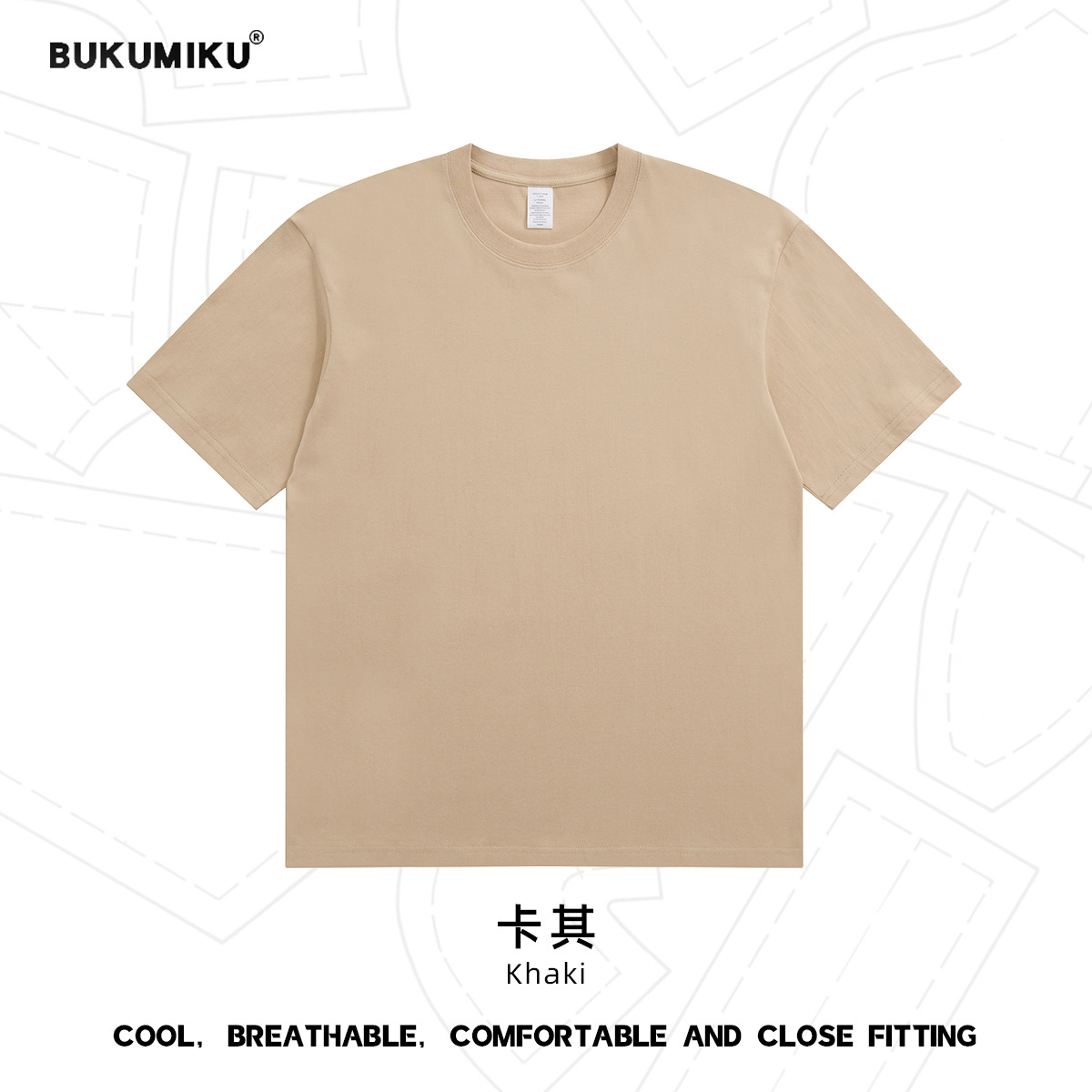 小落肩230克纯棉短袖男士t恤定 制纯色宽松印logo文化衫班服t恤