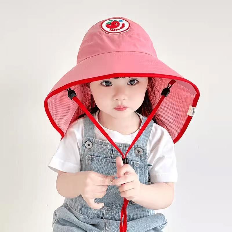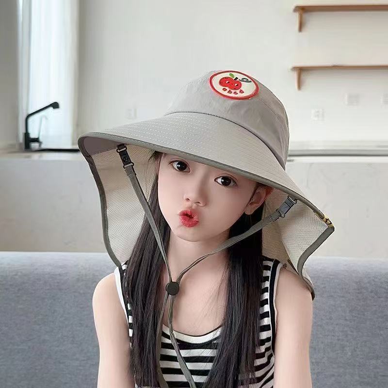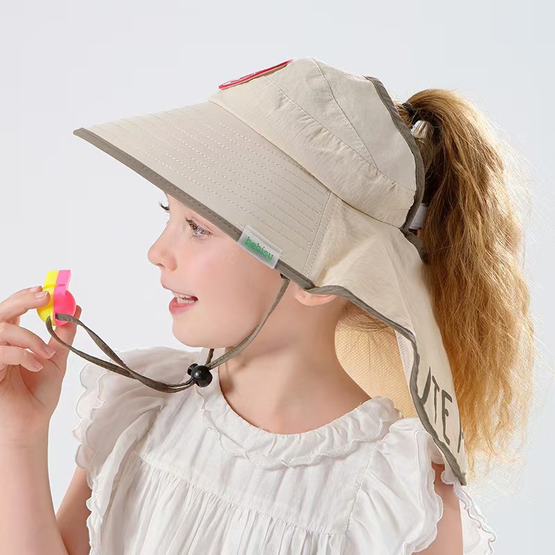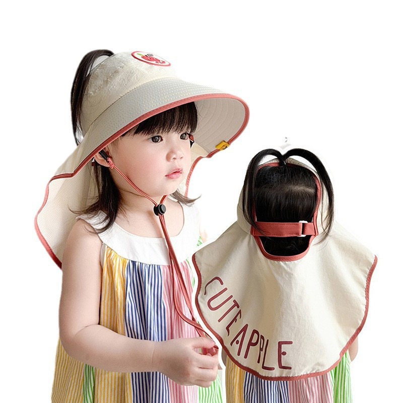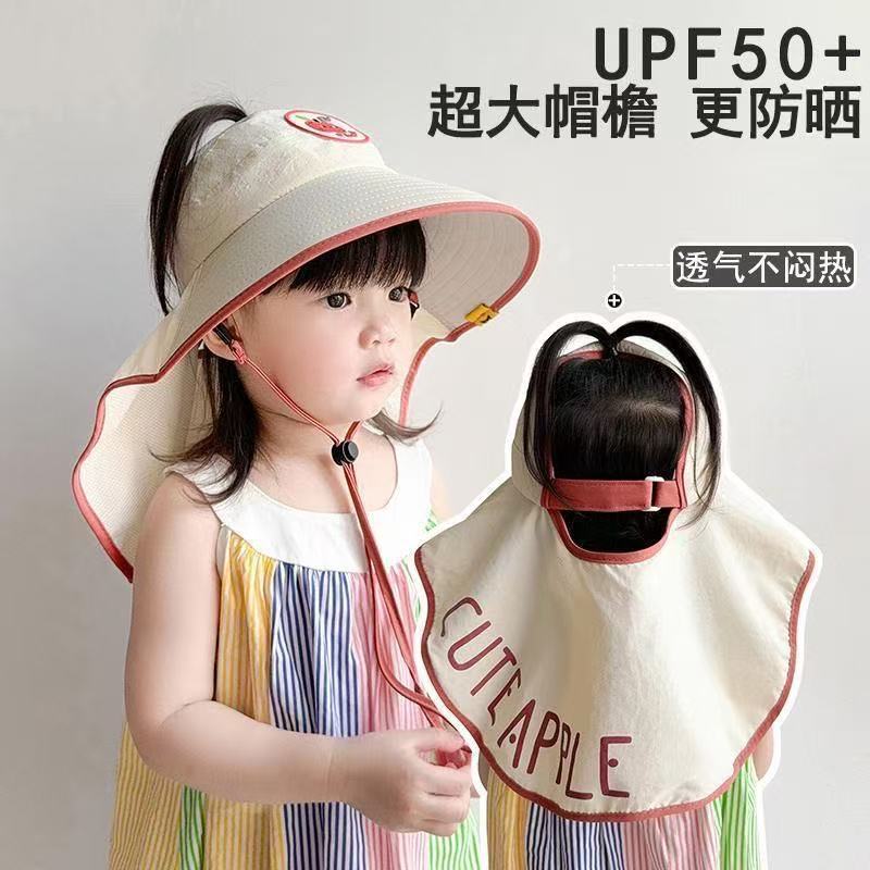 儿童防晒帽子大檐空顶帽披肩男女宝宝防紫外线护脖帽成人大檐防晒