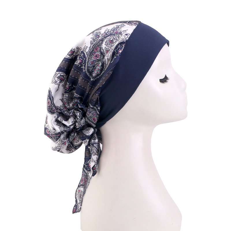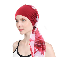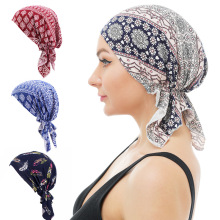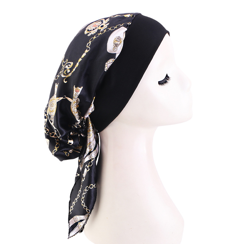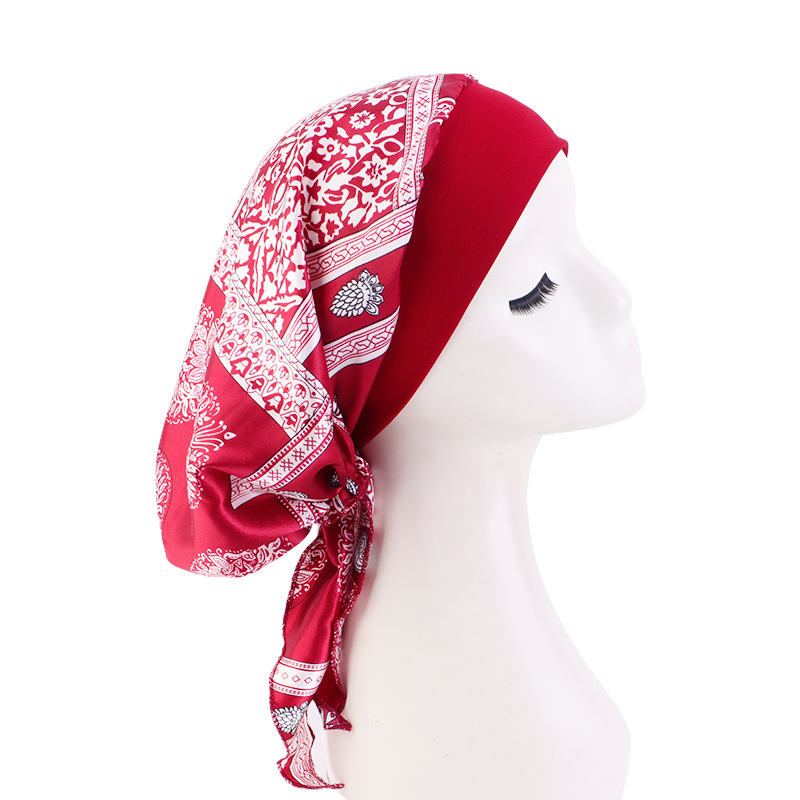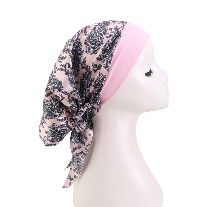 跨境专供色丁印花头巾帽 弹力宽边睡帽 包头帽 海盗帽 JDT-329E