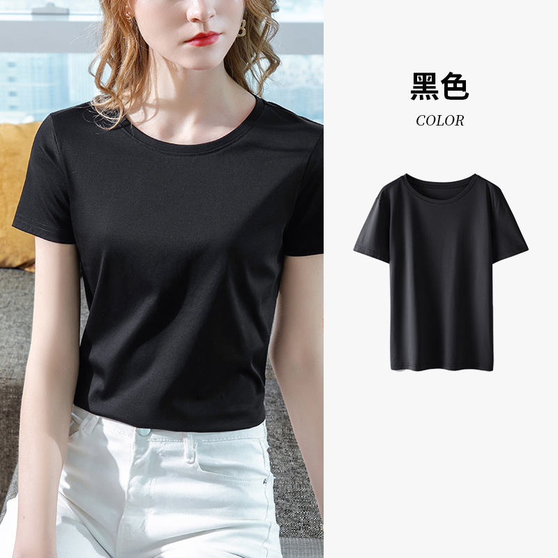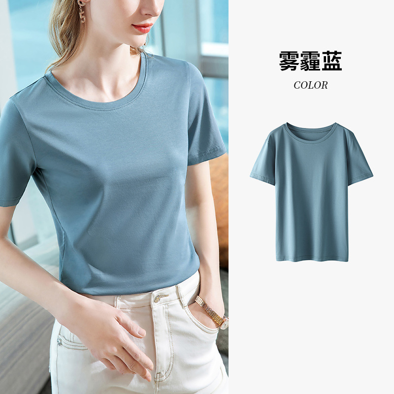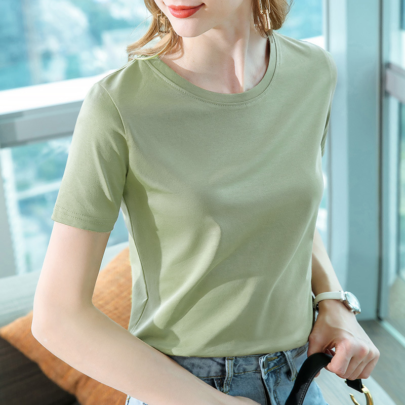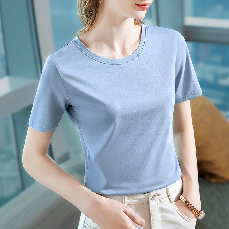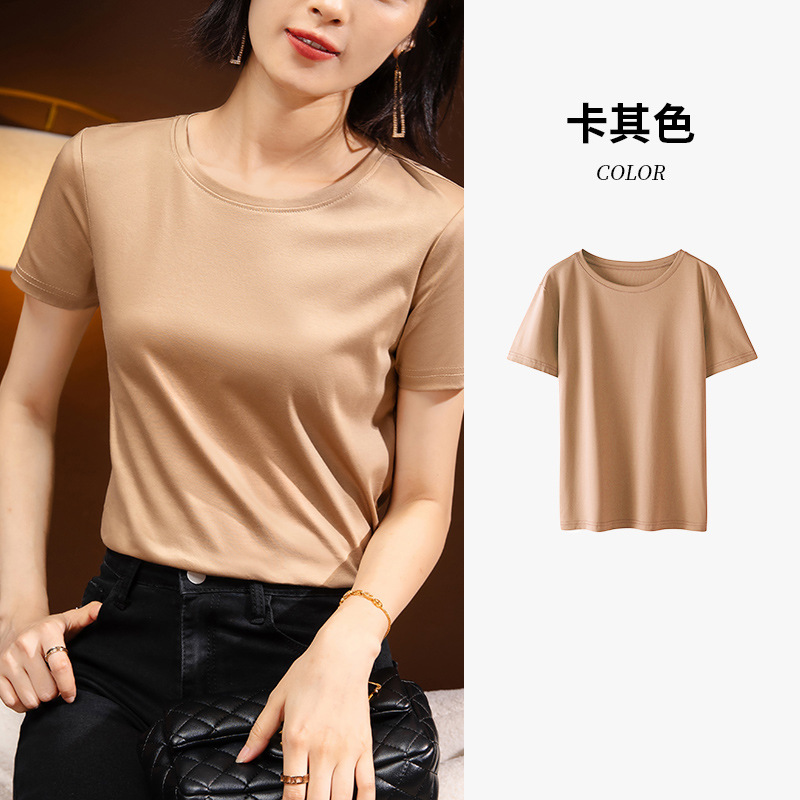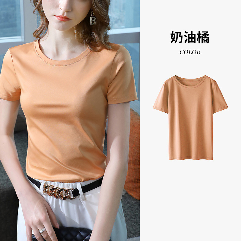 80支丝光棉正肩t恤女2025新款女装基础圆领纯棉体恤收腰短袖上衣