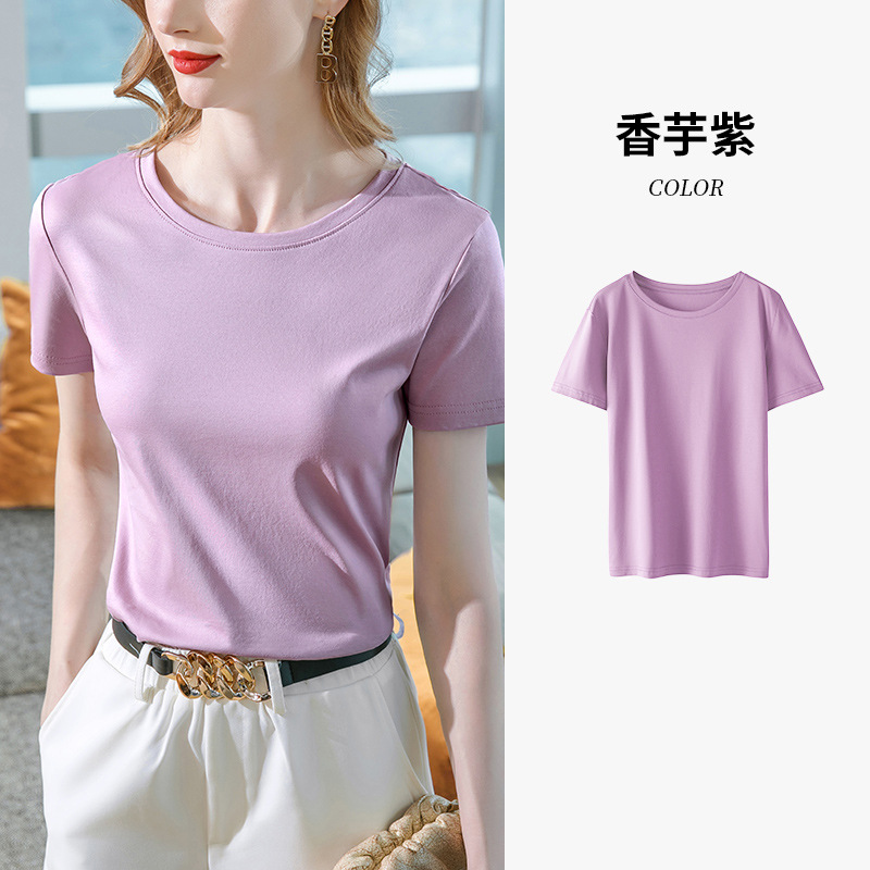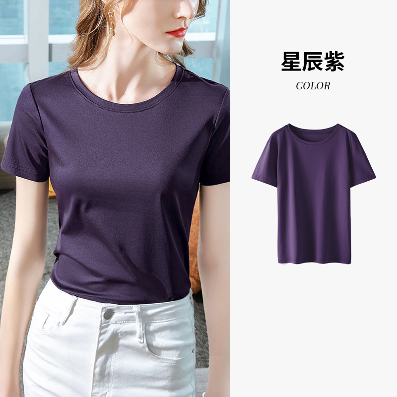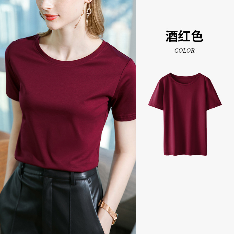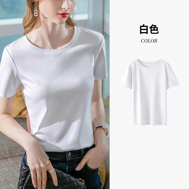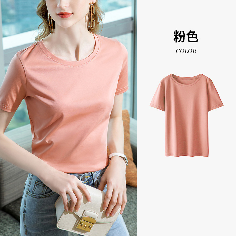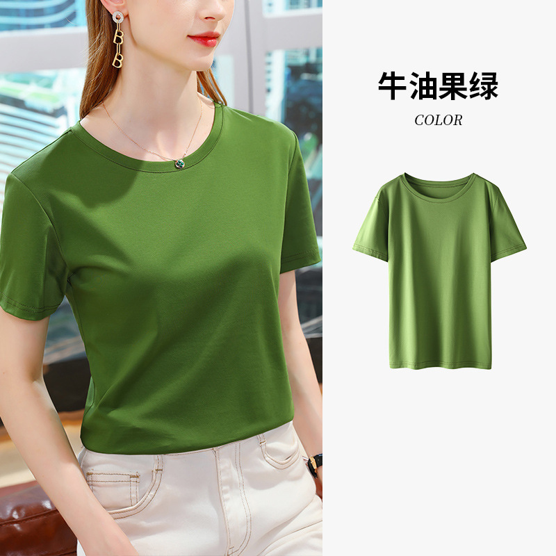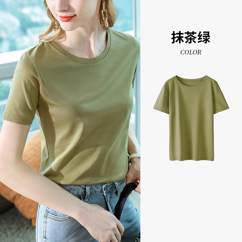 80支丝光棉正肩t恤女2025新款女装基础圆领纯棉体恤收腰短袖上衣