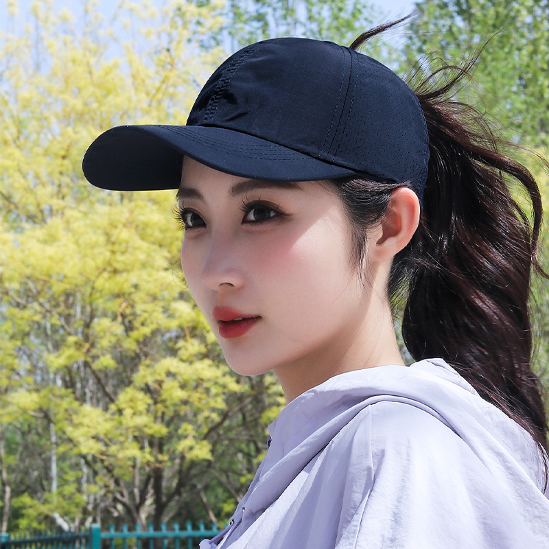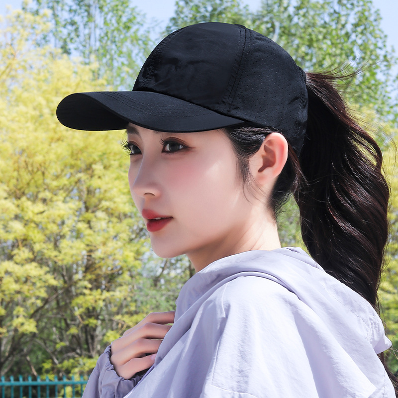 夏季女士轻薄速干透气扎高马尾鸭舌帽遮阳防晒马尾辫半空顶帽跨境