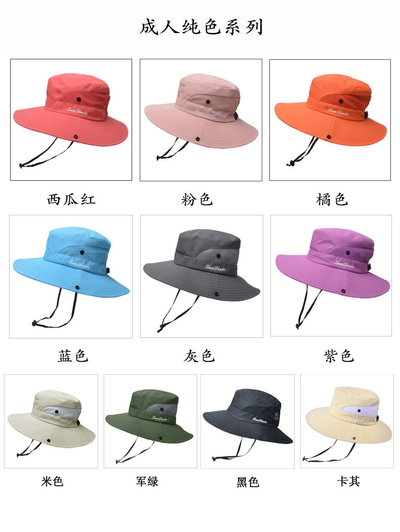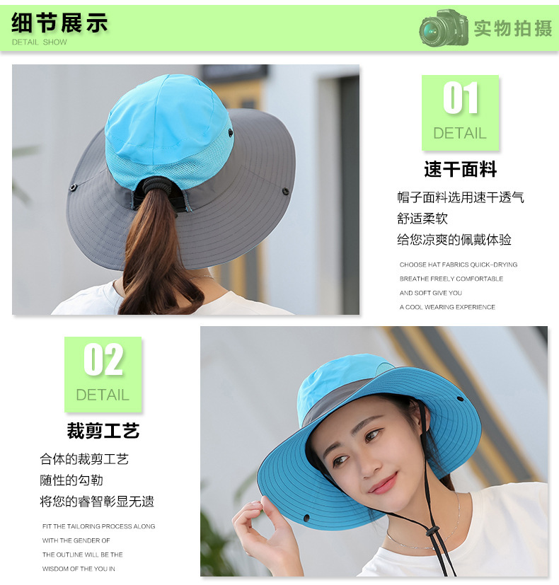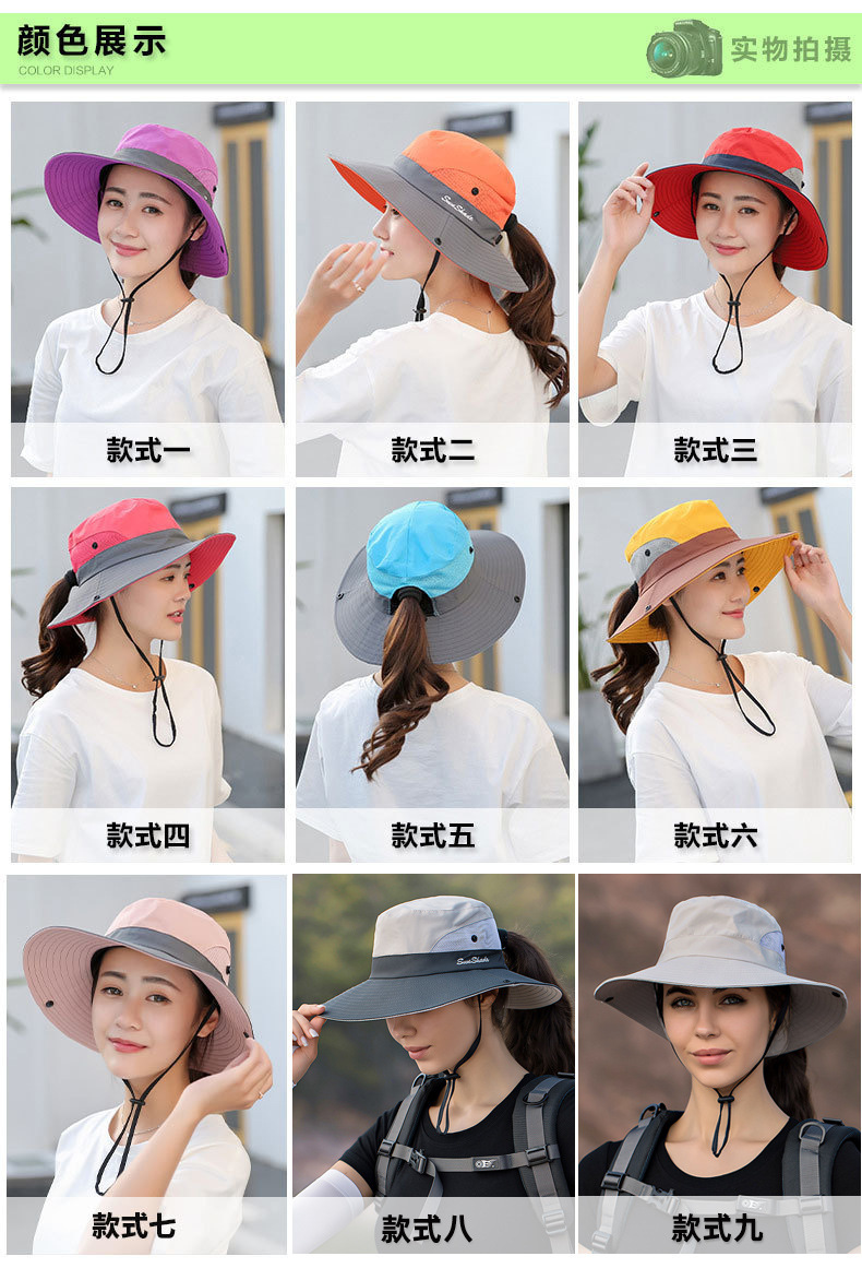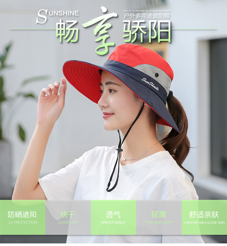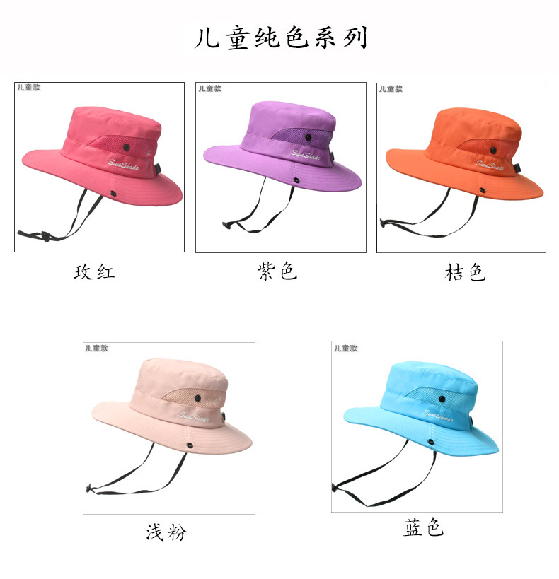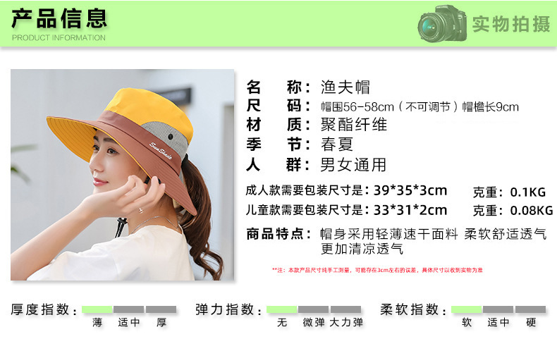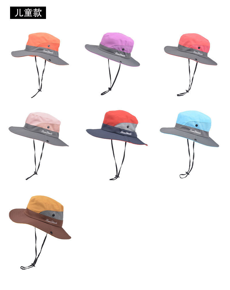 夏季户外遮阳防晒帽子女带马尾孔渔夫帽亲子款太阳帽透气登山帽