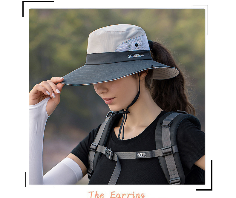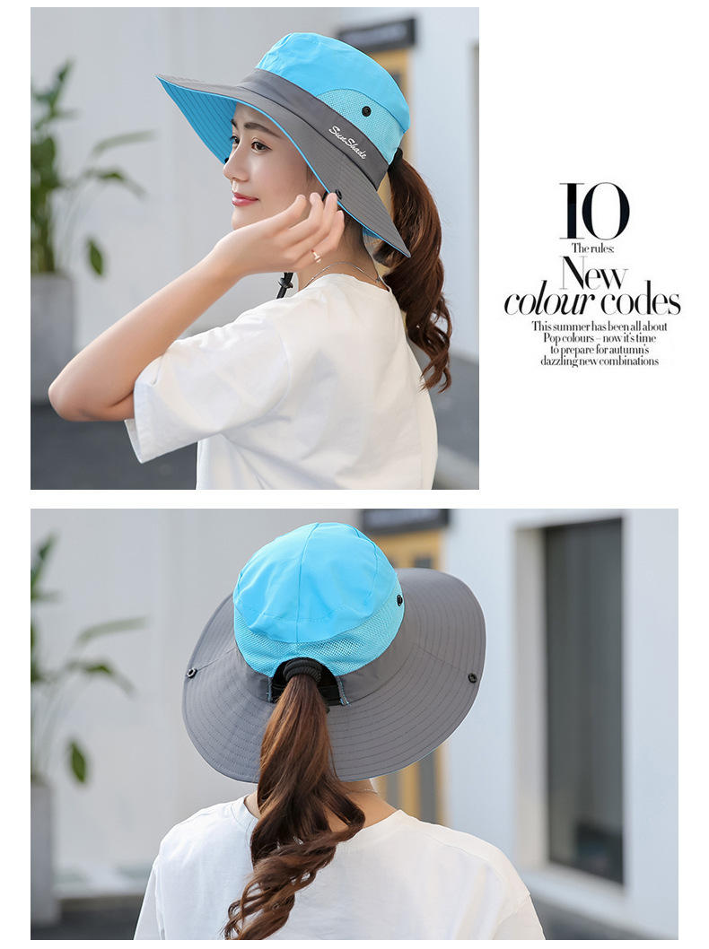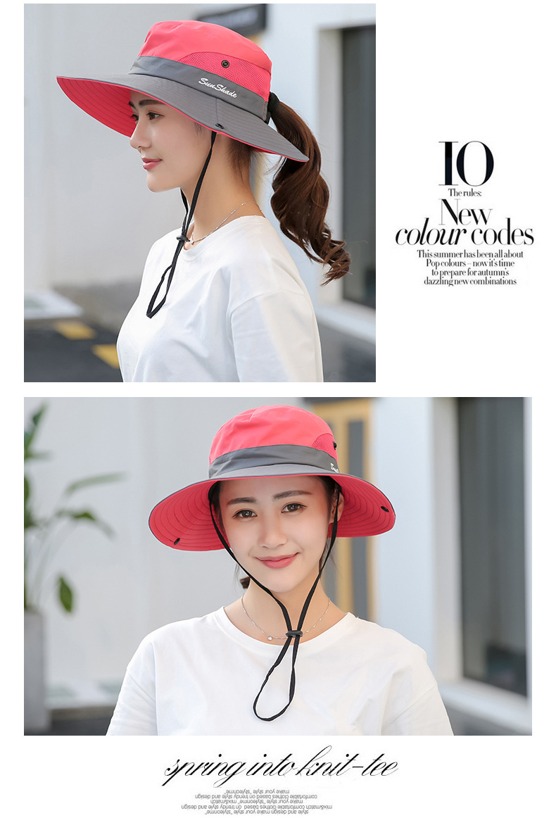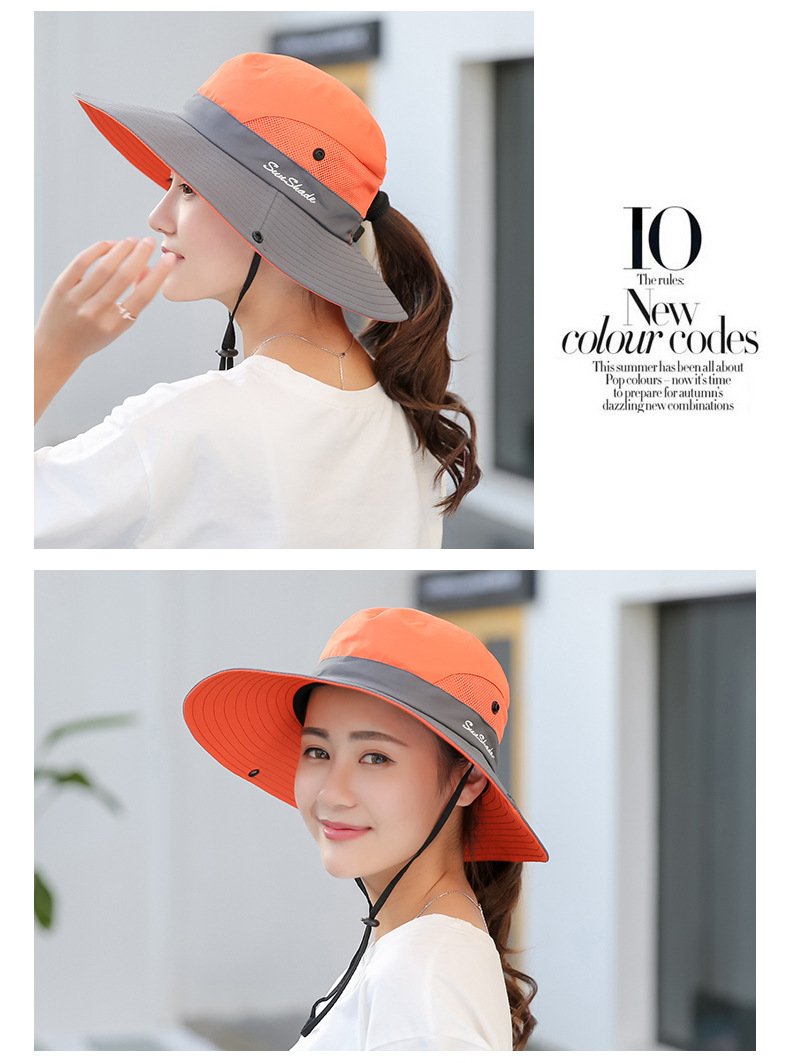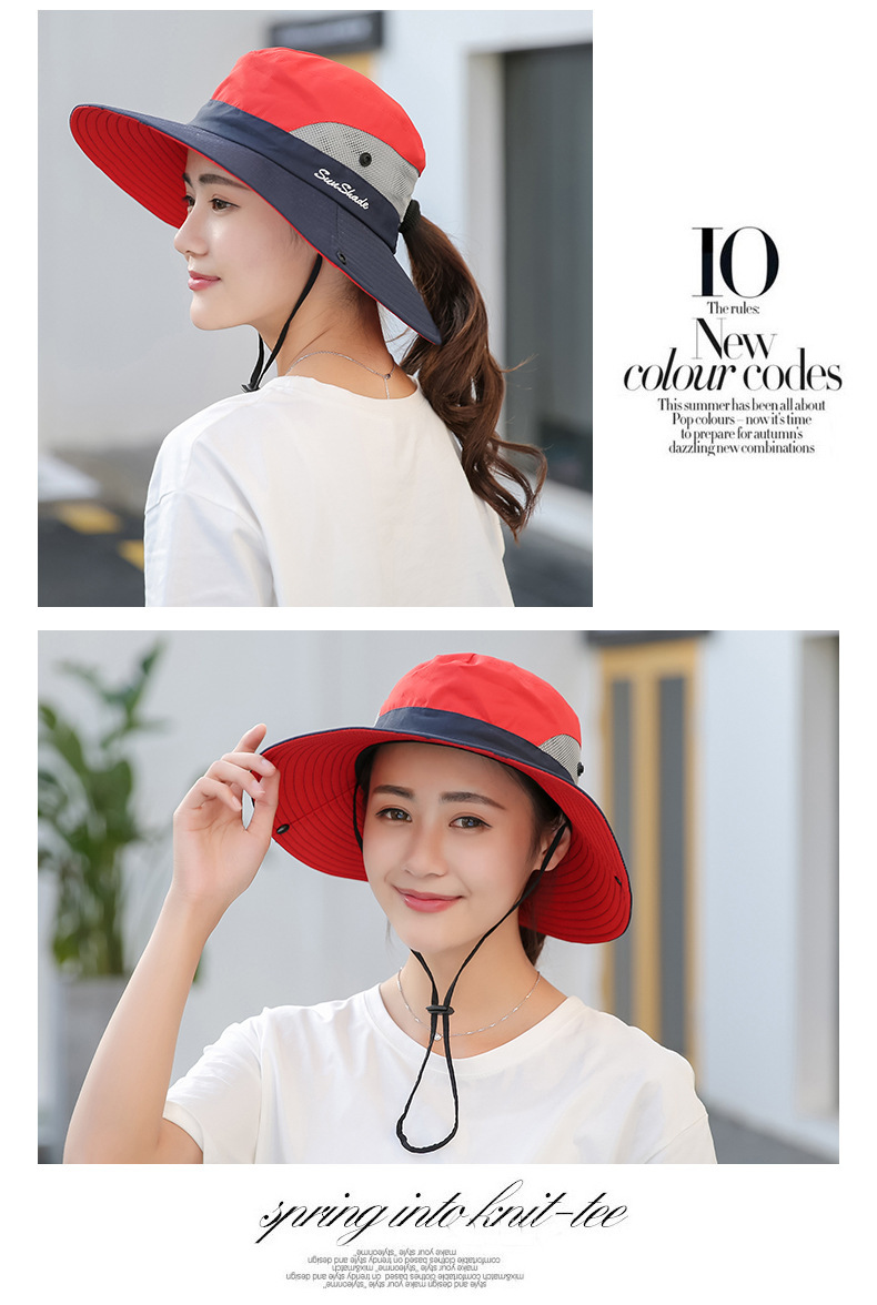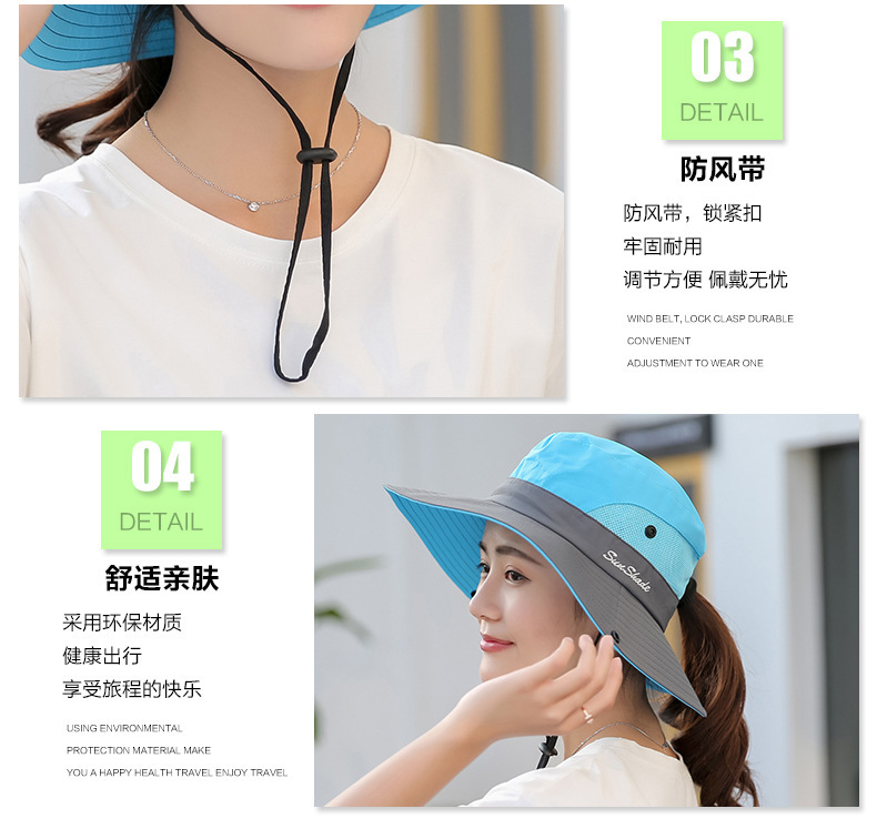 夏季户外遮阳防晒帽子女带马尾孔渔夫帽亲子款太阳帽透气登山帽