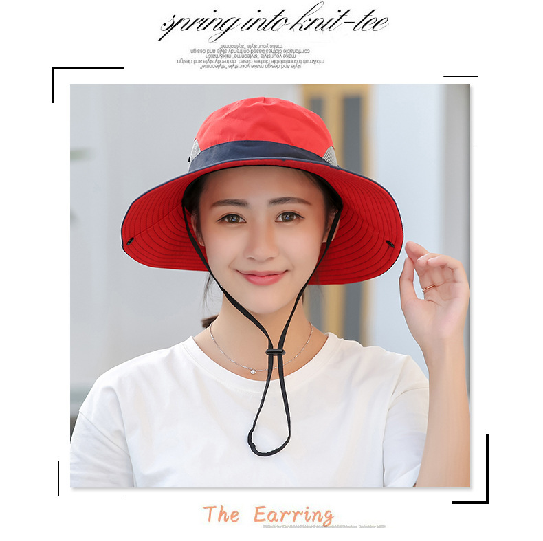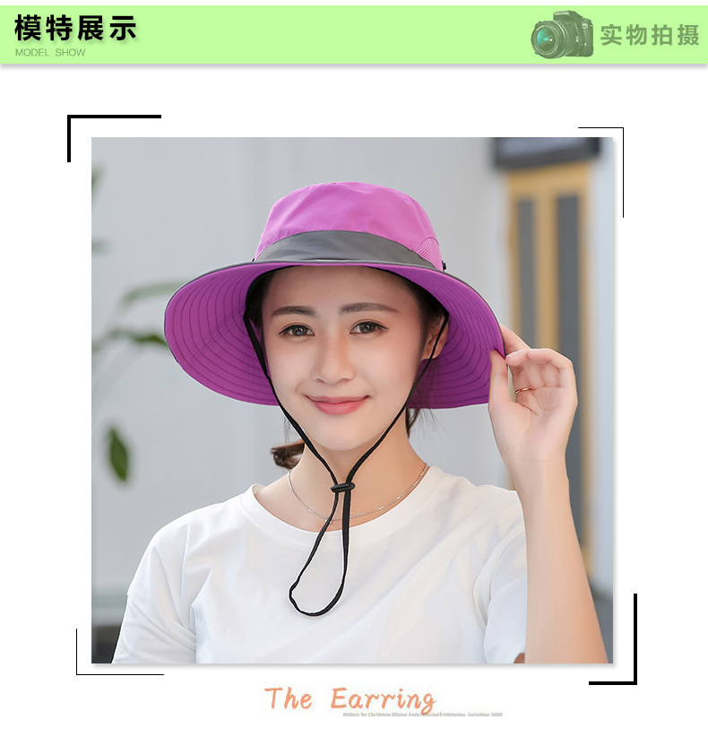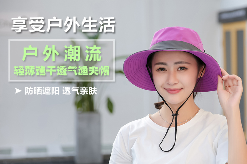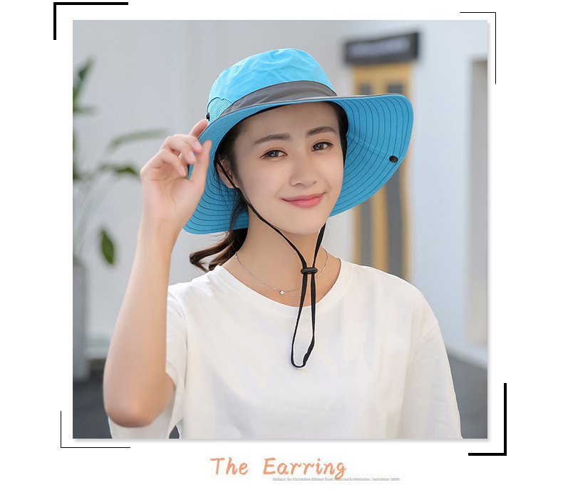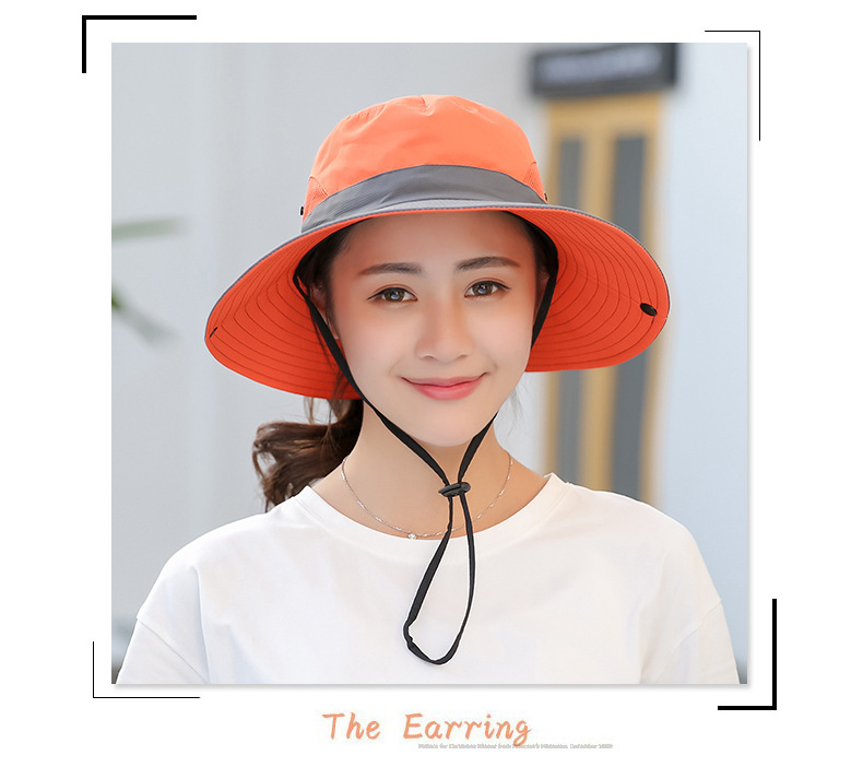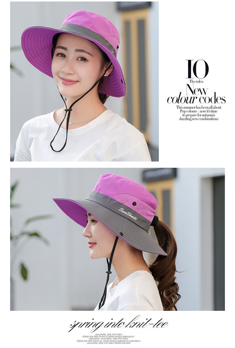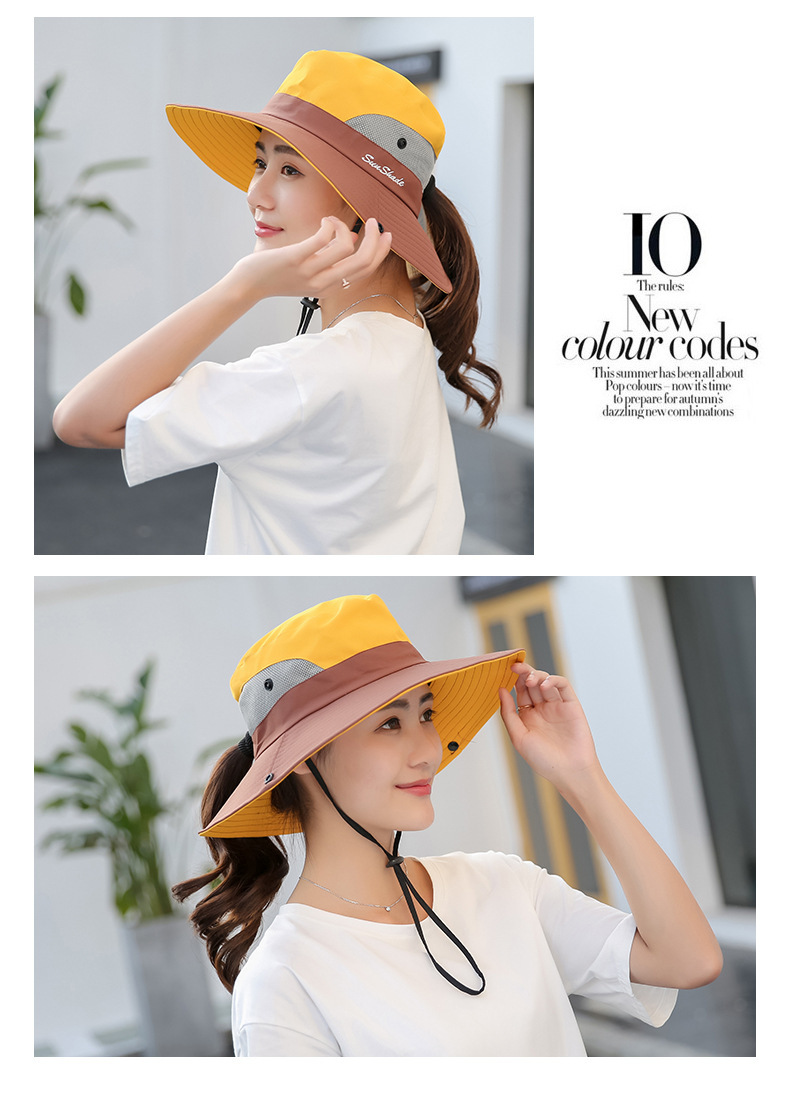 夏季户外遮阳防晒帽子女带马尾孔渔夫帽亲子款太阳帽透气登山帽