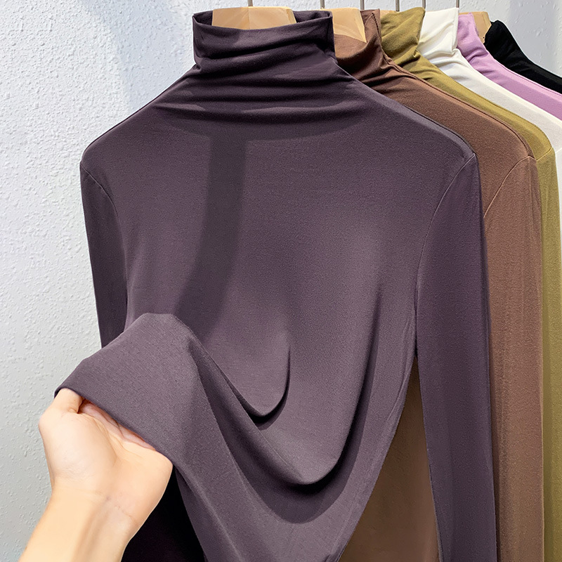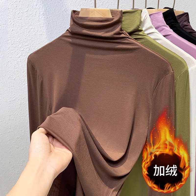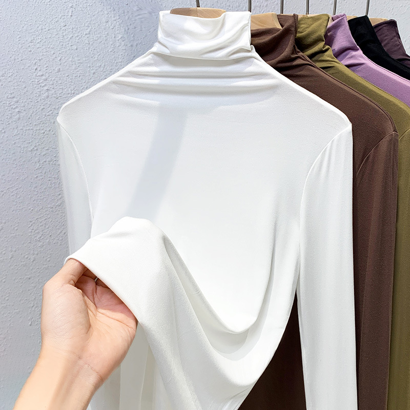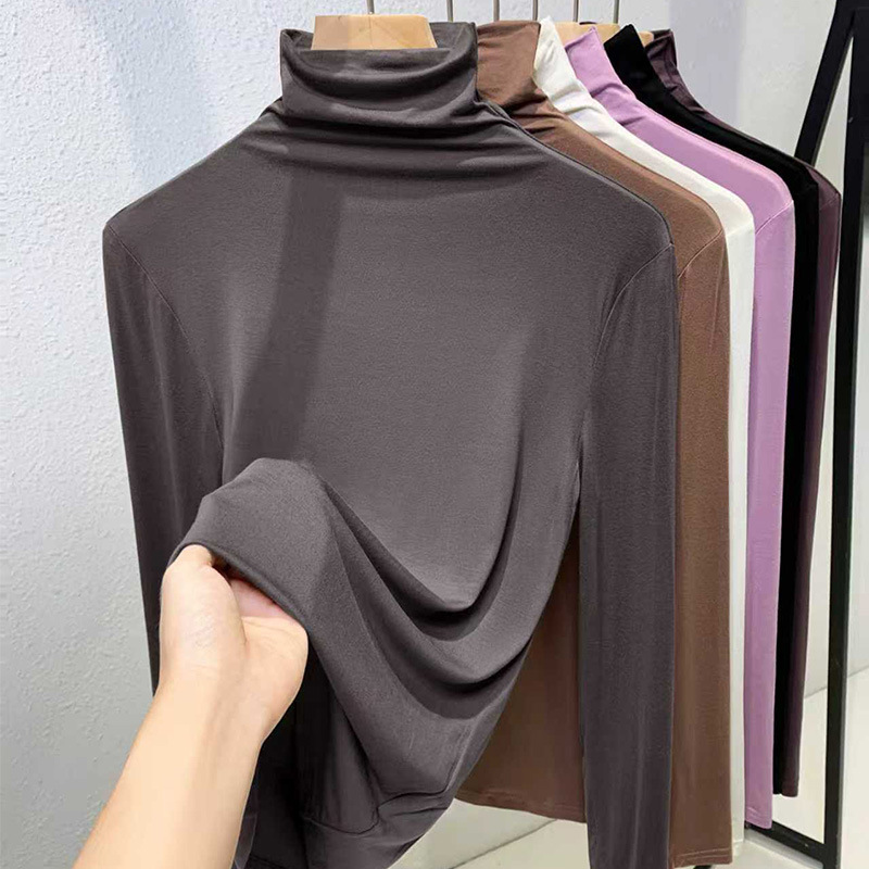 高领打底衫女2025新款女装纯色螺纹长款t恤弹力内搭长袖上衣