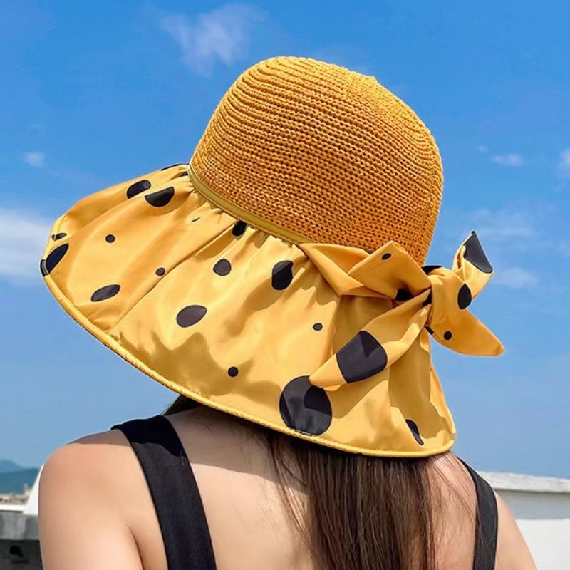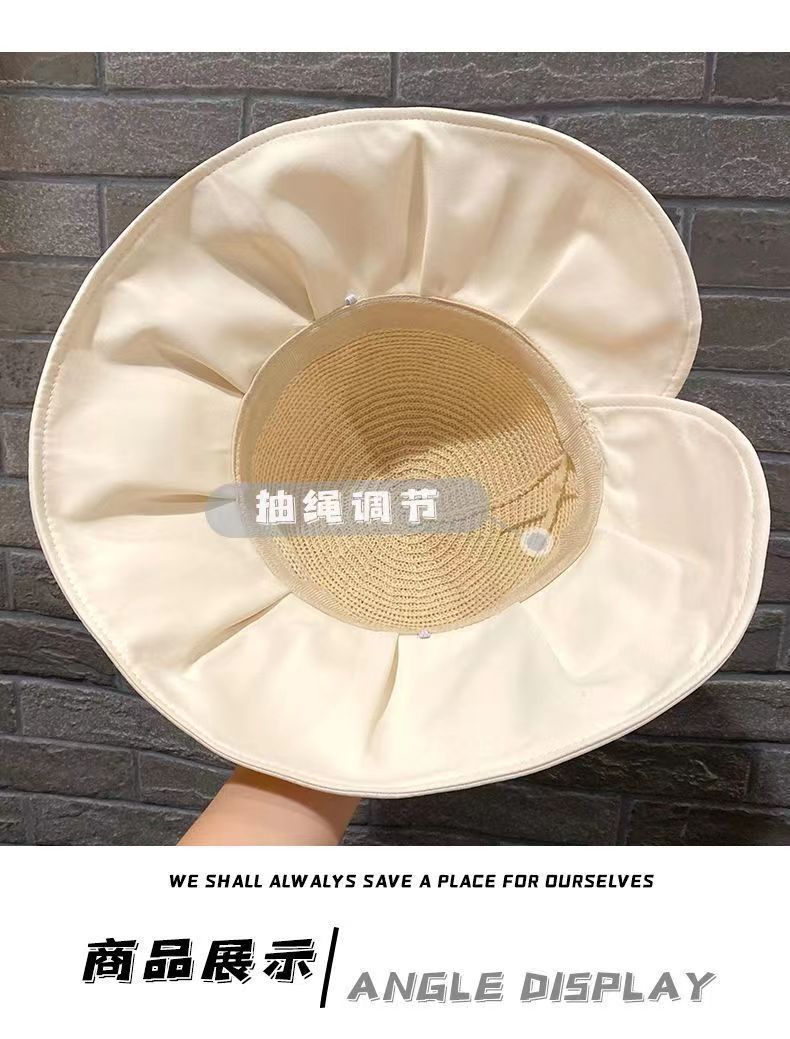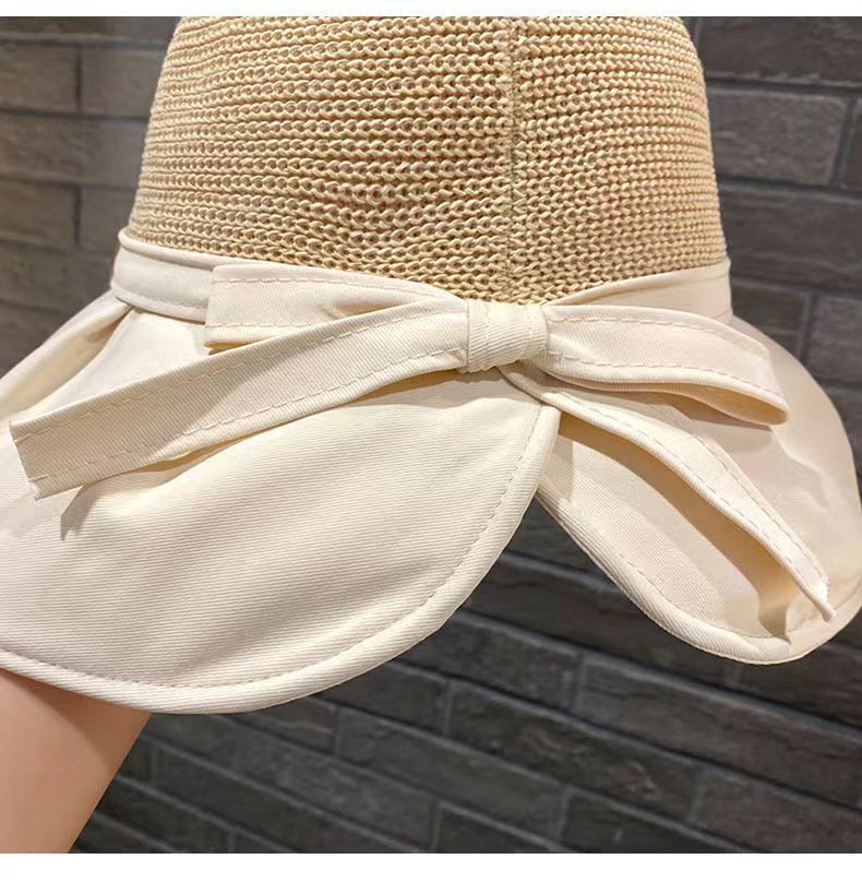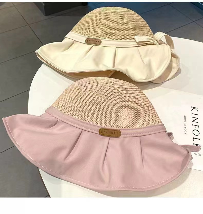 新款渔夫遮阳帽韩版百搭户外太阳帽大檐蝴蝶结遮脸防晒女士帽