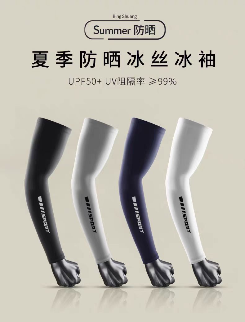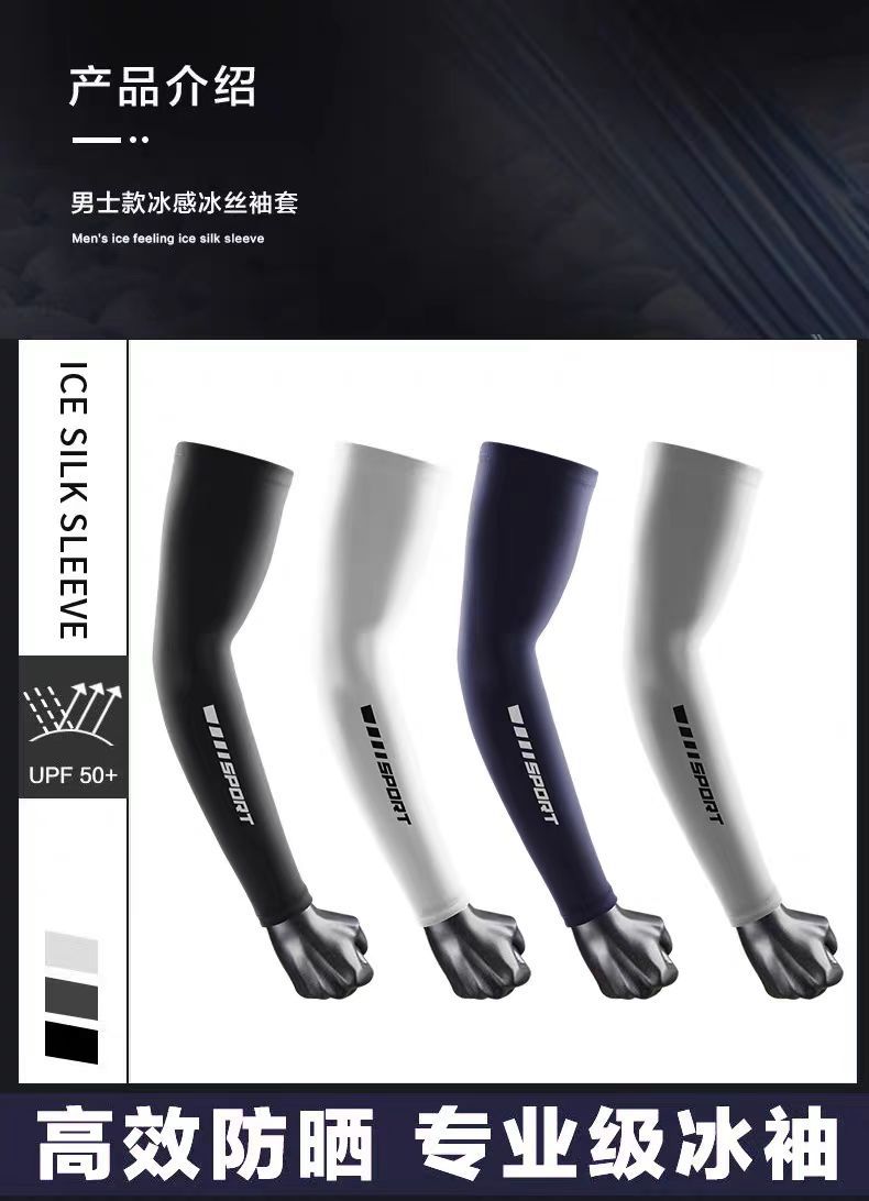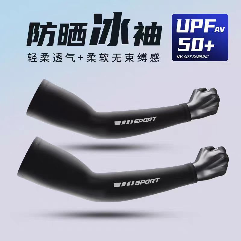 防晒袖套男透气冰丝手套户外骑车防紫外线夏季运动风薄款冰袖批发